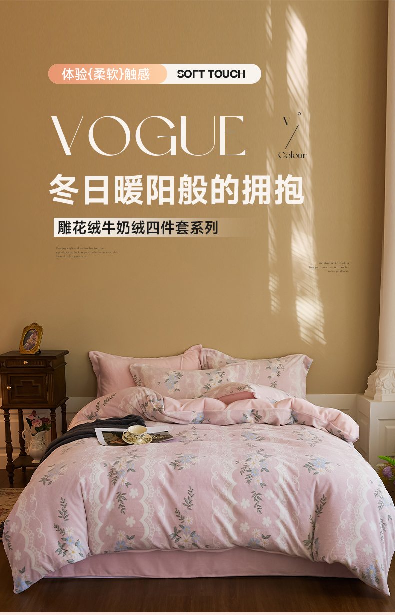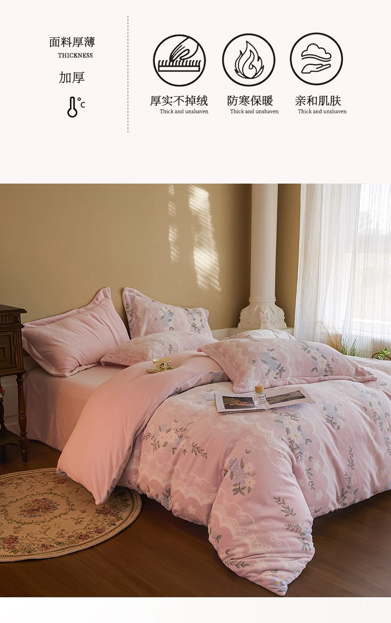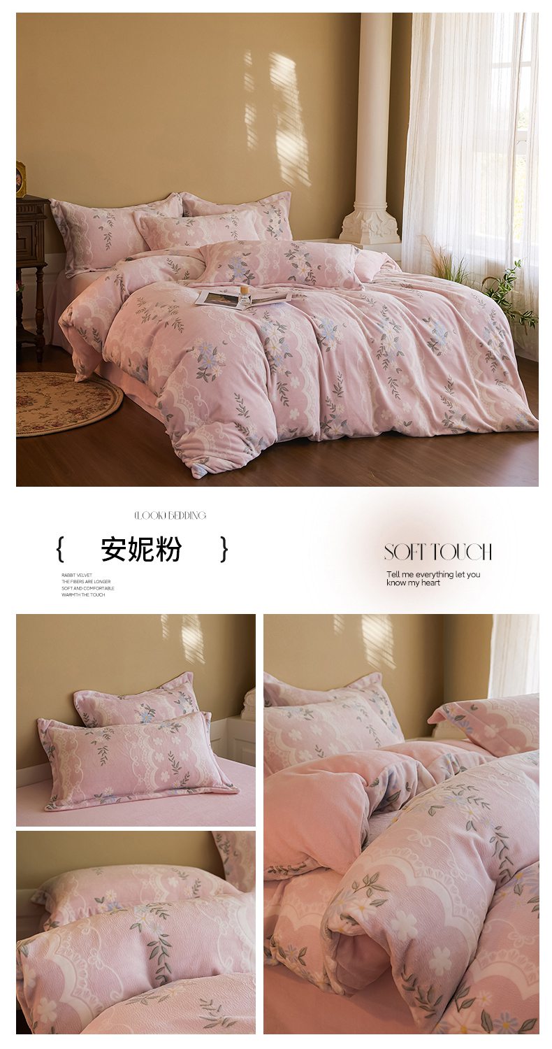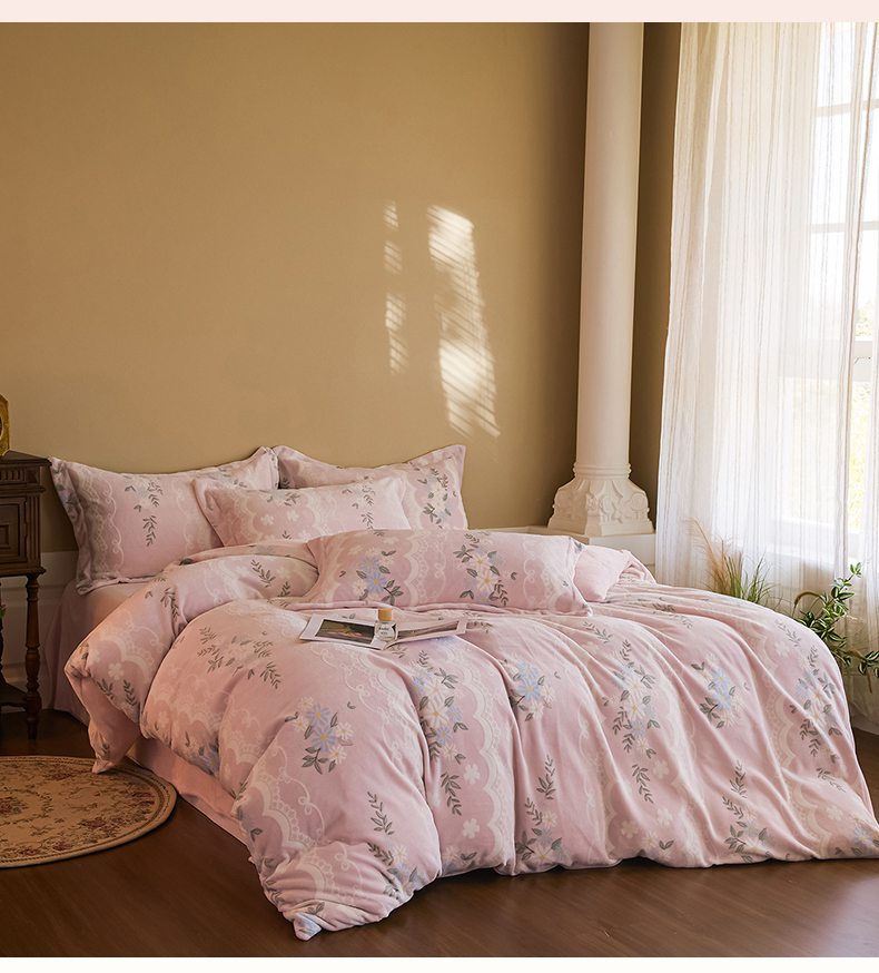当前位置: 91家纺网 > 商品网购 > 床品套件 > 四件套 > 牛奶绒四件套 > 菡宝 【主推第三批 带质检报告】A类全消光230g雕花绒牛奶绒四件套支持定制定做尺寸 安妮粉