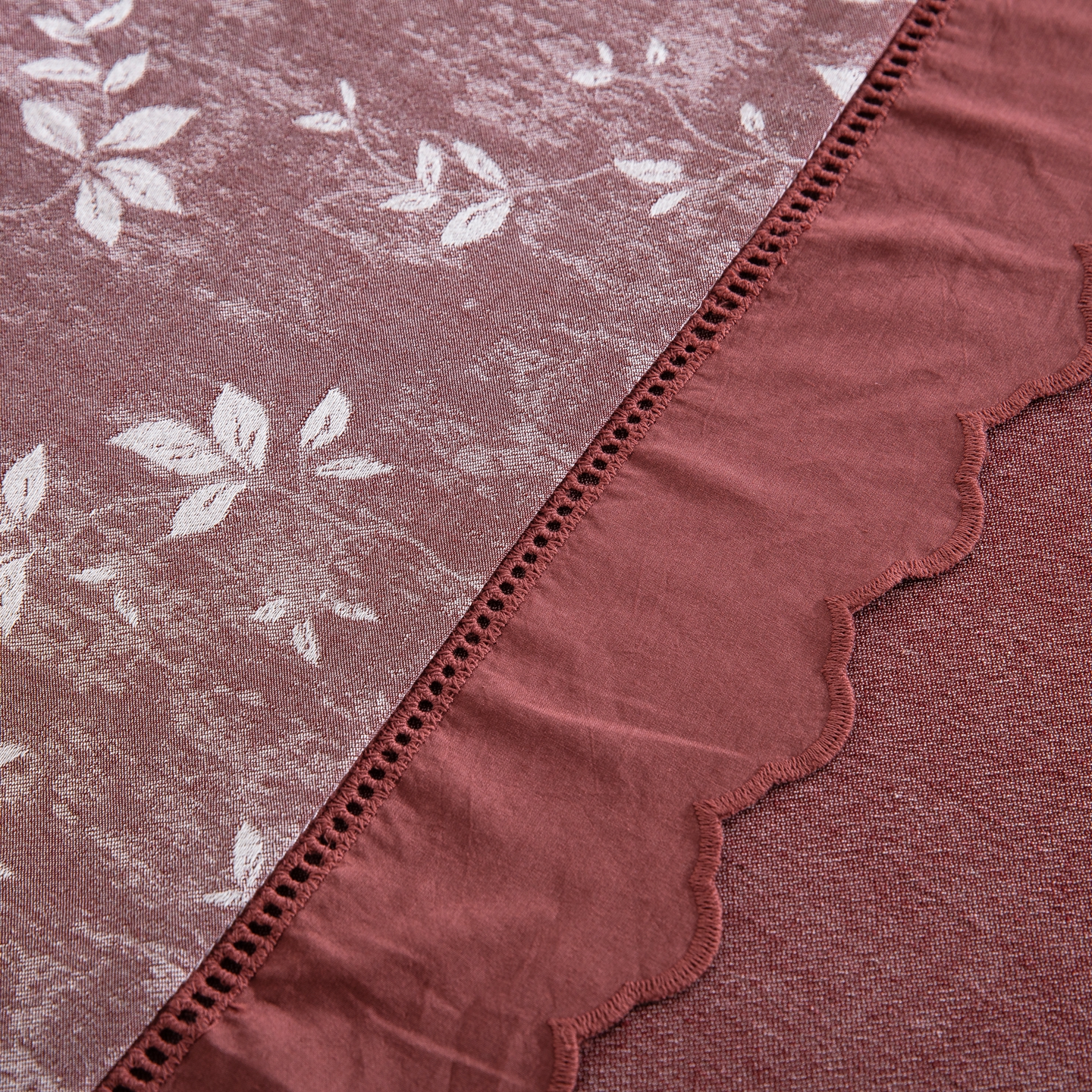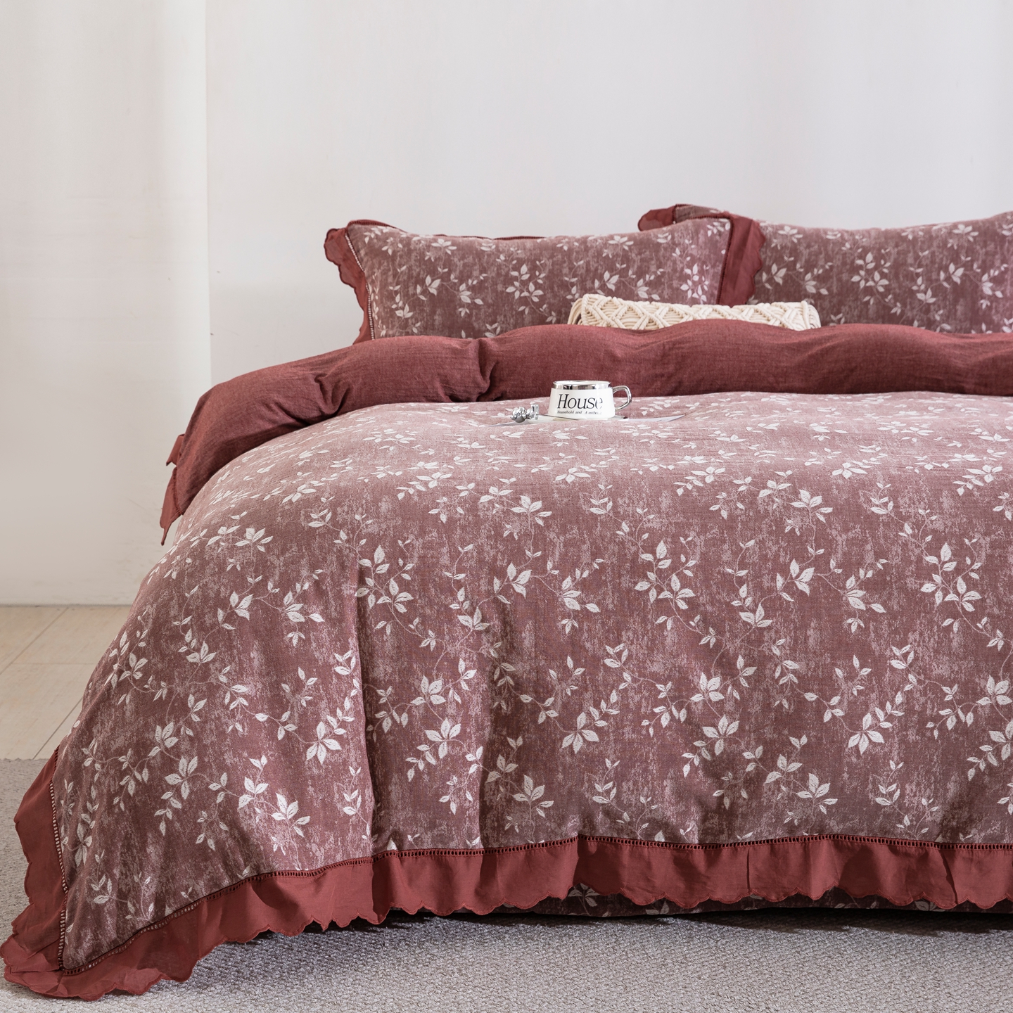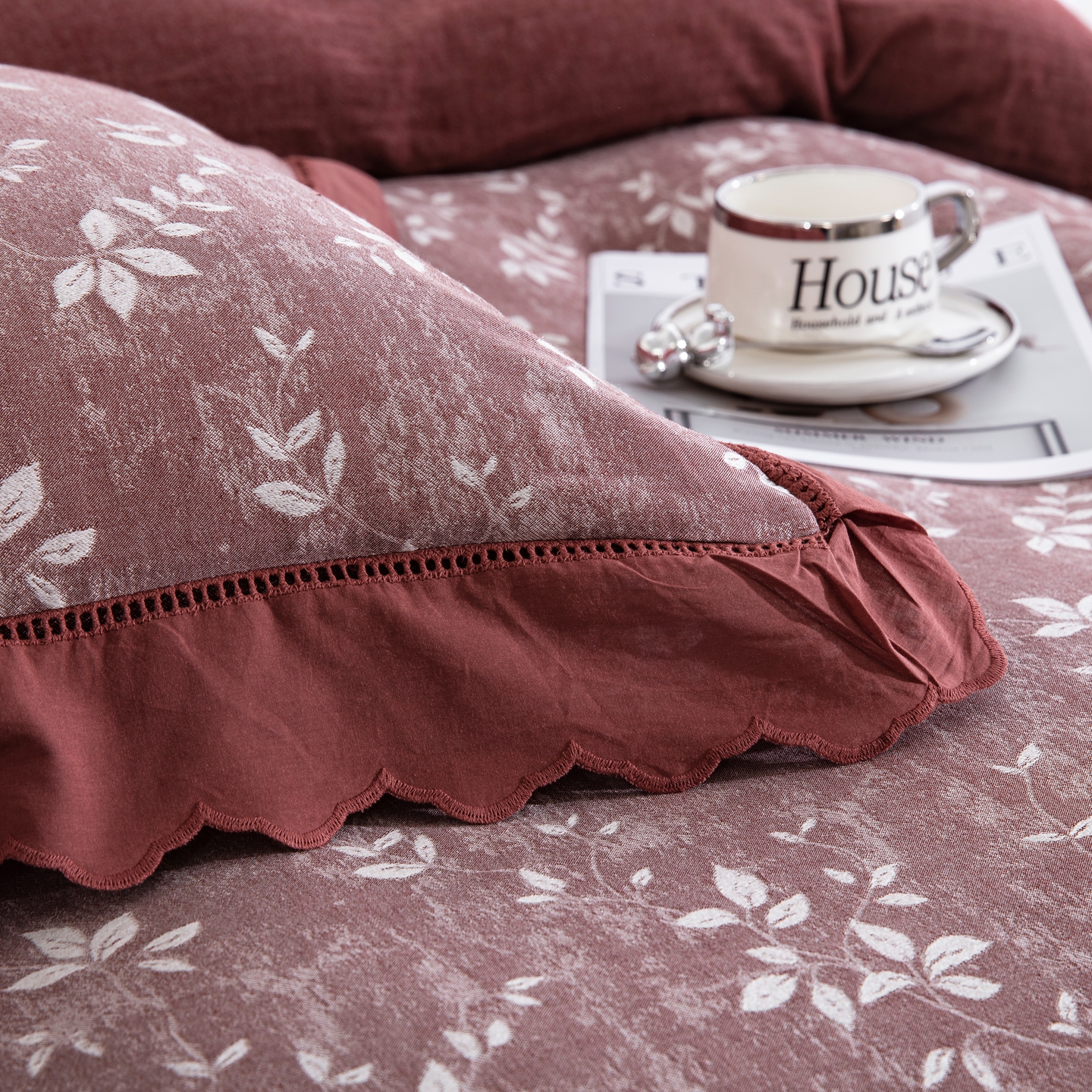 鲁爱家纺供货 2025新款全棉色织提花(花边镂空款)四件套 甜梦-豆沙
