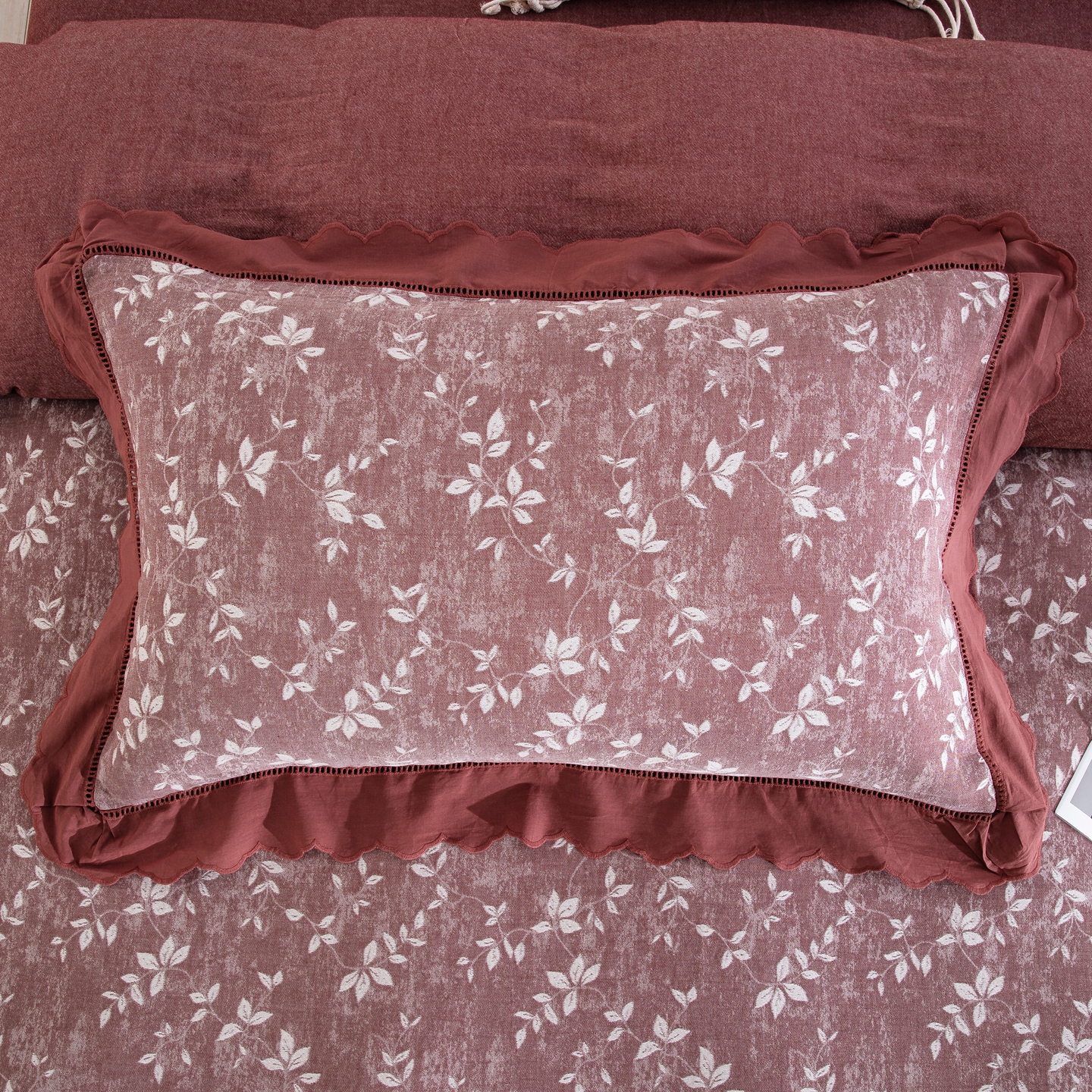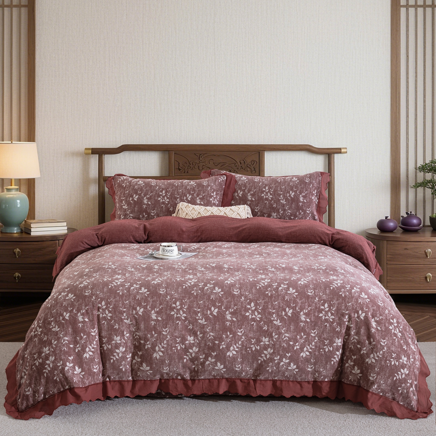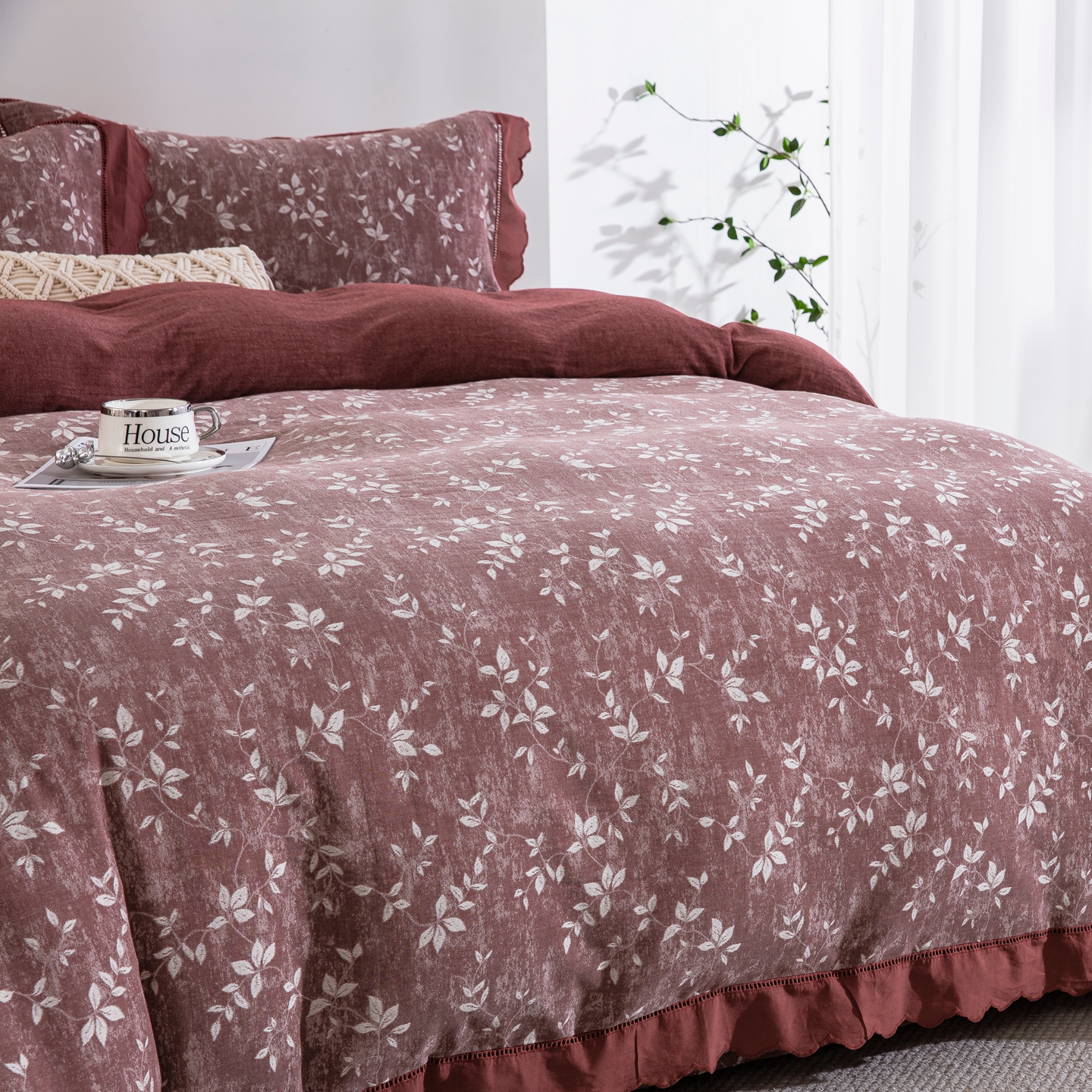 鲁爱家纺供货 2025新款全棉色织提花(花边镂空款)四件套 甜梦-豆沙