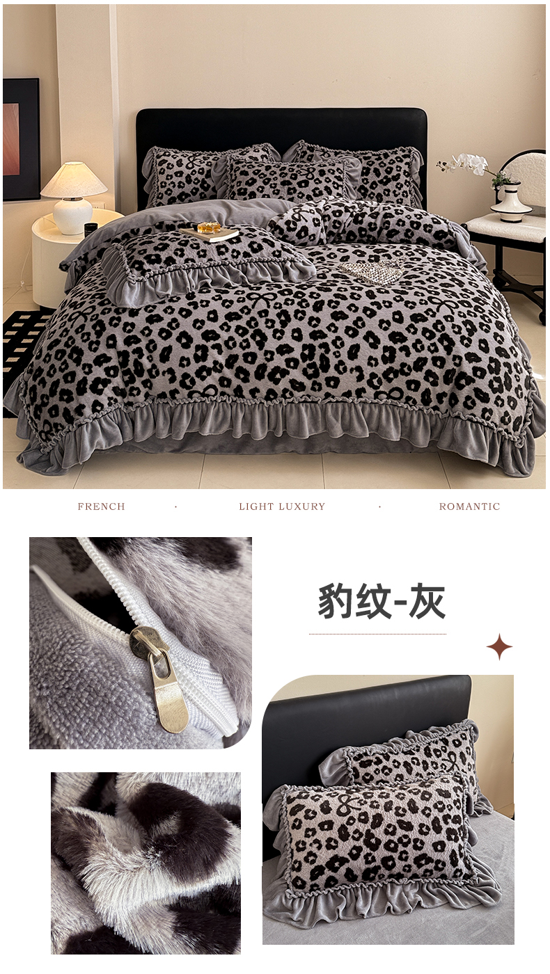 (总)米莱家纺 2025新款兔毛绒法式花边四件套,梦蝶,豹纹-灰,豹纹-咖,布拉格,春野,芳华,花颜,南法假日,欧若拉,倾城,赛琳,山茶