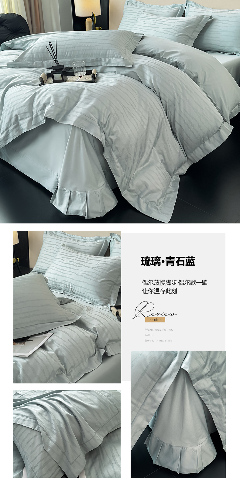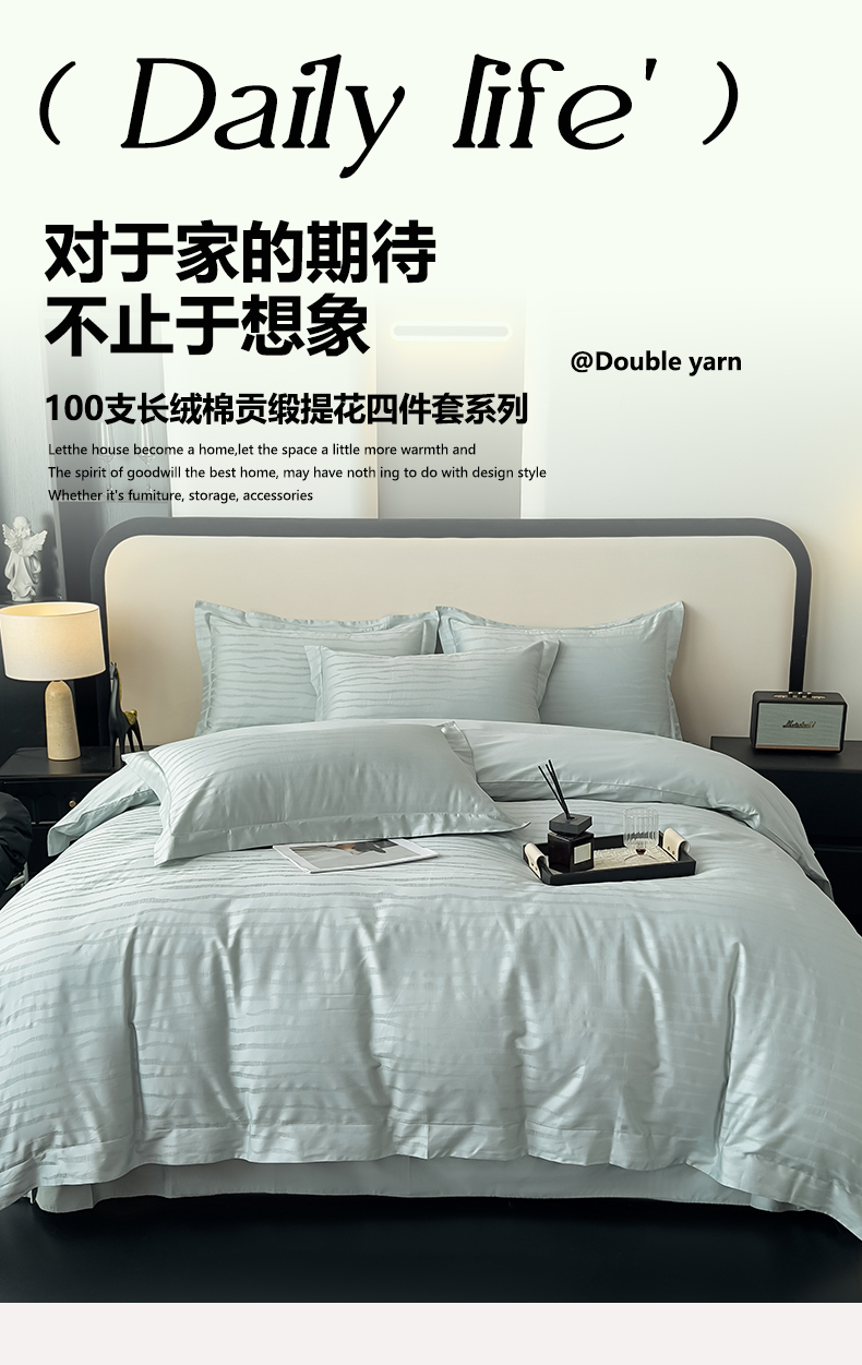 当前位置: 91家纺网 > 商品网购 > 床品套件 > 四件套 > 其它四件套 > 金昱纺 2025新款50双股100支长绒棉贡缎提花高定四件套琉璃·青石兰