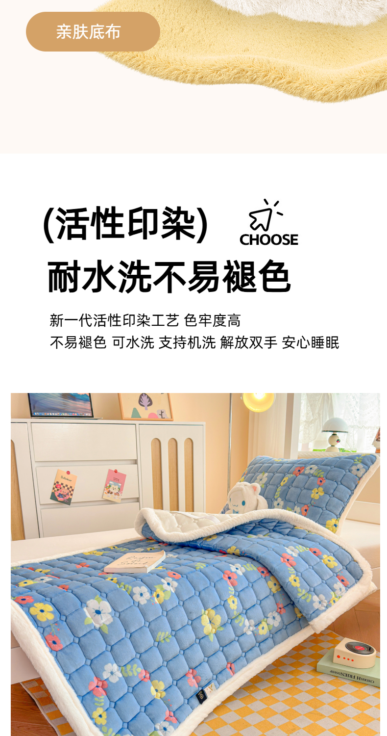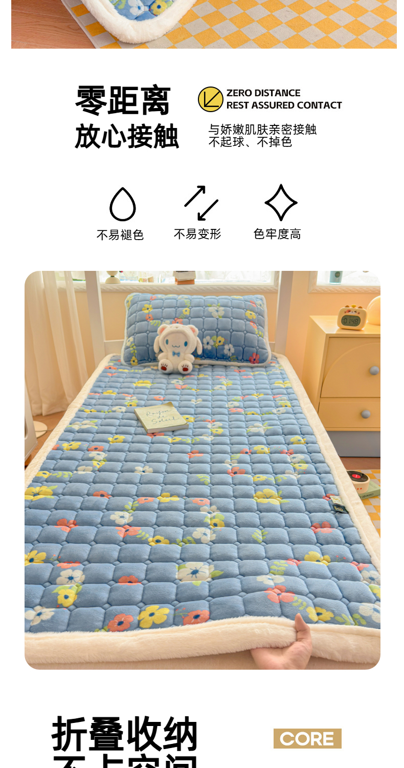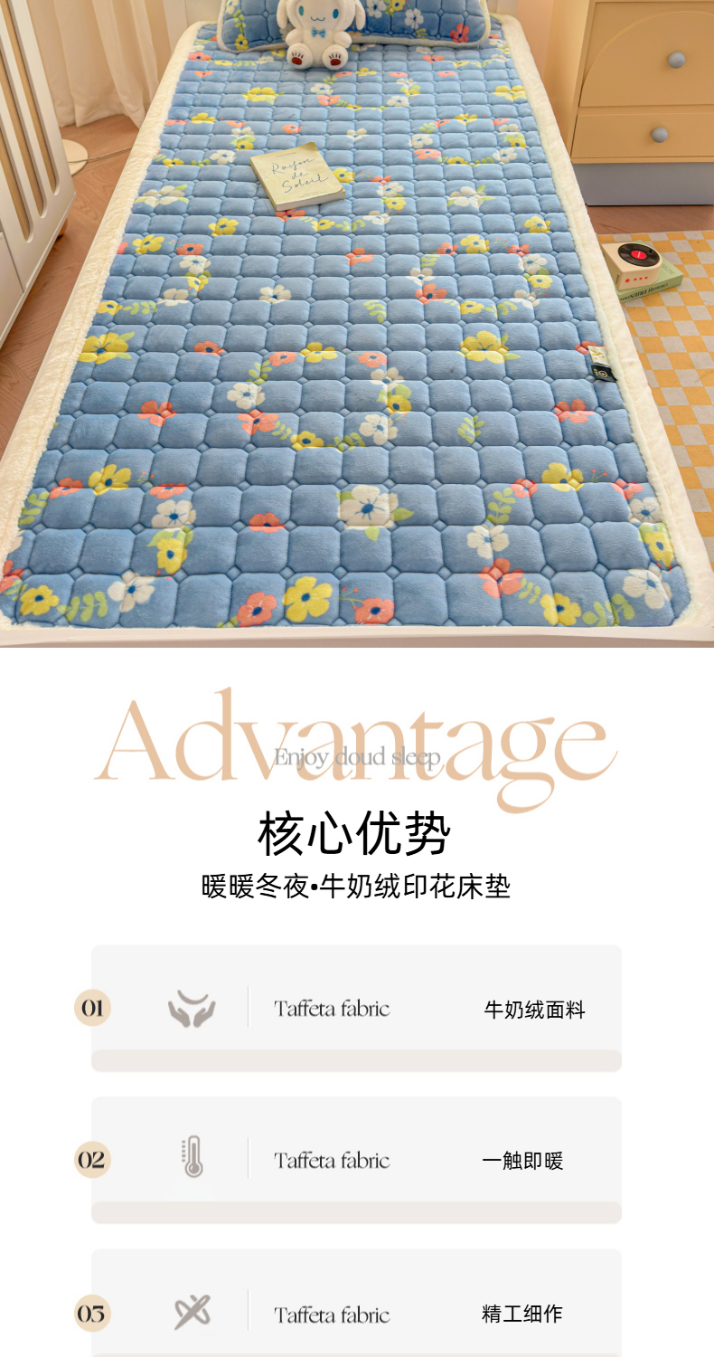 当前位置: 91家纺网 > 商品网购 > 床垫/床褥 > 普通床垫 > 爱屋及屋 2025新款牛奶绒印花床垫-宿舍床 蓝色花海