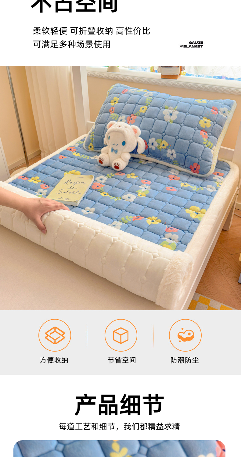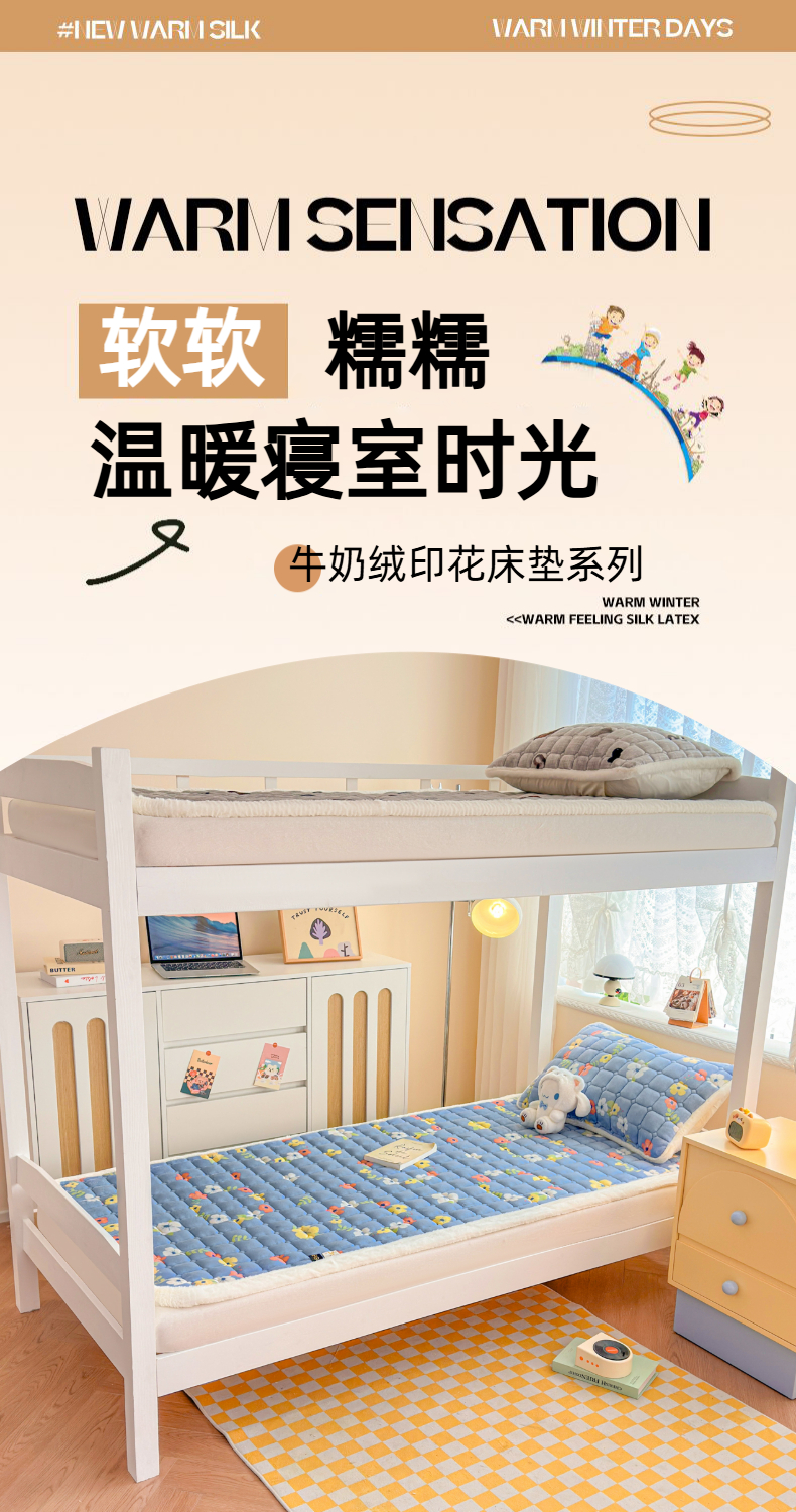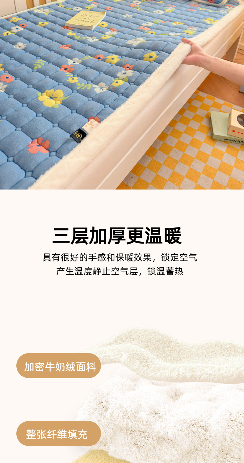 当前位置: 91家纺网 > 商品网购 > 床垫/床褥 > 普通床垫 > 爱屋及屋 2025新款牛奶绒印花床垫-宿舍床 蓝色花海