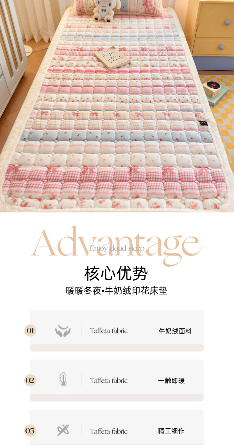 当前位置: 91家纺网 > 商品网购 > 床垫/床褥 > 普通床垫 > 爱屋及屋 2025新款牛奶绒印花床垫-宿舍床 暖漾甜梦
