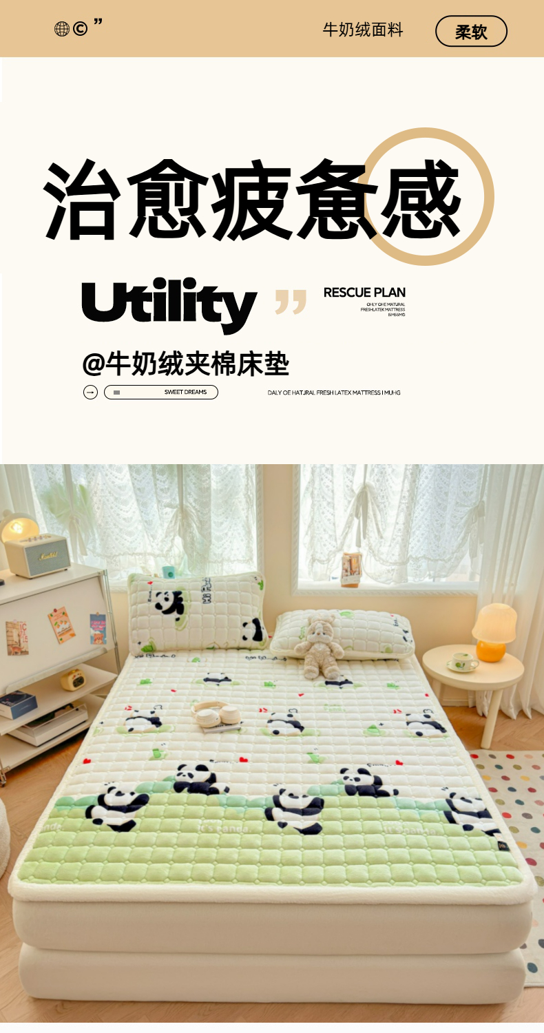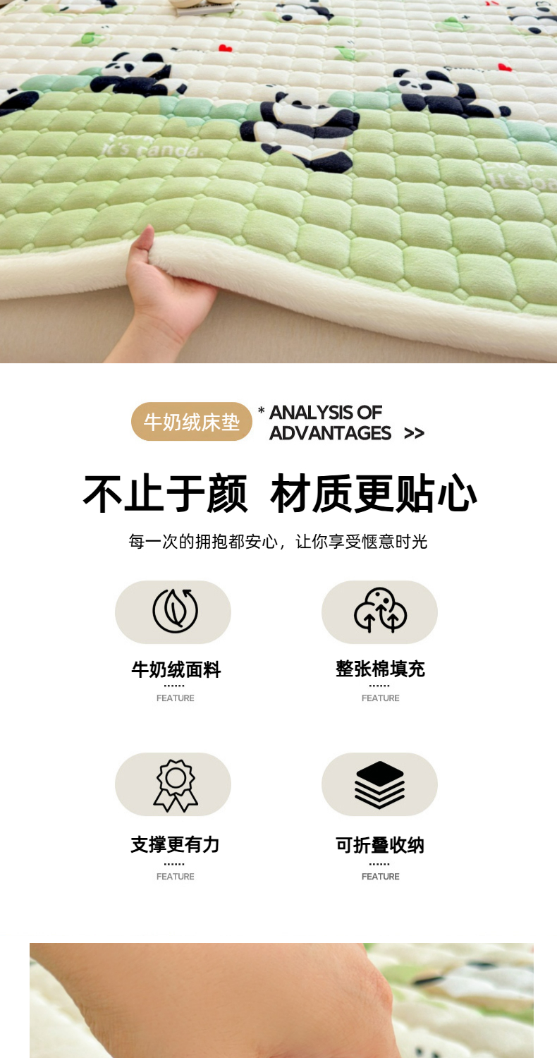 当前位置: 91家纺网 > 商品网购 > 床垫/床褥 > 普通床垫 > 爱屋及屋 2025新款牛奶绒印花床垫-大床款 可爱熊猫