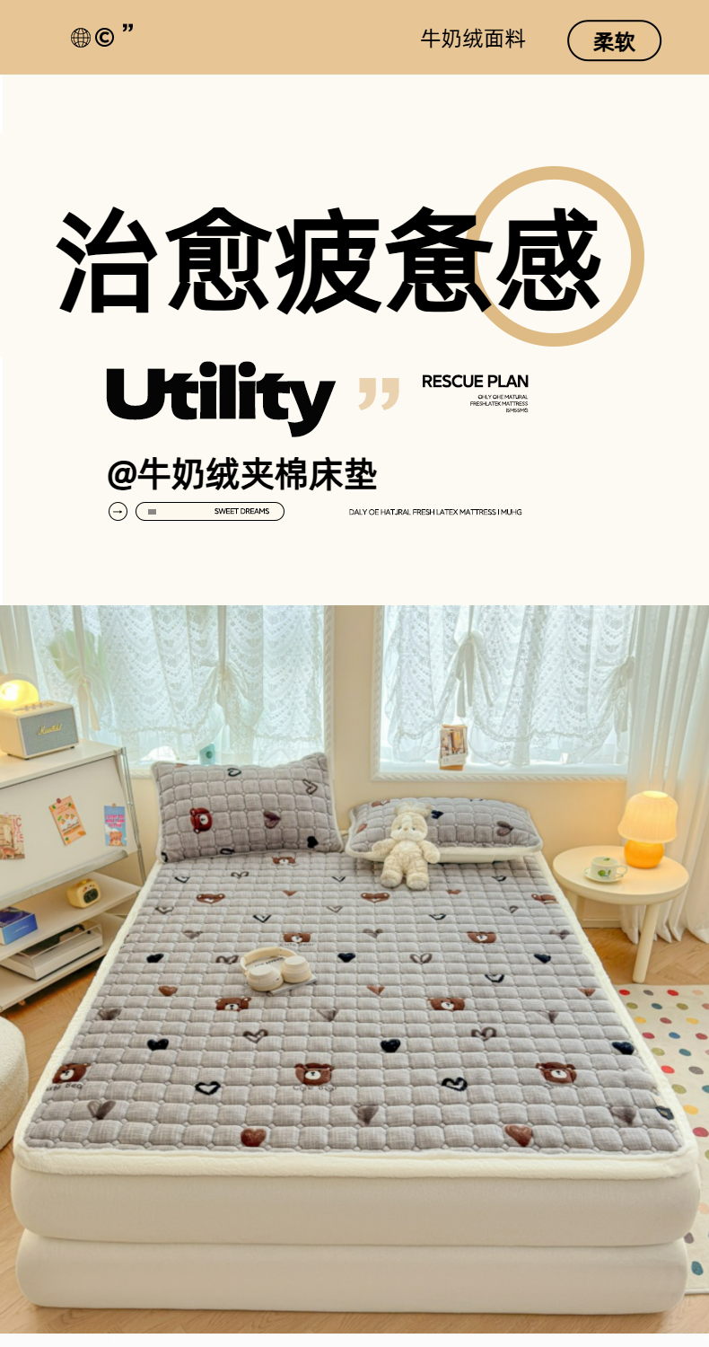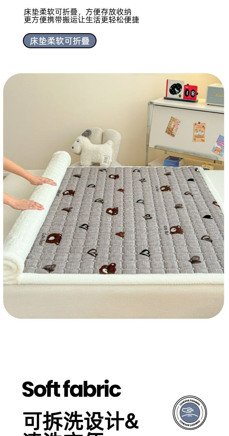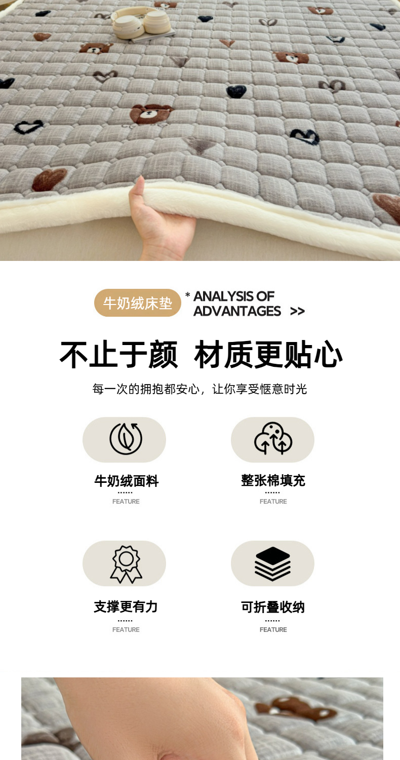 当前位置: 91家纺网 > 商品网购 > 床垫/床褥 > 普通床垫 > 爱屋及屋 2025新款牛奶绒印花床垫-大床款 幸运小熊-灰