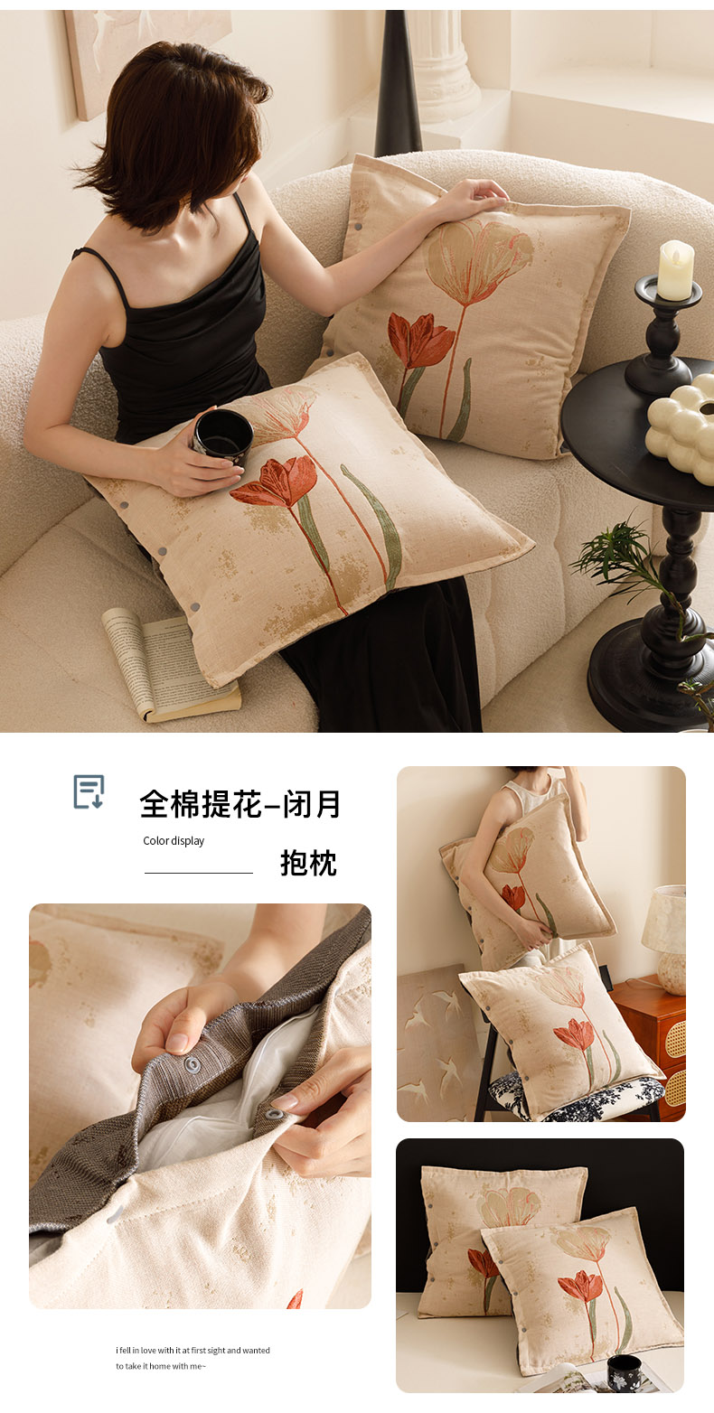 商品名称:爱港家纺 2025新款全棉纯棉纱布抱枕 靠枕 可拆洗 腰枕 客厅卧室汽车纯棉方枕套 锦团