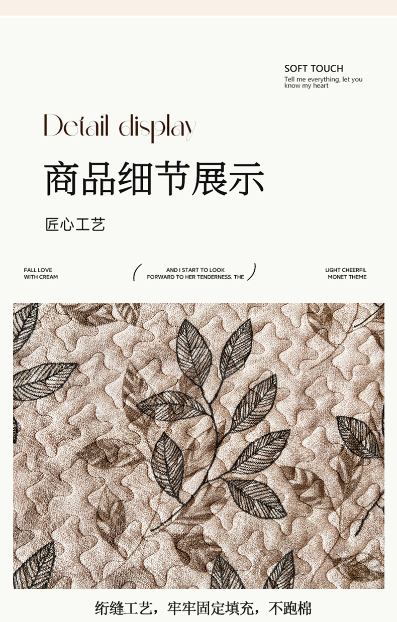 商品名称:云玲时尚 2025新款牛奶绒赫本风夹棉床盖三件套 知叶-咖