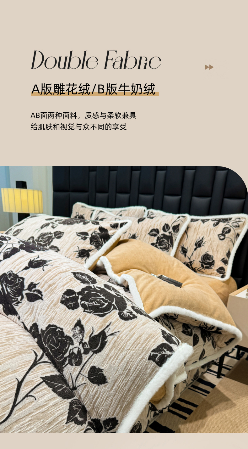 当前位置: 91家纺网 > 商品网购 > 床品套件 > 四件套 > 牛奶绒四件套 > 云玲时尚 2025新款牛奶绒立体雕花兔毛绒包边四件套 画意枝头
