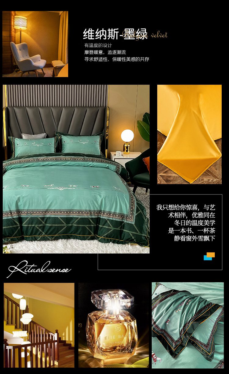 商品名称:梵克保罗 2025秋冬新品有氧臻棉绒数码印花9斤单品四件套牛奶绒兔毛绒-单品系列 祖玛珑-绿