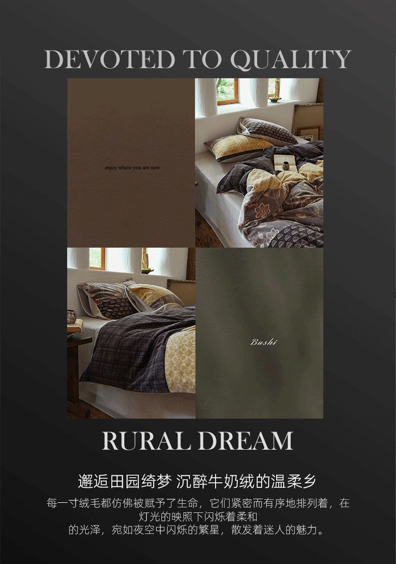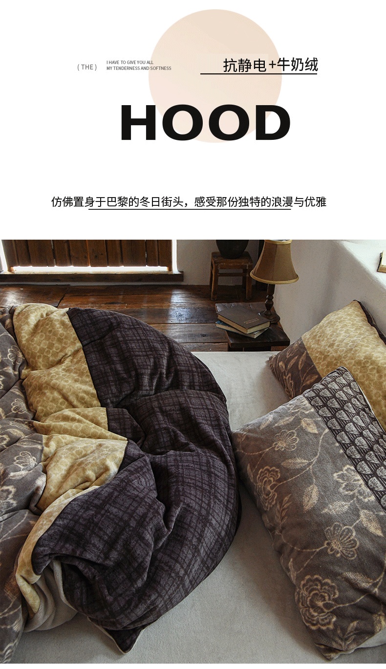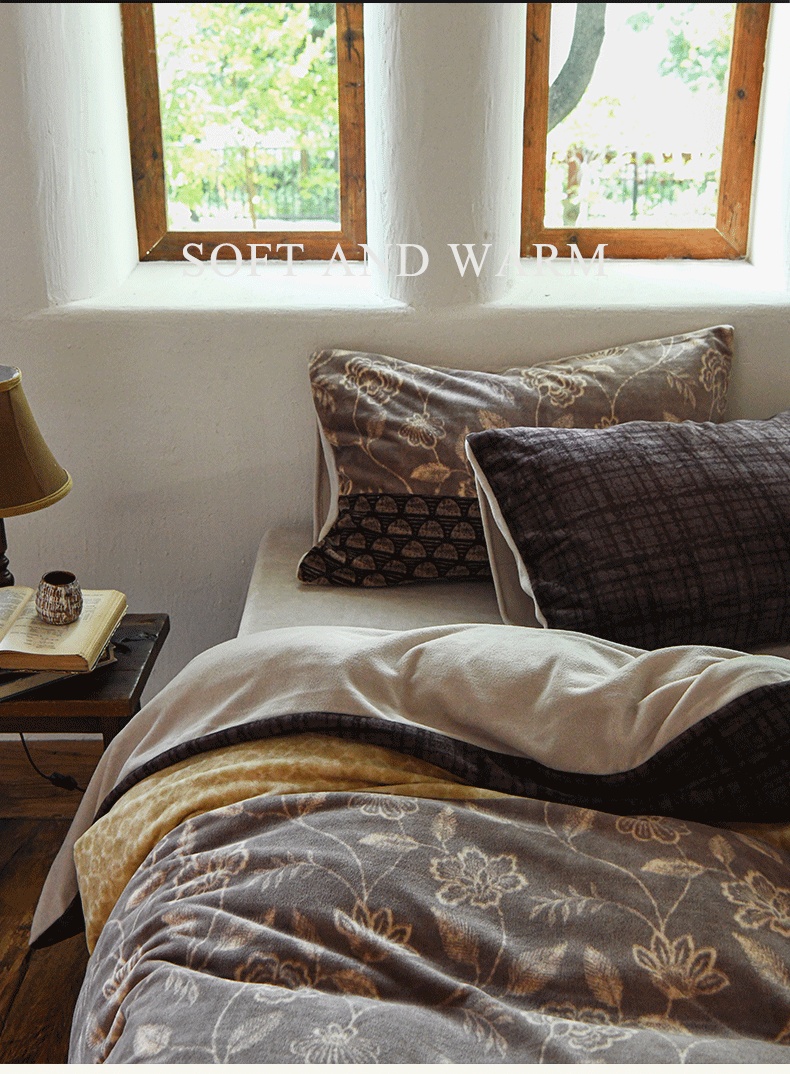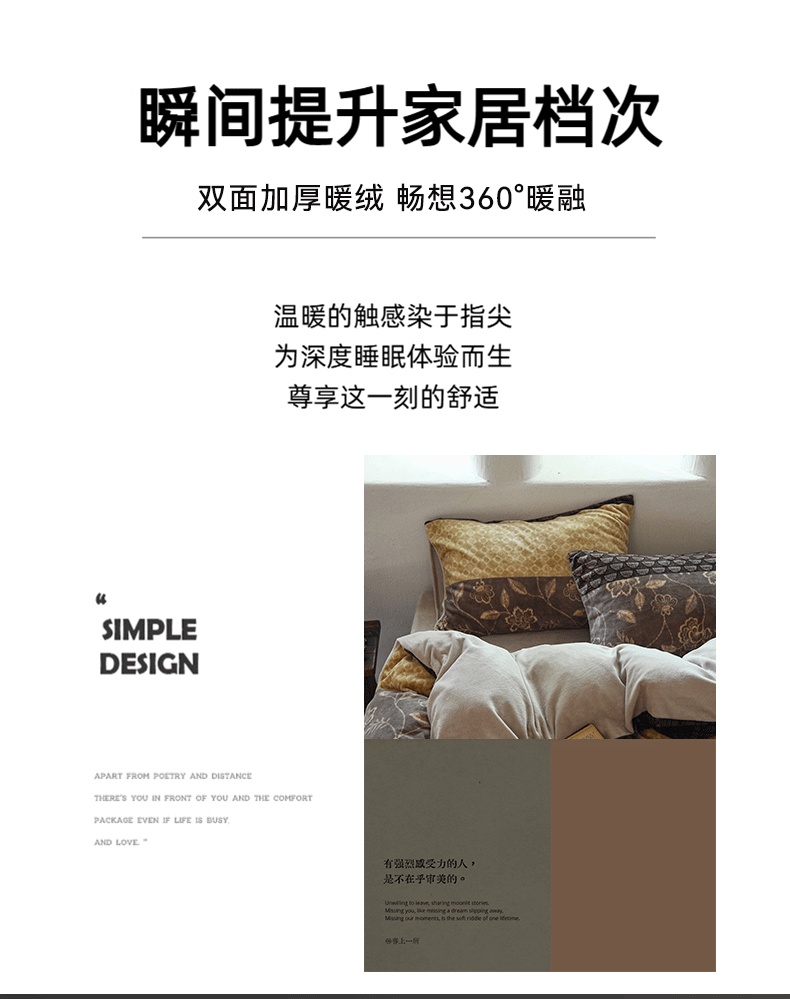 当前位置: 91家纺网 > 商品网购 > 床品套件 > 四件套 > 牛奶绒四件套 > 花漾家居 2025秋冬新品法式复古简约诧寂风牛奶绒四件套 雅之曼咖
