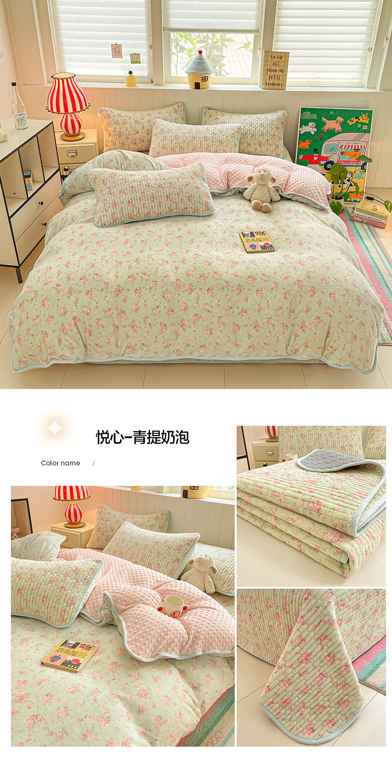 当前位置: 91家纺网 > 商品网购 > 床品套件 > 四件套 > 牛奶绒四件套 > 贝扬思家纺 2025新款高克重牛奶绒豆豆被套床盖四件套-悦心系列 悦心-绿格kt