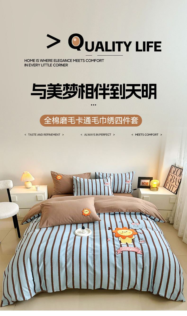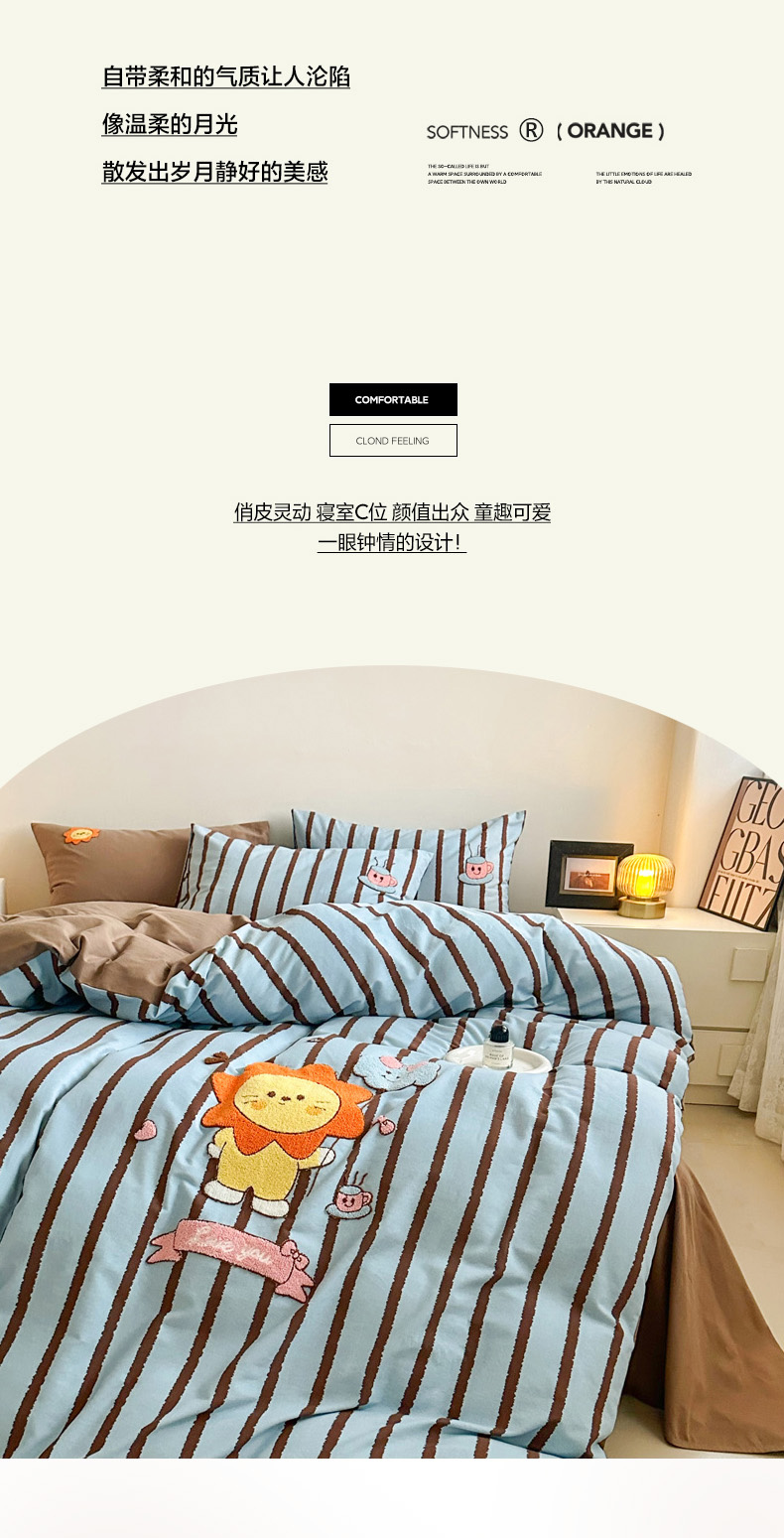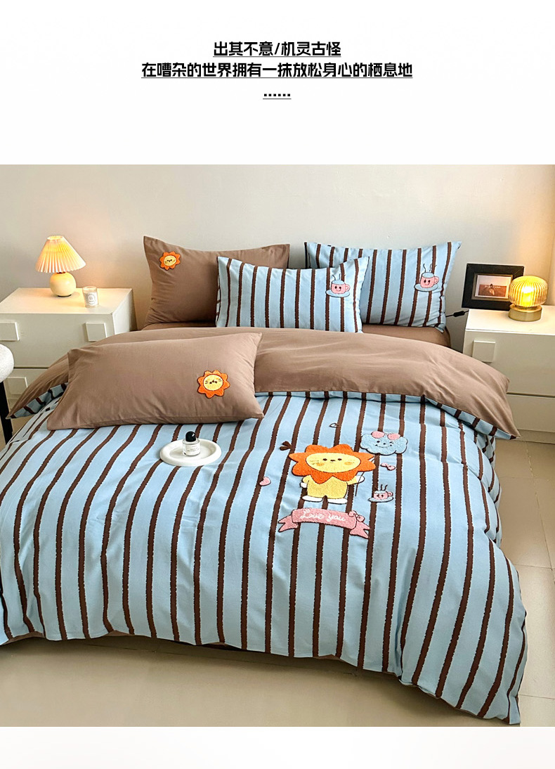 当前位置: 91家纺网 > 商品网购 > 床品套件 > 四件套 > 全棉普通四件套 > 如意朵 2025新款全棉纯棉磨毛绣花四件套-风格一 明星狮子