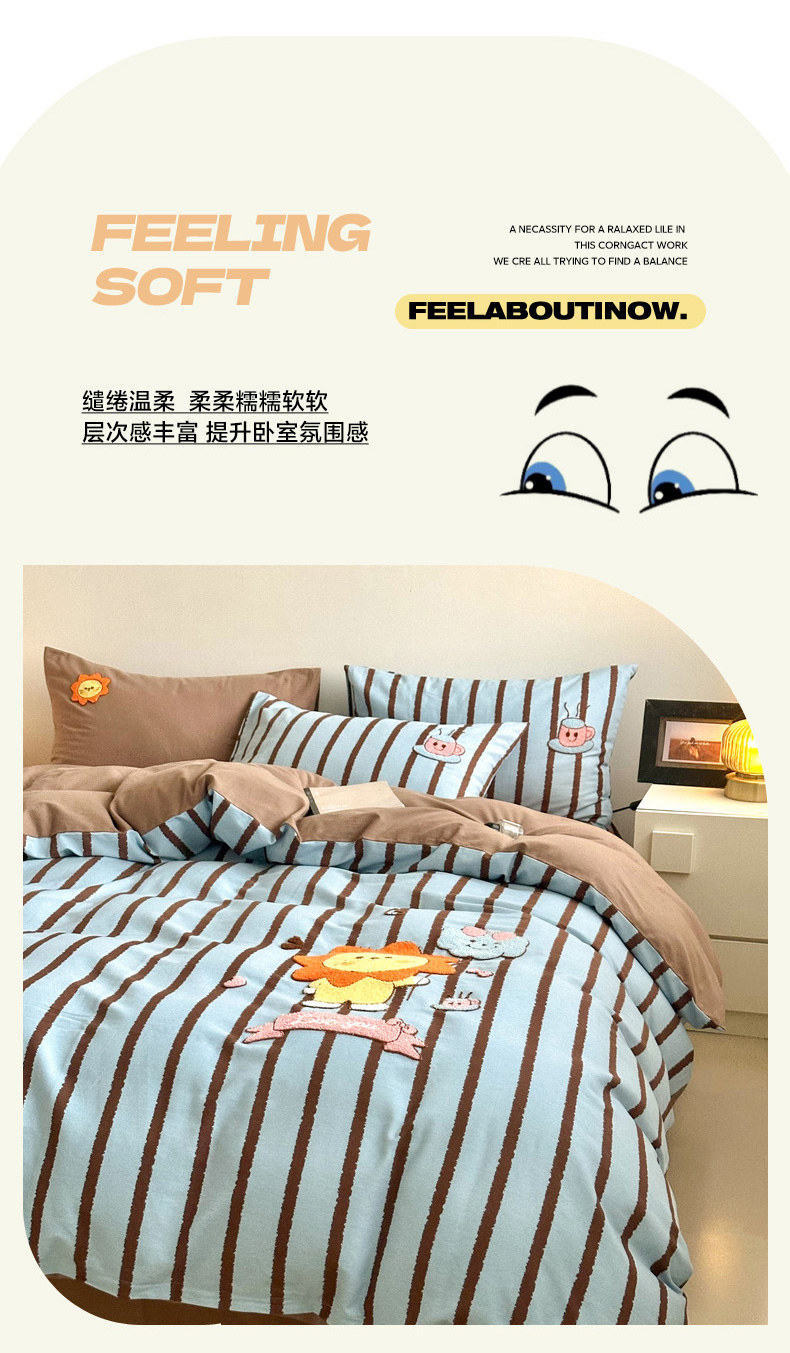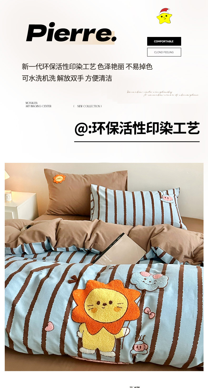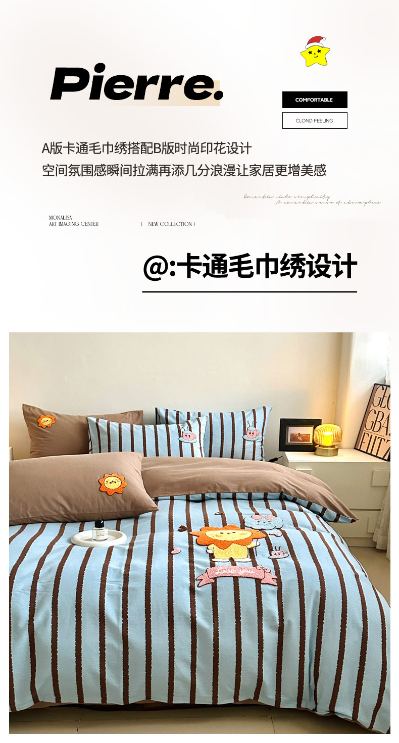 当前位置: 91家纺网 > 商品网购 > 床品套件 > 四件套 > 全棉普通四件套 > 如意朵 2025新款全棉纯棉磨毛绣花四件套-风格一 明星狮子