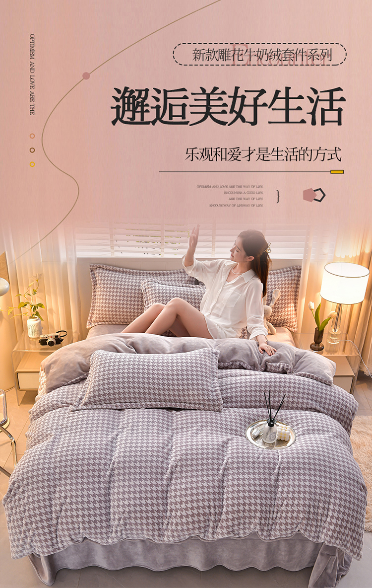 (总)畅畅家纺 2024新款高克重8斤加厚牛奶绒6D雕花绒印花水晶绒金貂绒法莱绒四件套,川流不息-兰,冬日情怀-红,繁花似锦-红,繁花似锦-绿,繁花似锦-紫,繁星点点,菲欧娜-玉,欧式风情-灰,欧式风情-蓝+灰,千鸟格-粉,千鸟格-灰色,千鸟格-绿,千鸟格-奶黄,小雏菊-粉,小雏菊-黄,小雏菊-浅蓝,小方格灰
