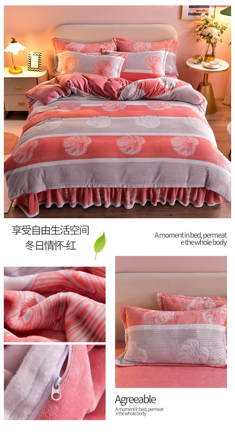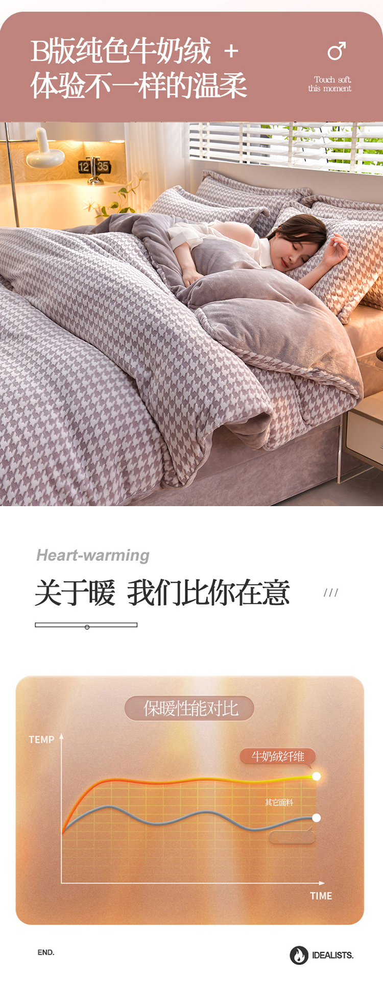 (总)畅畅家纺 2024新款高克重加厚保暖冬季牛奶绒纯色床盖款四件套,豆沙,灰色,天蓝,玉色,中国红