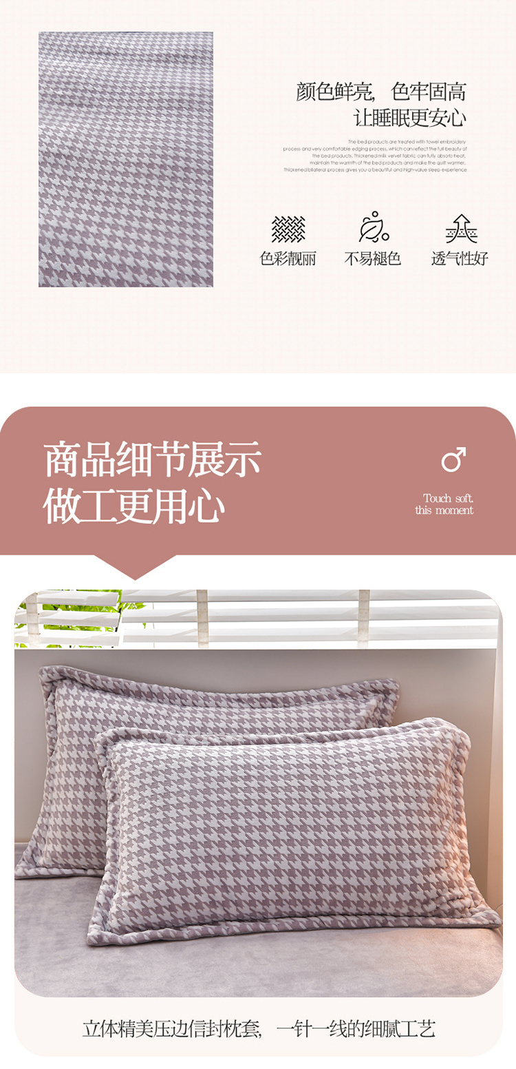商品名称:畅畅家纺 2025新款亲肤舒适冬季保暖8斤重牛奶绒6D雕花绒床单四件套 千鸟格-灰色