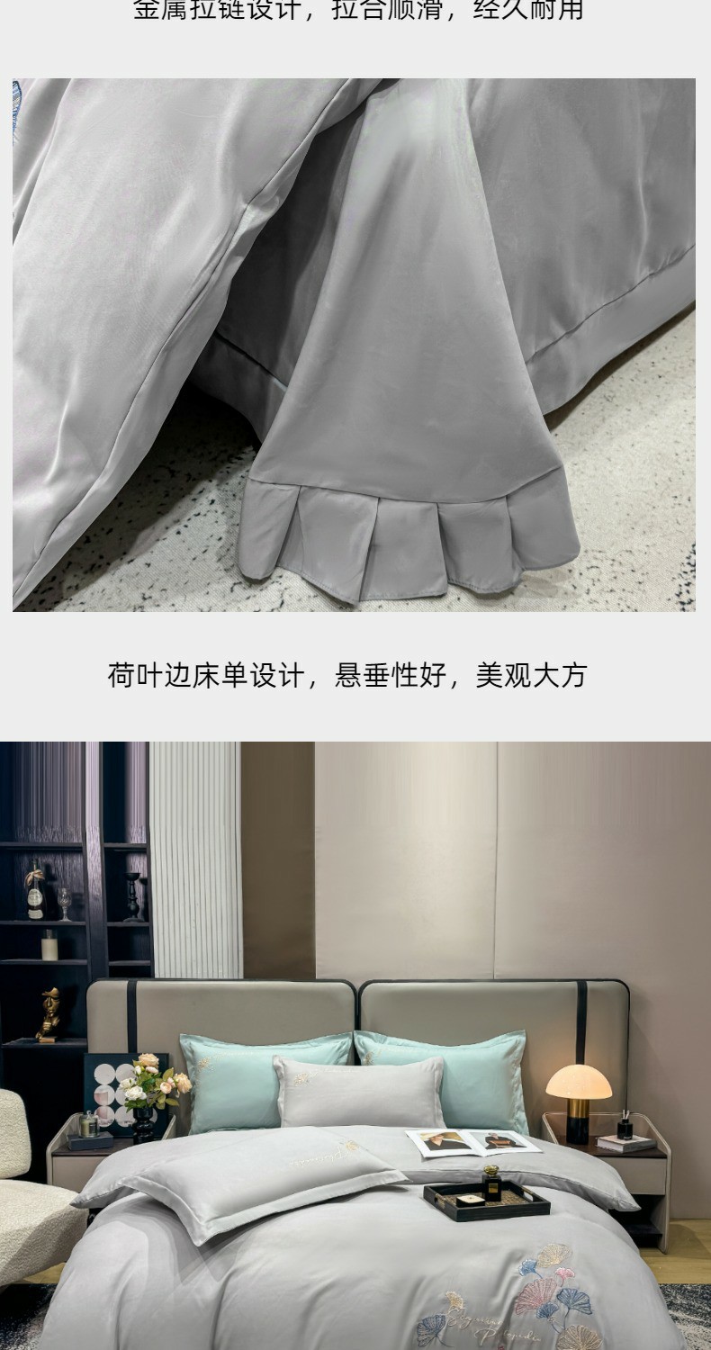 (总)悦织湾家纺 90克磨毛刺绣纯色四件套2025新款轻奢韩版公主风精致床上用品绣花亲肤水洗棉4件套