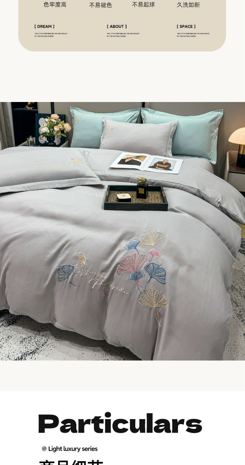 商品名称:(总)悦织湾家纺 90克磨毛刺绣纯色四件套2025新款轻奢韩版公主风精致床上用品绣花亲肤水洗棉4件套