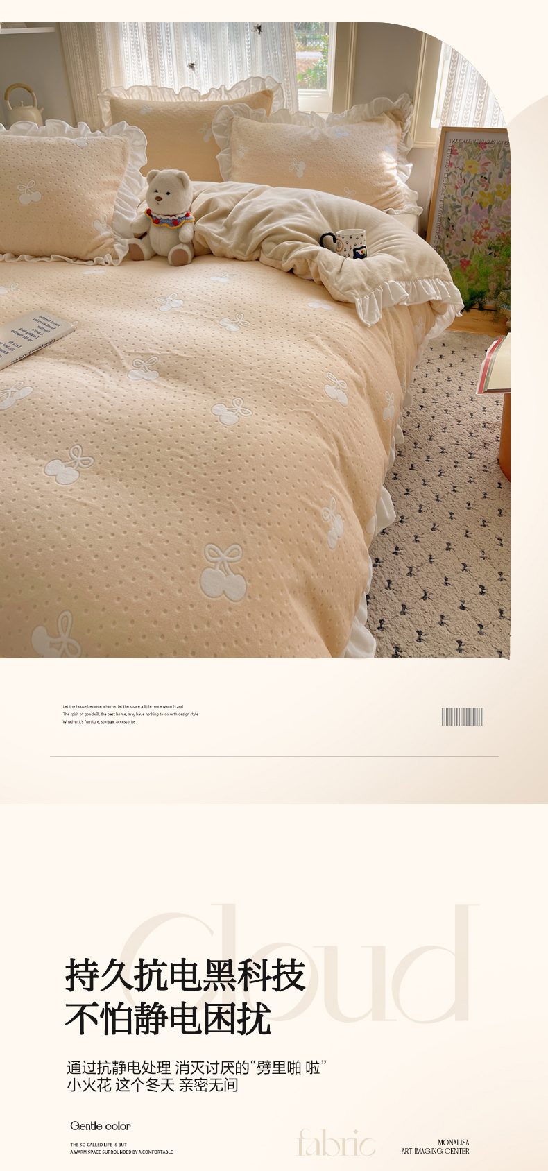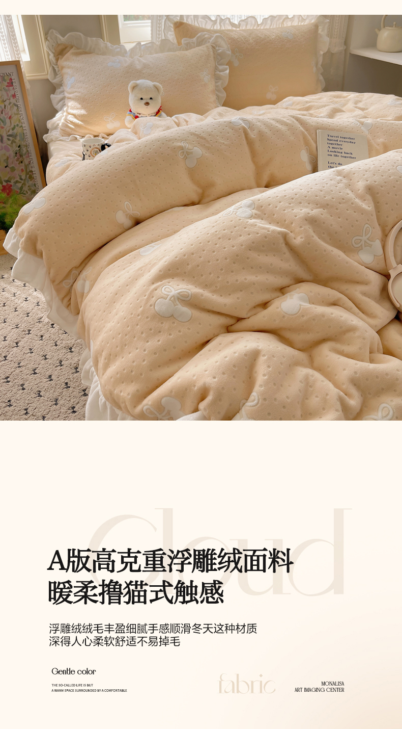 商品名称:(总)三朵家纺 2025新款韩系花边雕花绒牛奶绒法莱绒四件套
