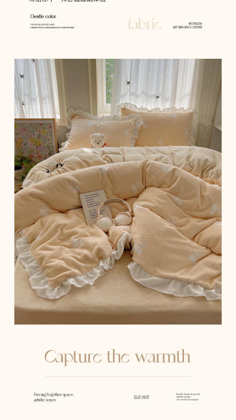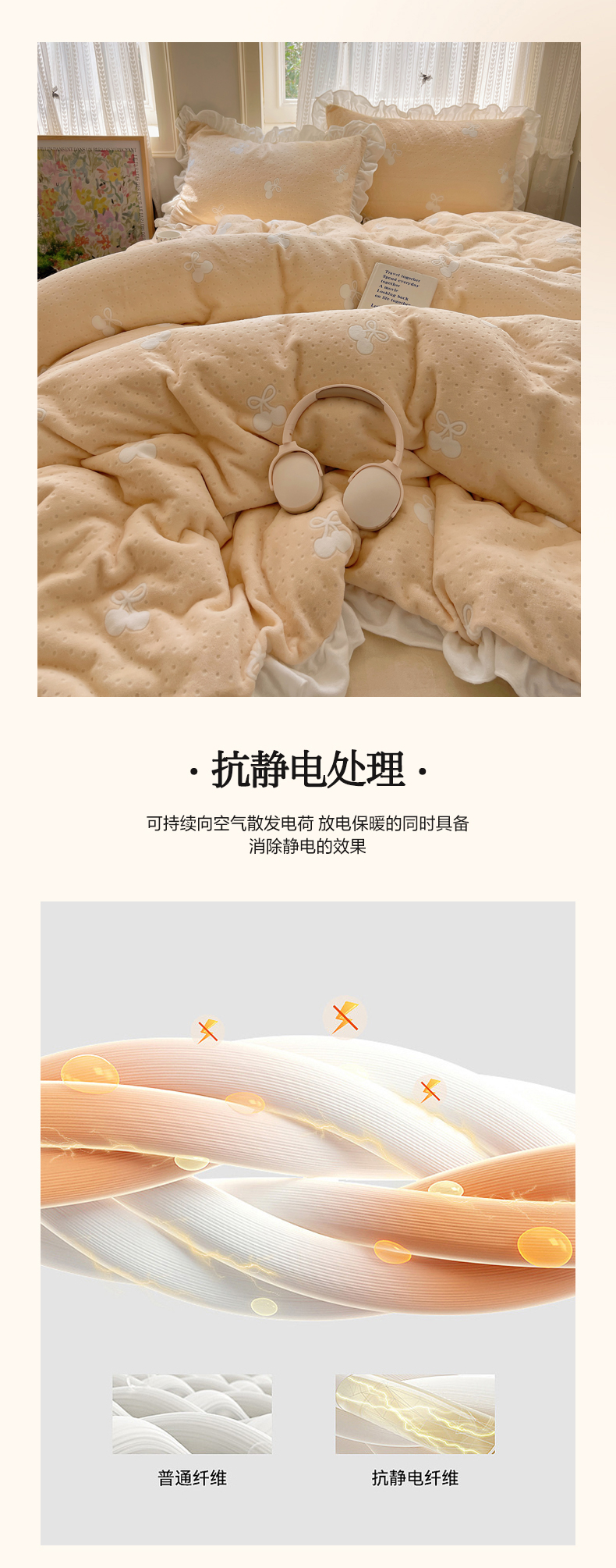 (总)三朵家纺 2025新款韩系花边雕花绒牛奶绒法莱绒四件套