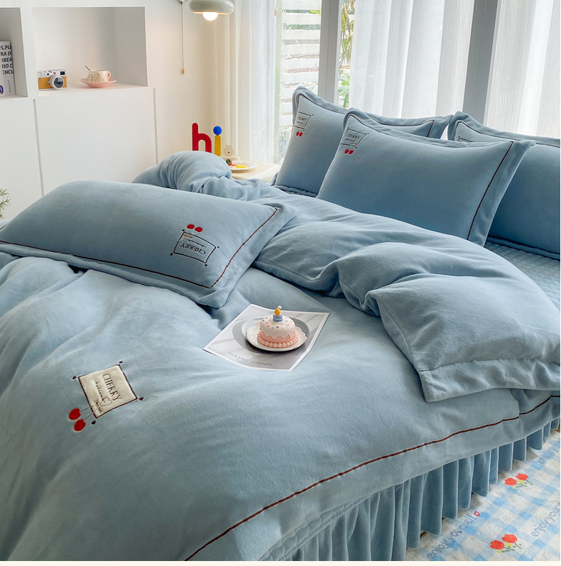 (总)美伦美焕 2025新款獭獭绒贴布绣床盖款四件套,薄荷绿,豆沙,高级灰,雾霾蓝,香芋紫