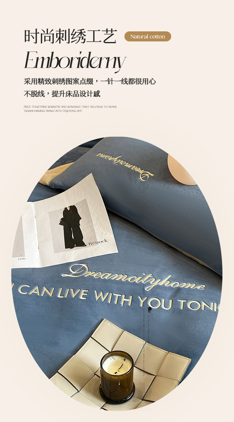 当前位置: 91家纺网 > 商品网购 > 床品套件 > 四件套 > 牛奶绒四件套 > 梦幻之城 2025新款牛奶绒刺绣四件套-安克斯绒B款 安克斯绒-宾利蓝+香槟色