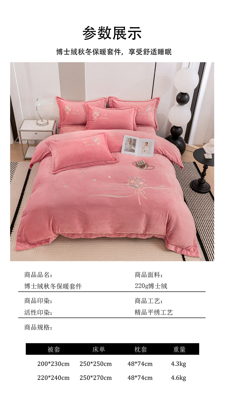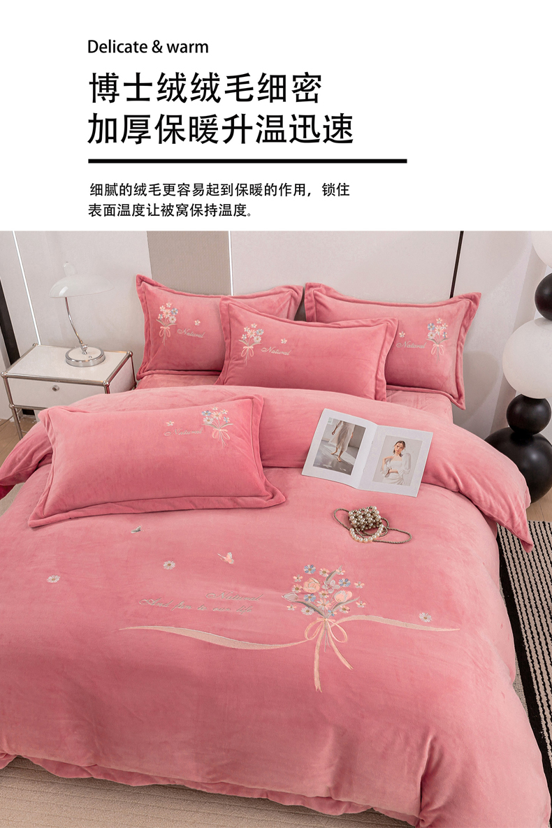绒博士 2025新款220g高克重博士绒秋冬保暖四件套--倾城之恋 倾城之恋 粉色