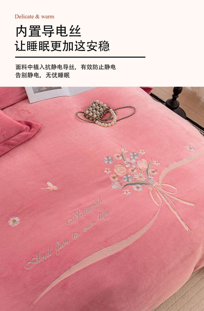 商品名称:绒博士 2025新款220g高克重博士绒秋冬保暖四件套--倾城之恋 倾城之恋 粉色