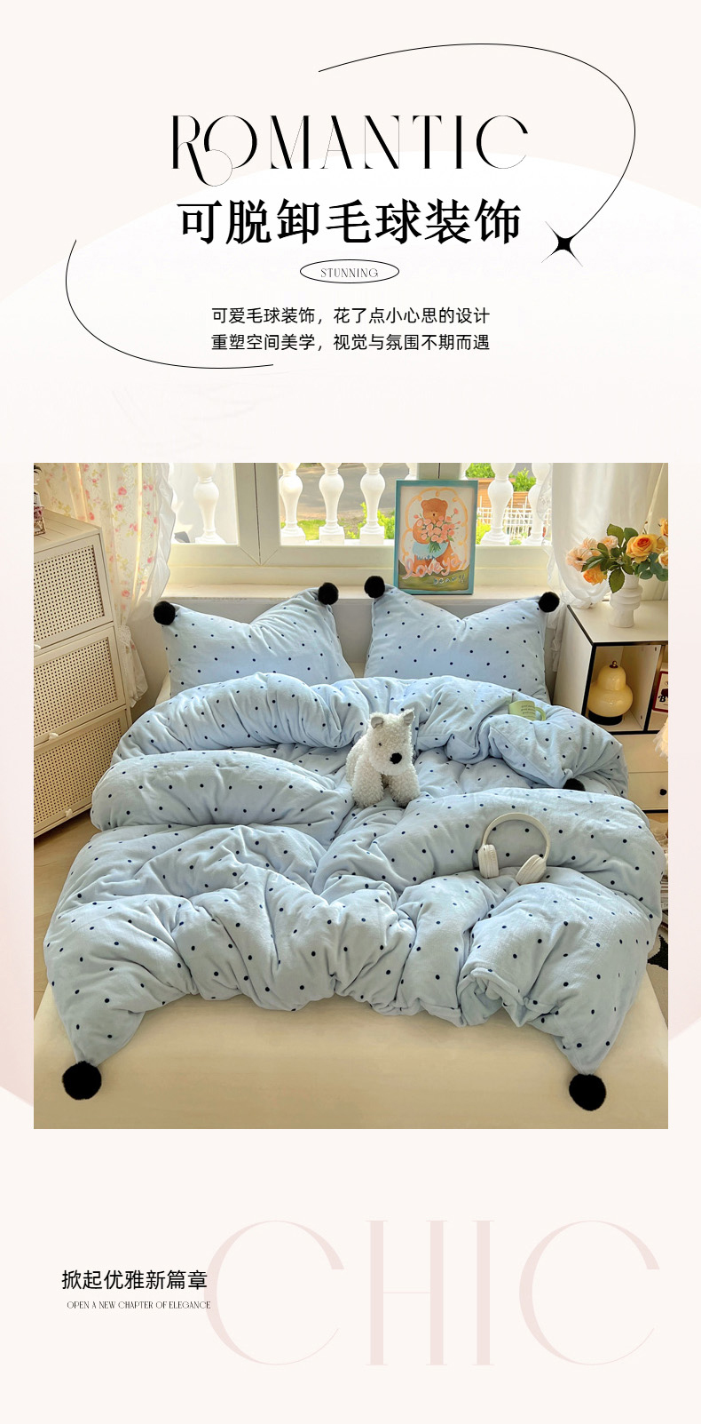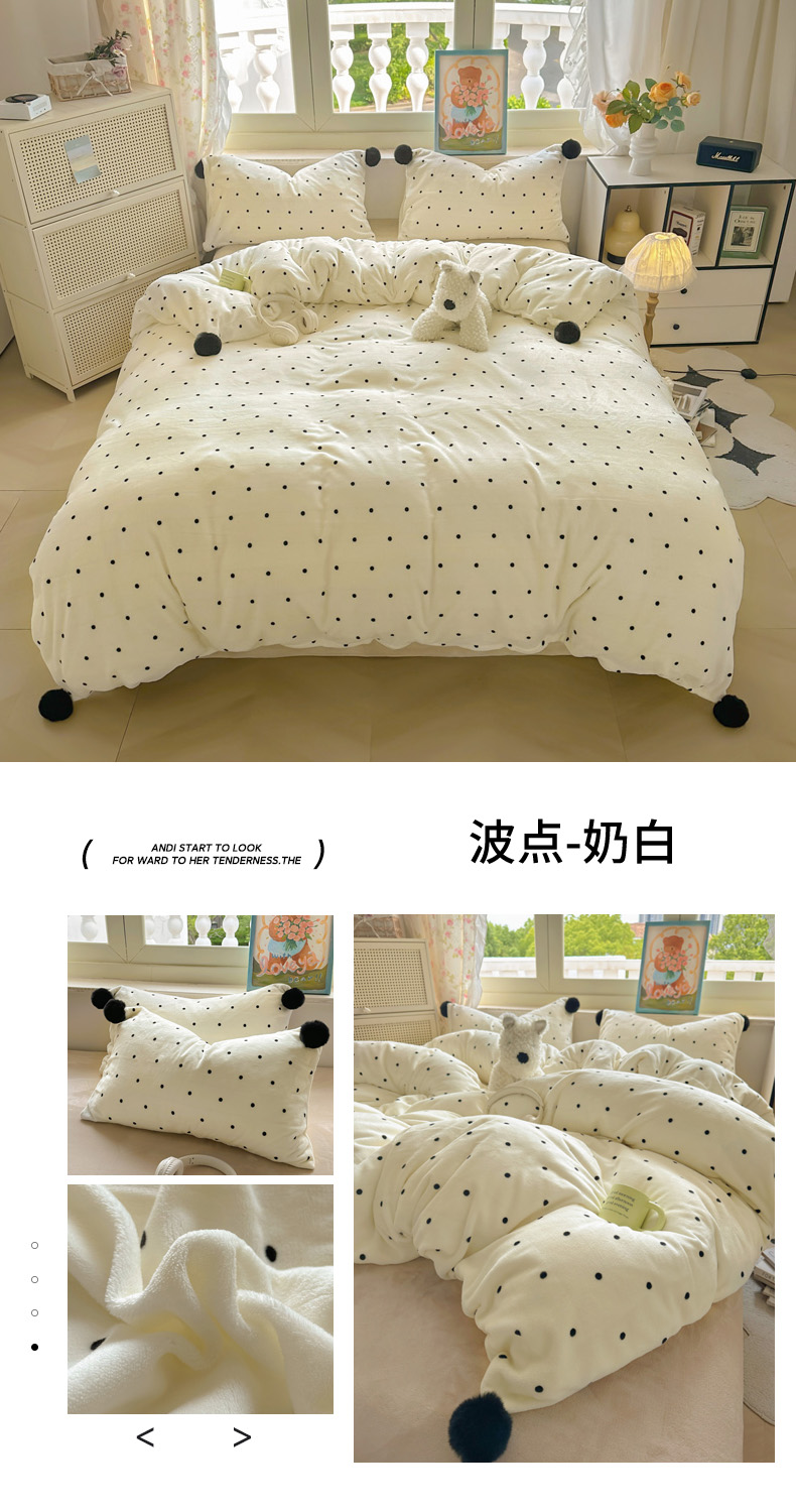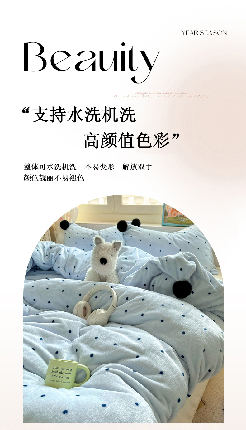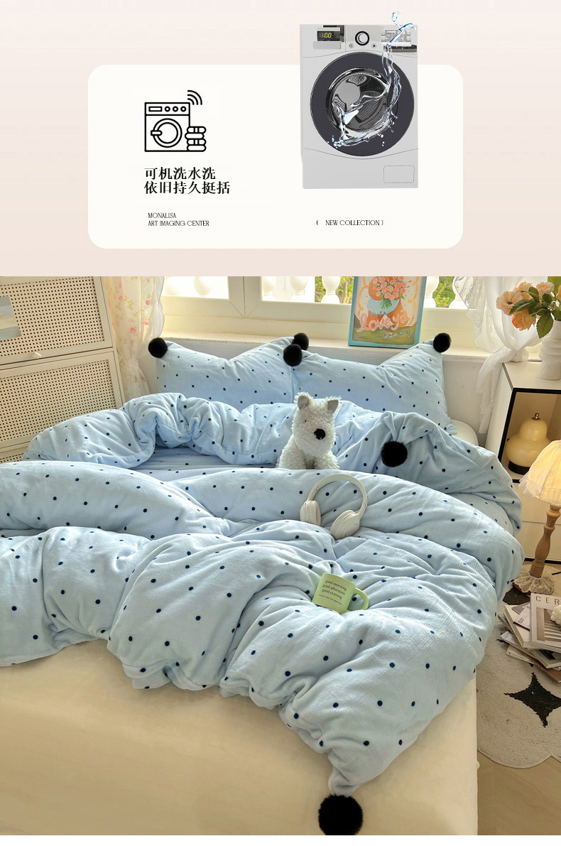 当前位置: 91家纺网 > 商品网购 > 床品套件 > 四件套 > 牛奶绒四件套 > 丽涵家纺 2025秋冬新品混搭波点牛奶绒四件套三件套-拍摄风格二 波点-蓝色