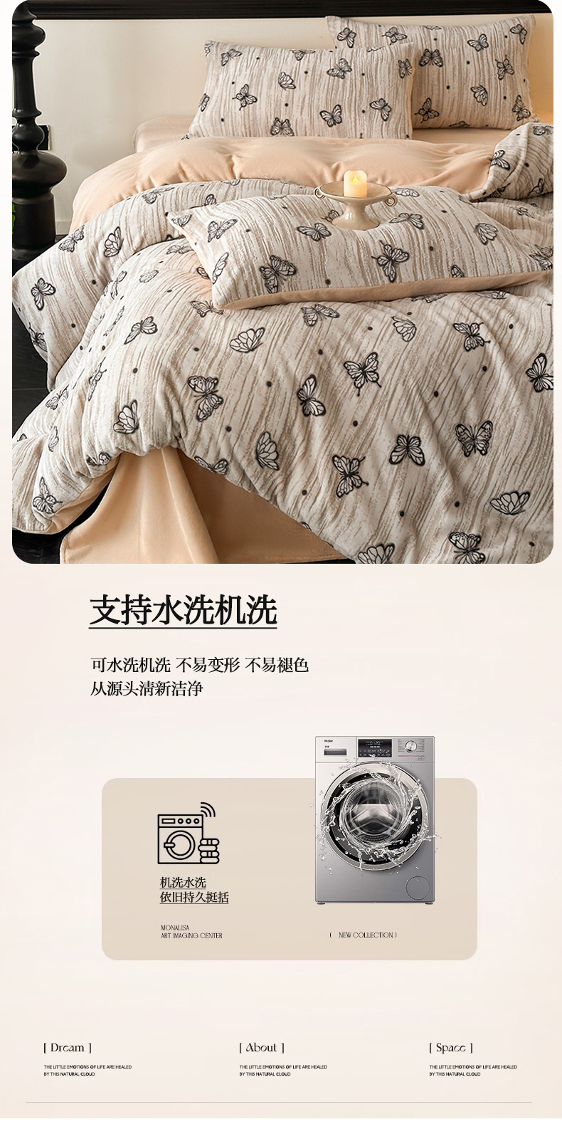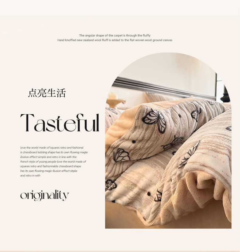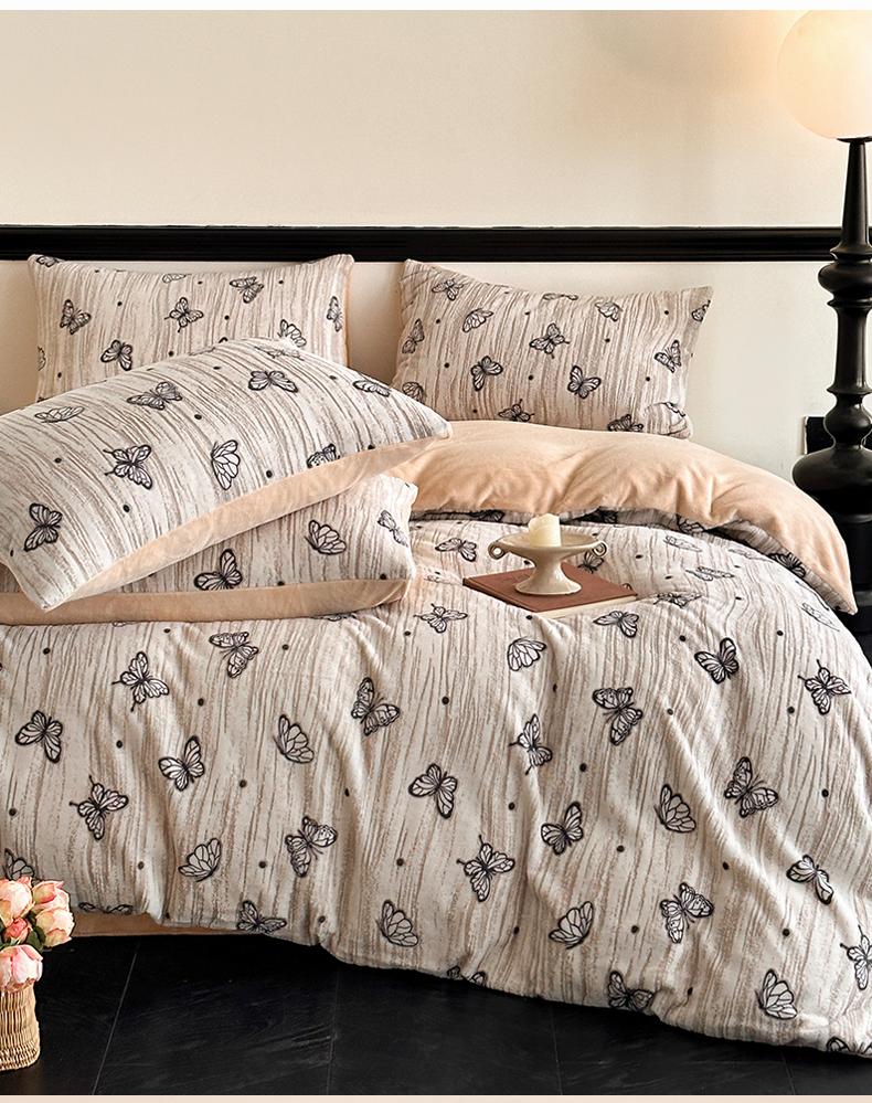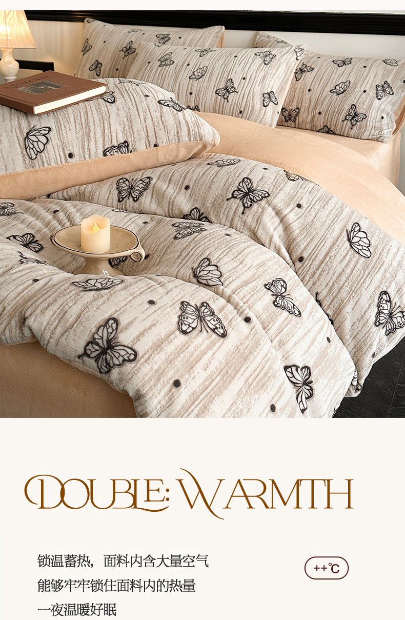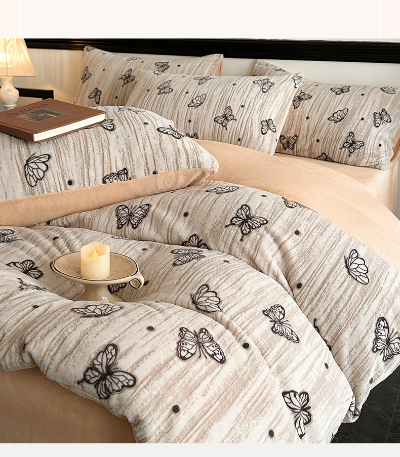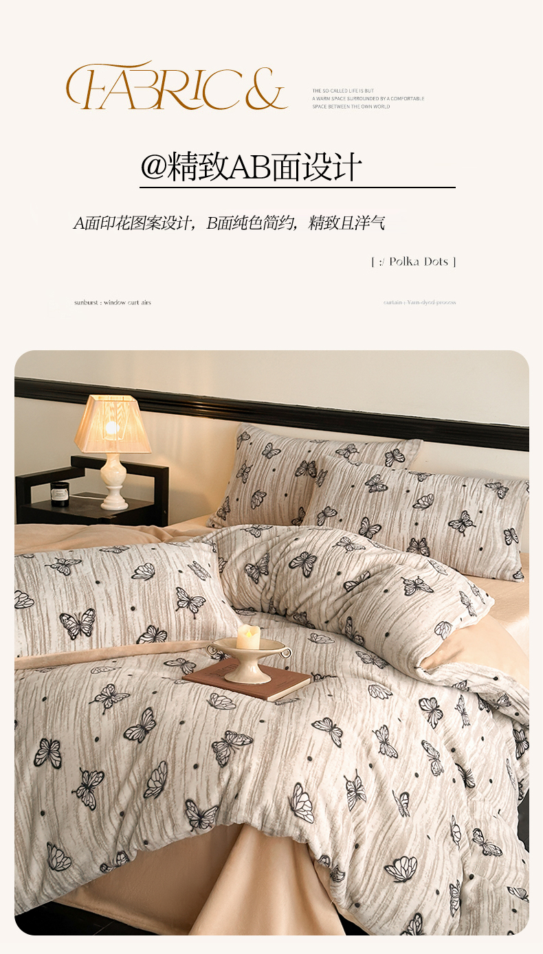 梦幻之城 2025新款雕花牛奶绒系列四件套-蝶缦 蝶缦-香槟色