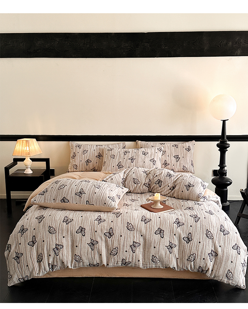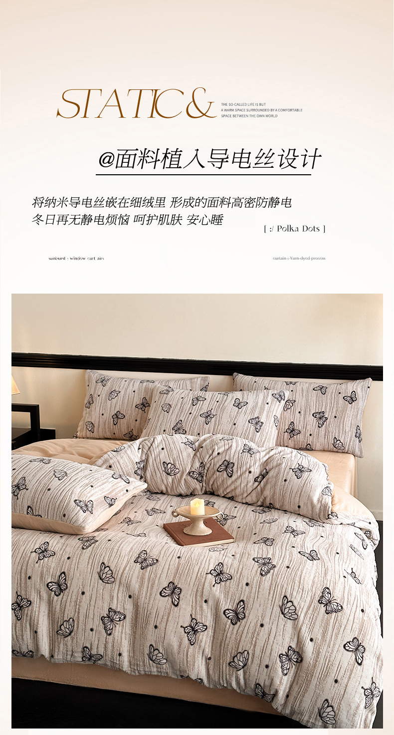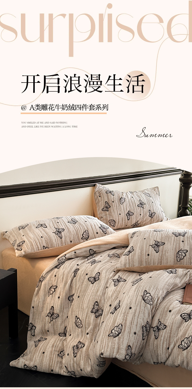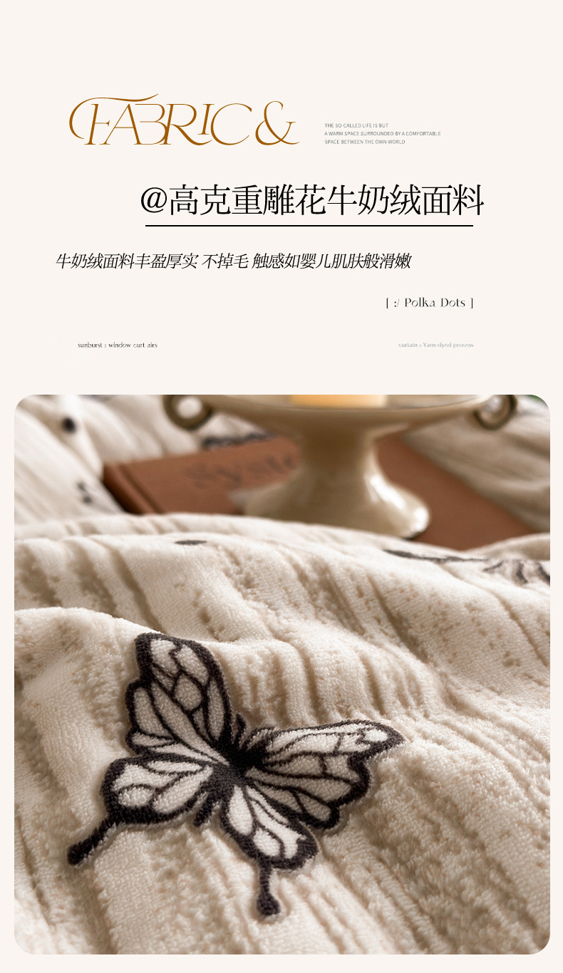 商品名称:梦幻之城 2025新款雕花牛奶绒系列四件套-蝶缦 蝶缦-香槟色