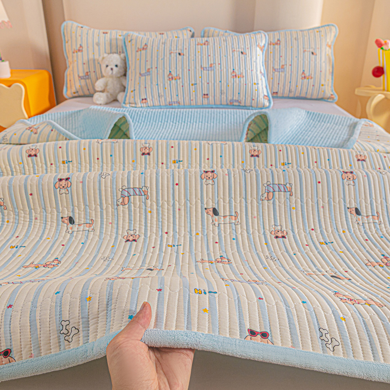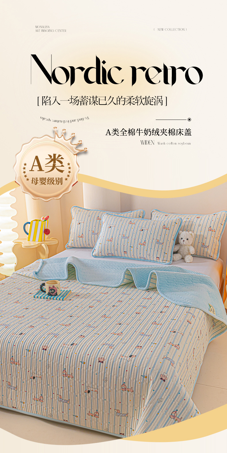 • 91家纺网 家纺一手货源 找家纺 恒尚居 2025新款全棉牛奶绒床盖四季可用纯棉夹棉床单床褥垫三件套-秋冬款系列三 机灵旺仔【A纯棉-B牛奶绒】
