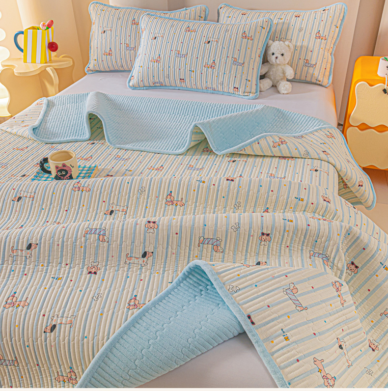 恒尚居 2025新款全棉牛奶绒床盖四季可用纯棉夹棉床单床褥垫三件套-秋冬款系列三 机灵旺仔【A纯棉-B牛奶绒】