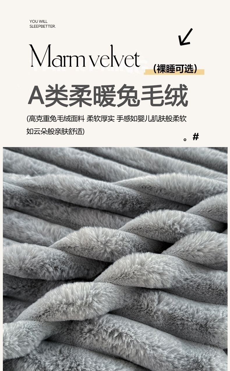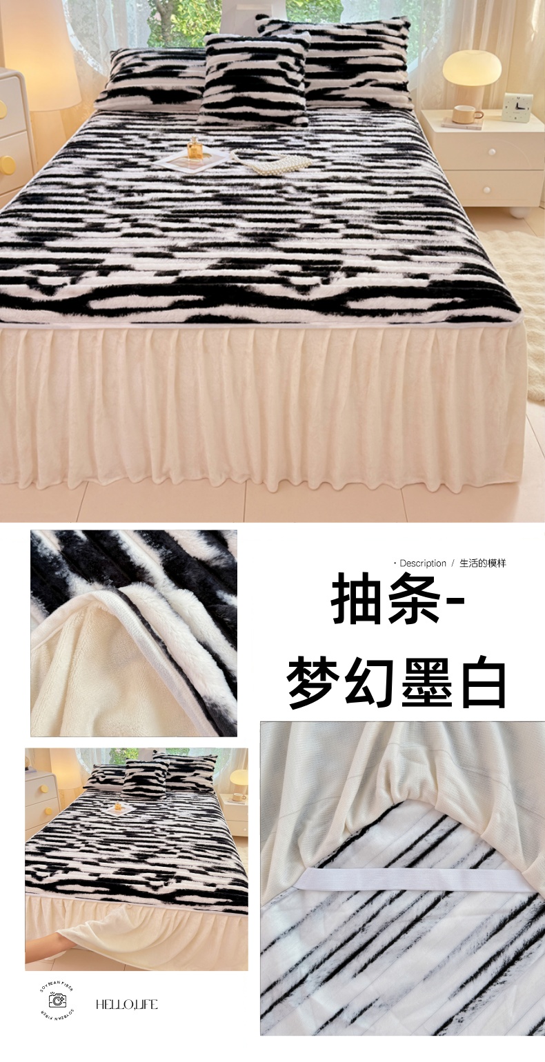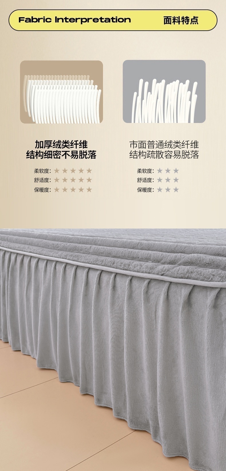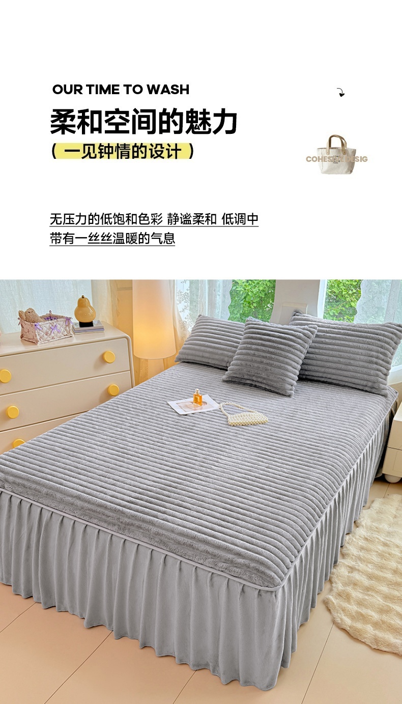 商品名称:梦舒羽 2025新款兔毛绒床裙法兰绒床垫保护罩牛奶绒床垫法莱绒床单罩-抽条 兔毛绒抽条-烟雨灰