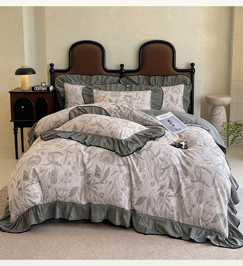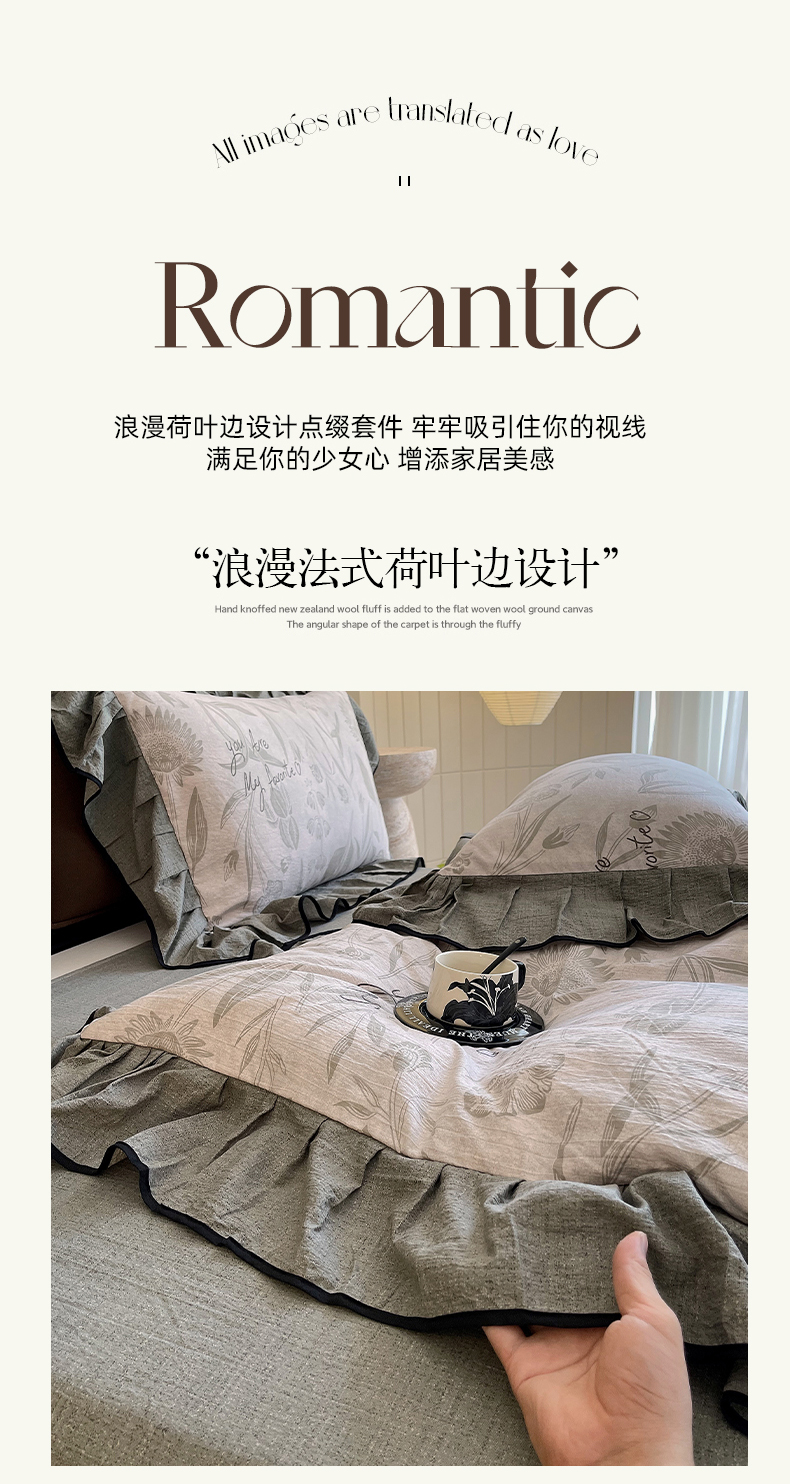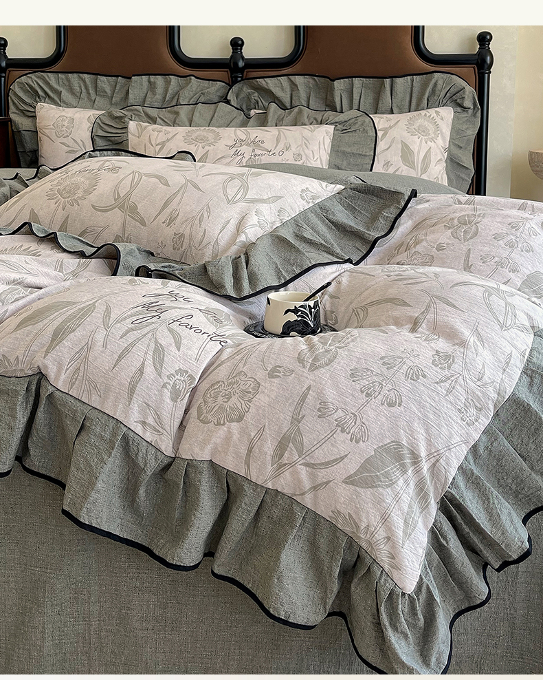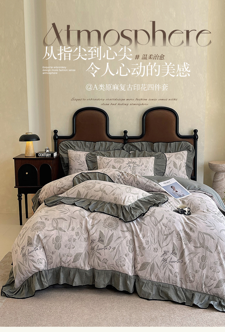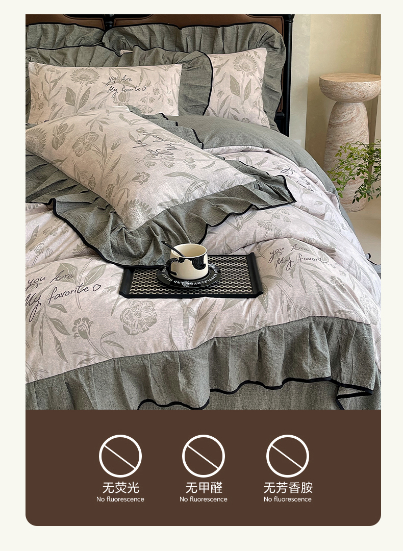 丝芙妮家居(原乐视家纺) 2025新款A类原麻复合印花花边四件套 叶新泽
