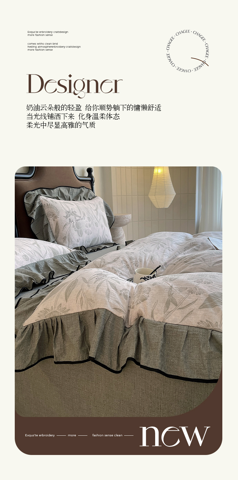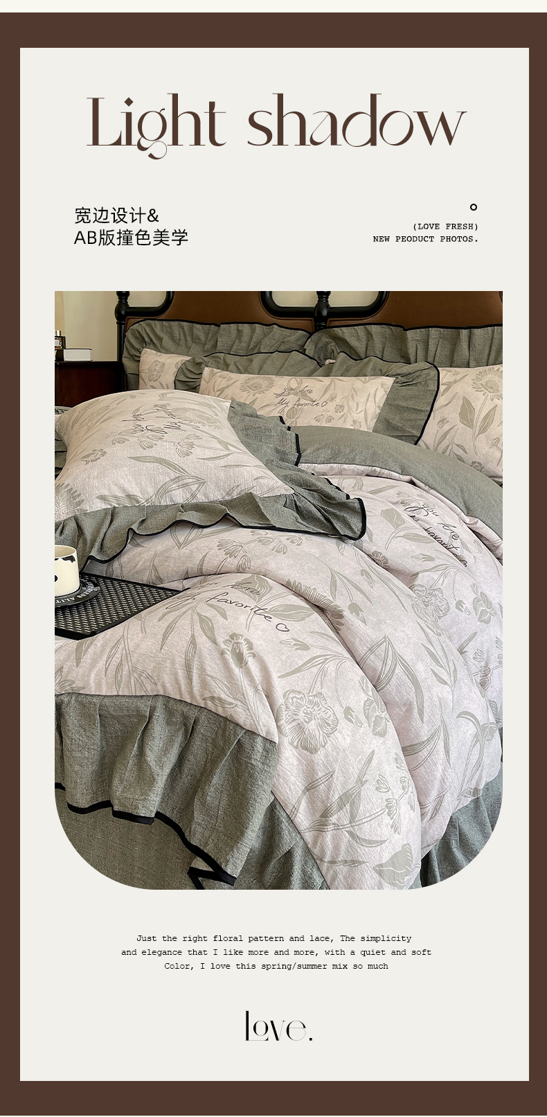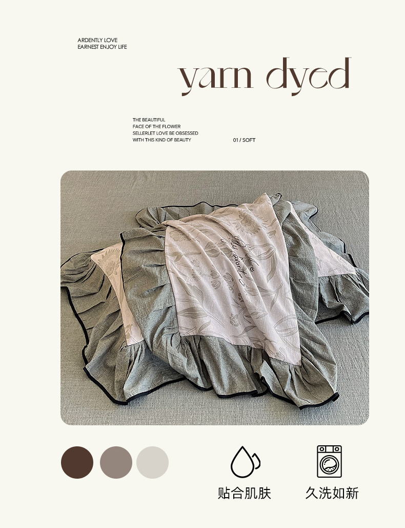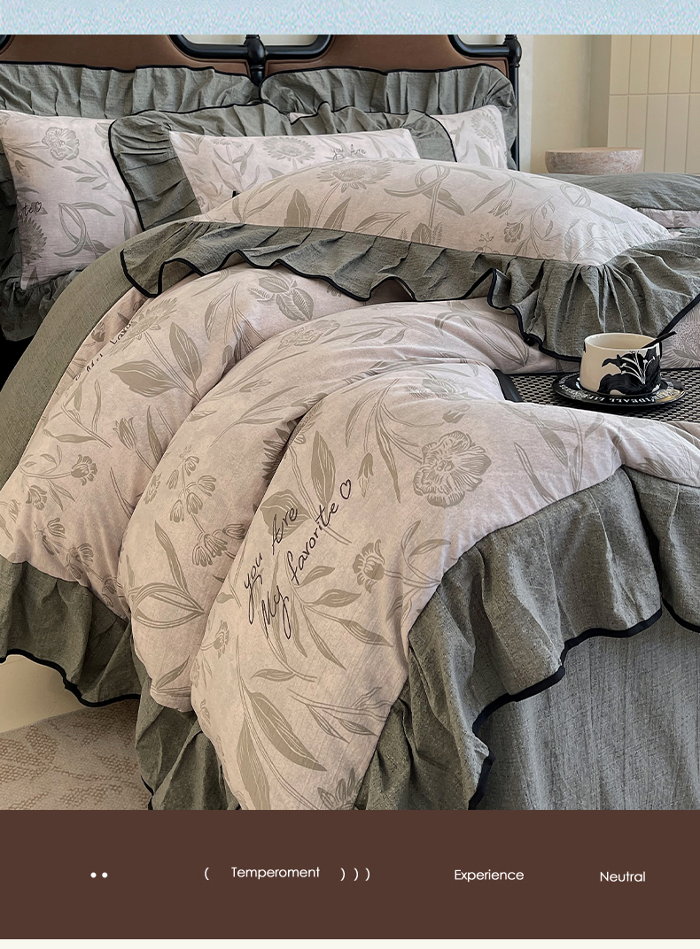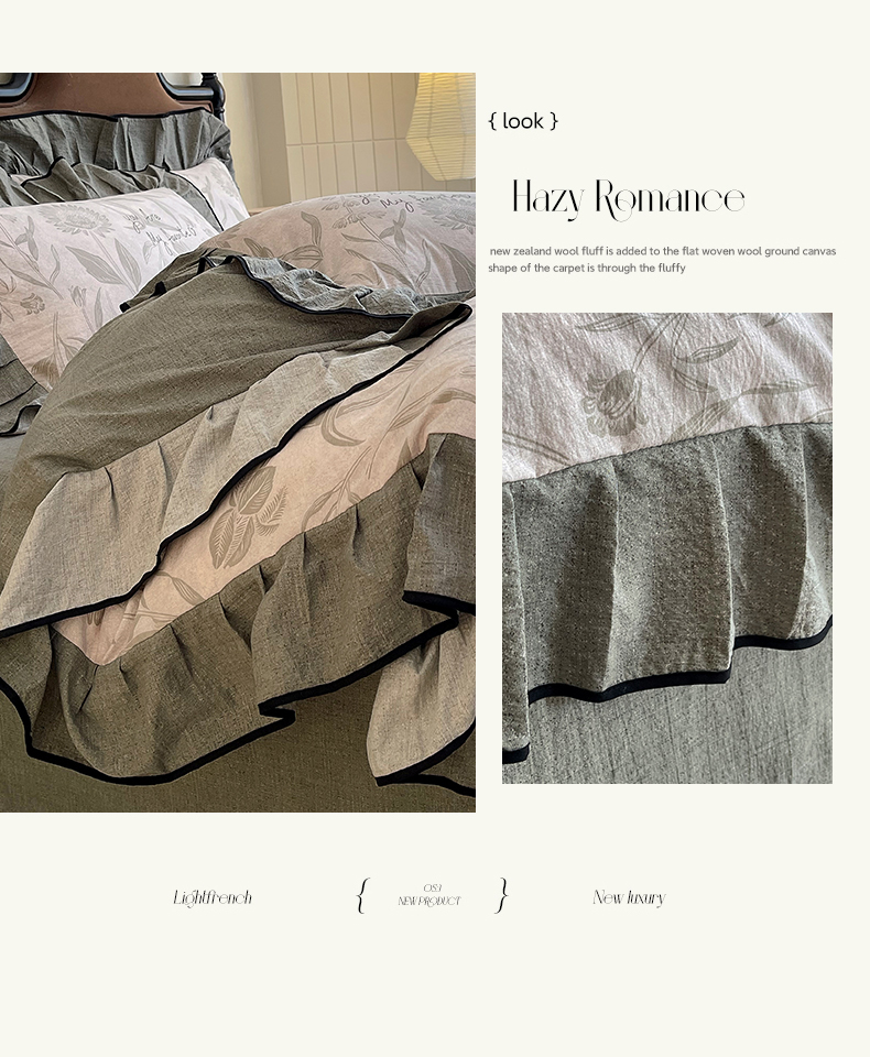 丝芙妮家居(原乐视家纺) 2025新款A类原麻复合印花花边四件套 叶新泽