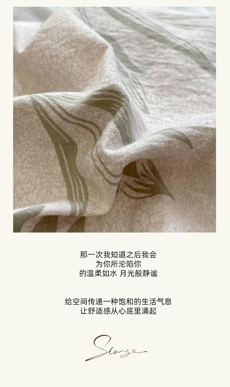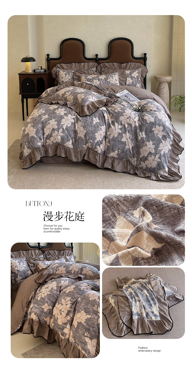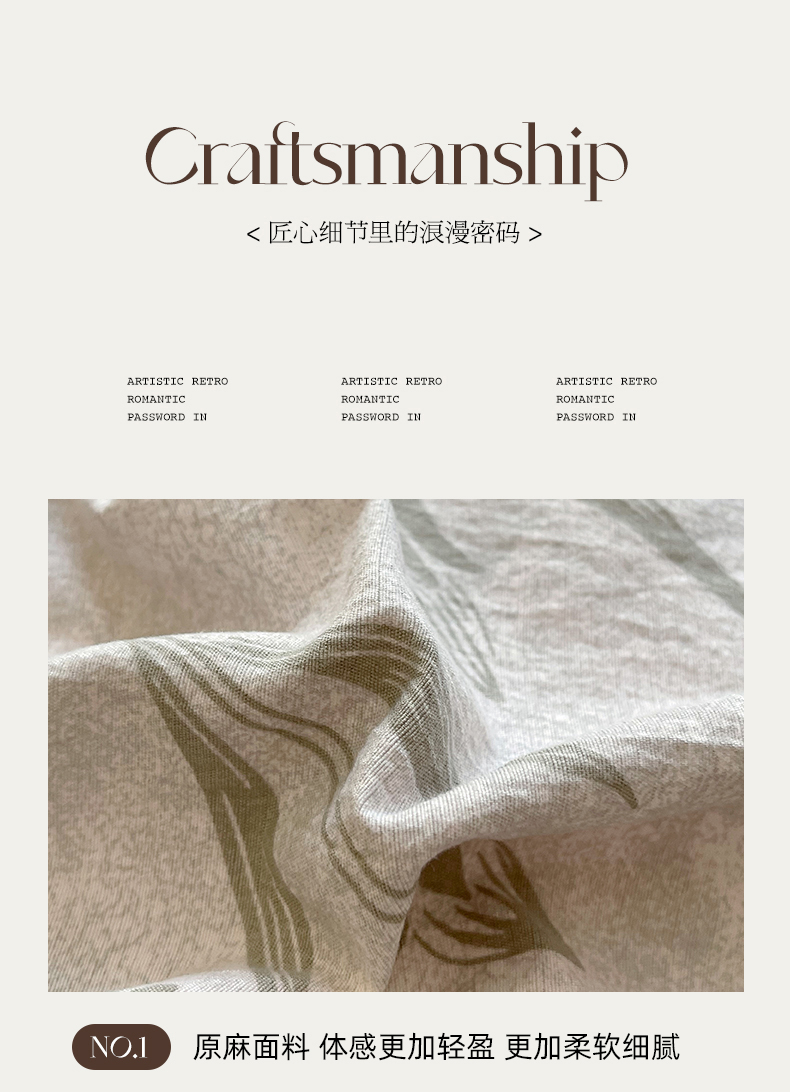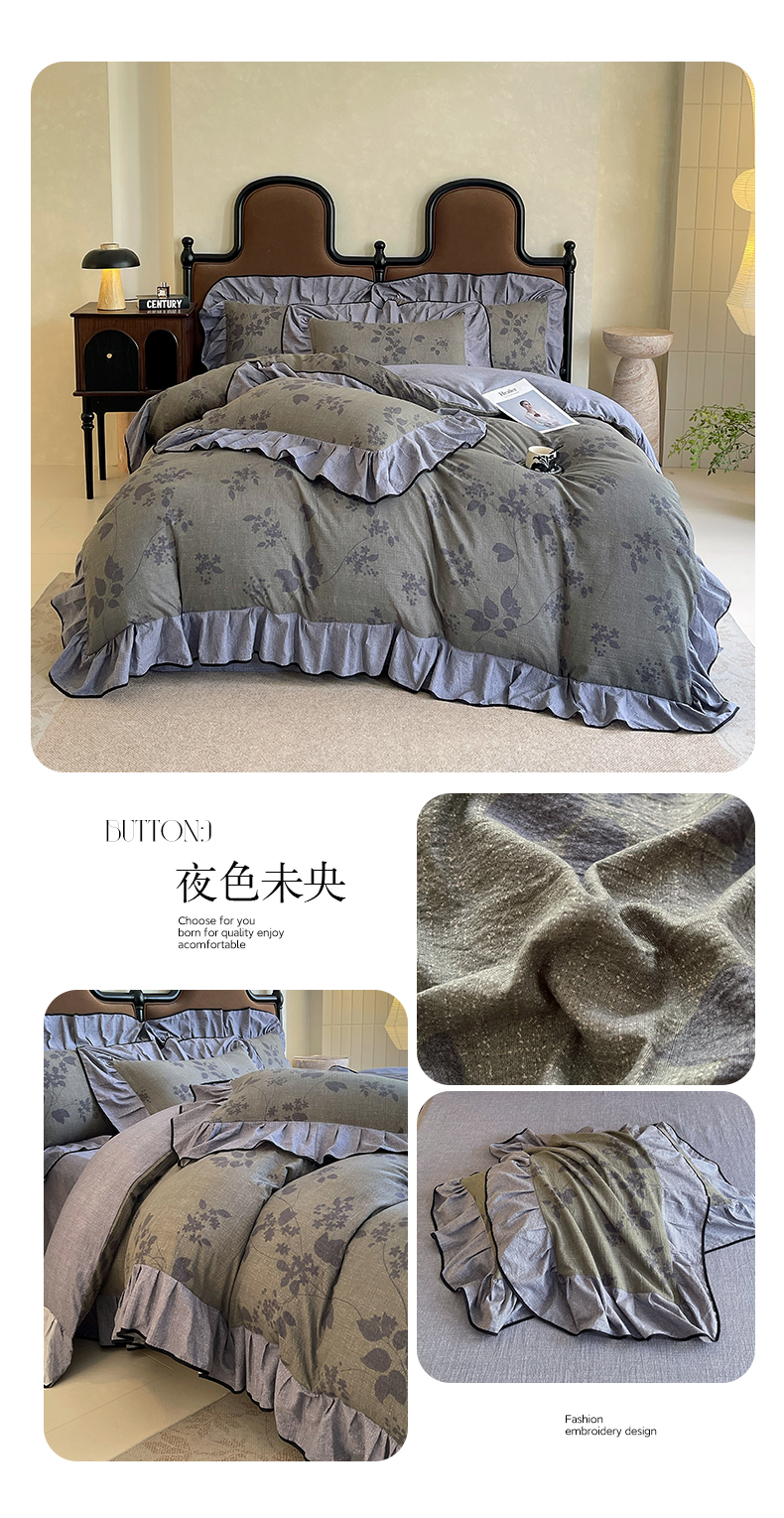 商品名称:丝芙妮家居(原乐视家纺) 2025新款A类原麻复合印花花边四件套 叶新泽