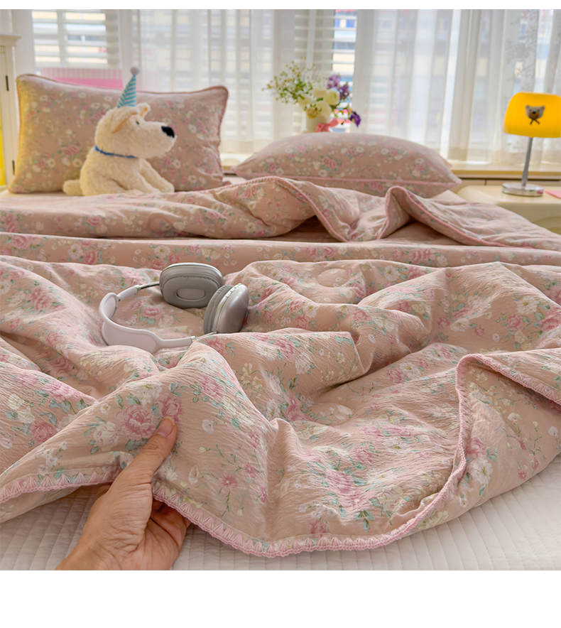 商品名称:澜妃 2025新款云感双层纱抗菌贝壳边夏被夏凉被空调被 组合图仅供展示