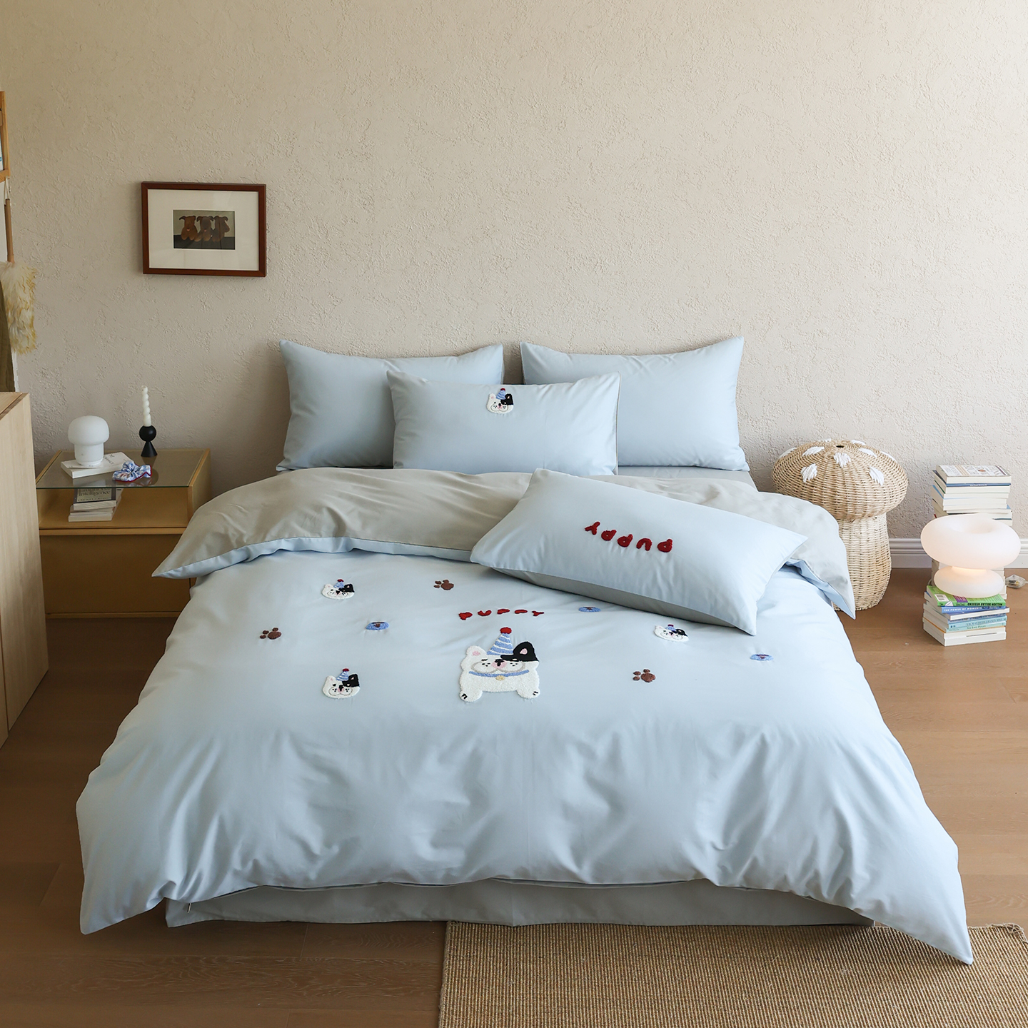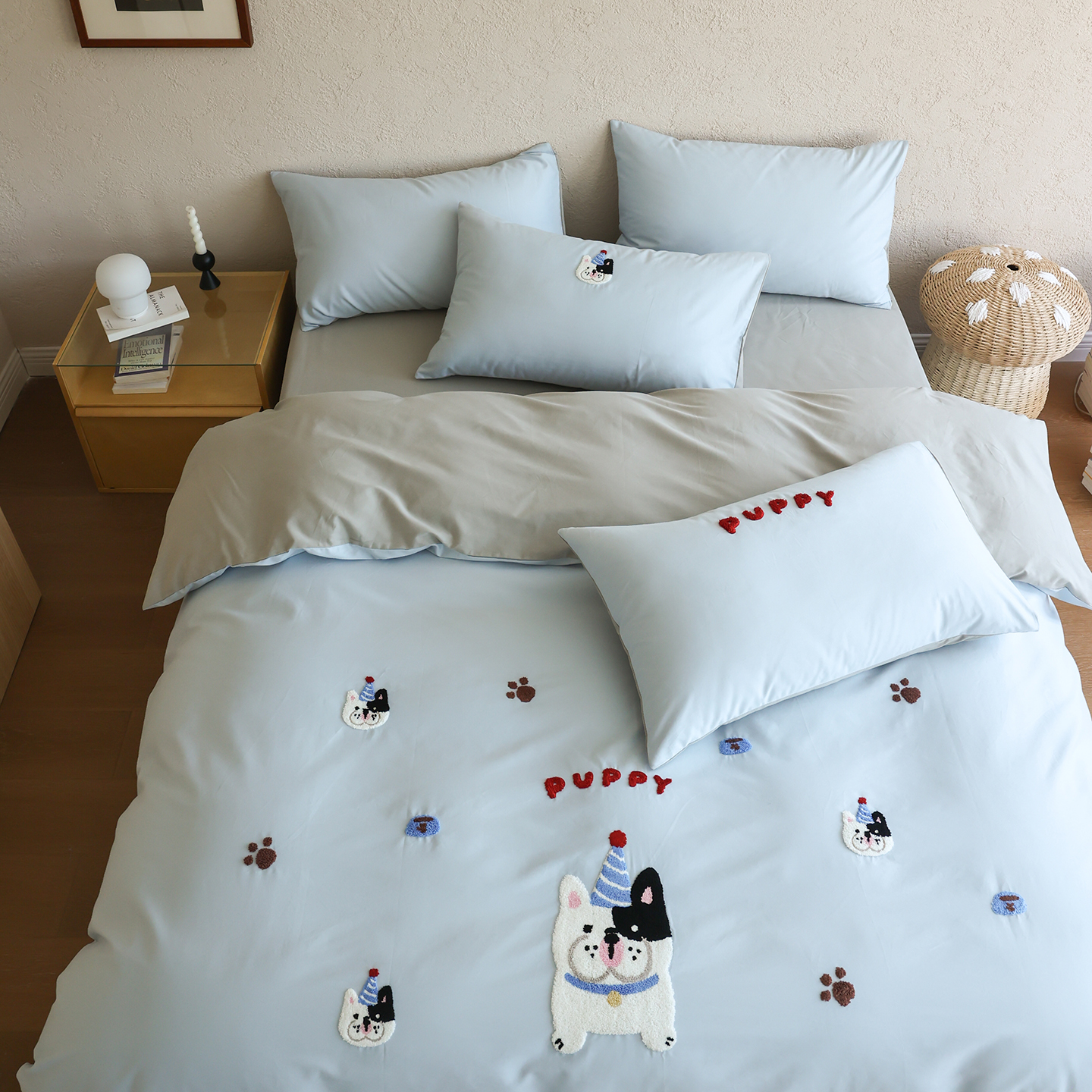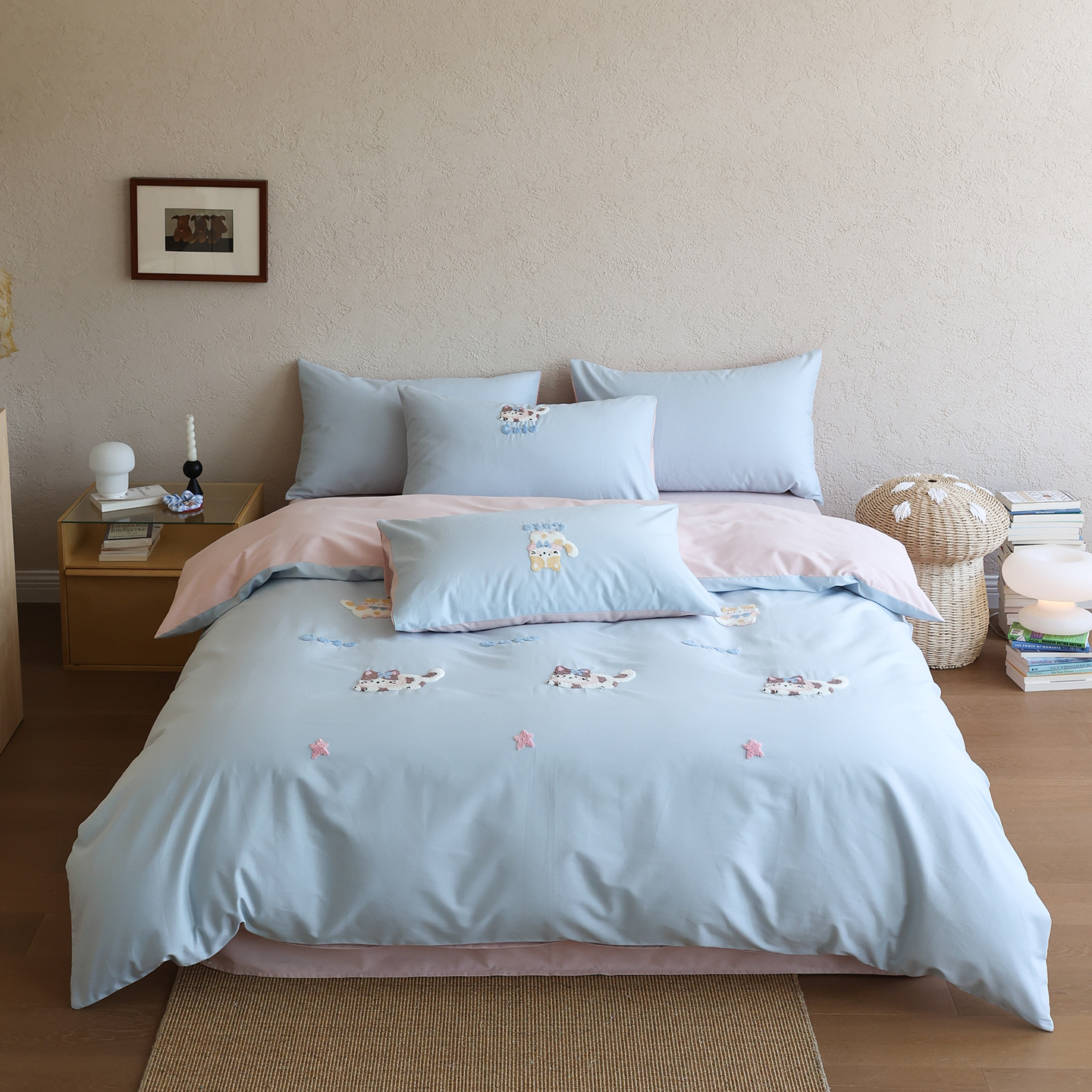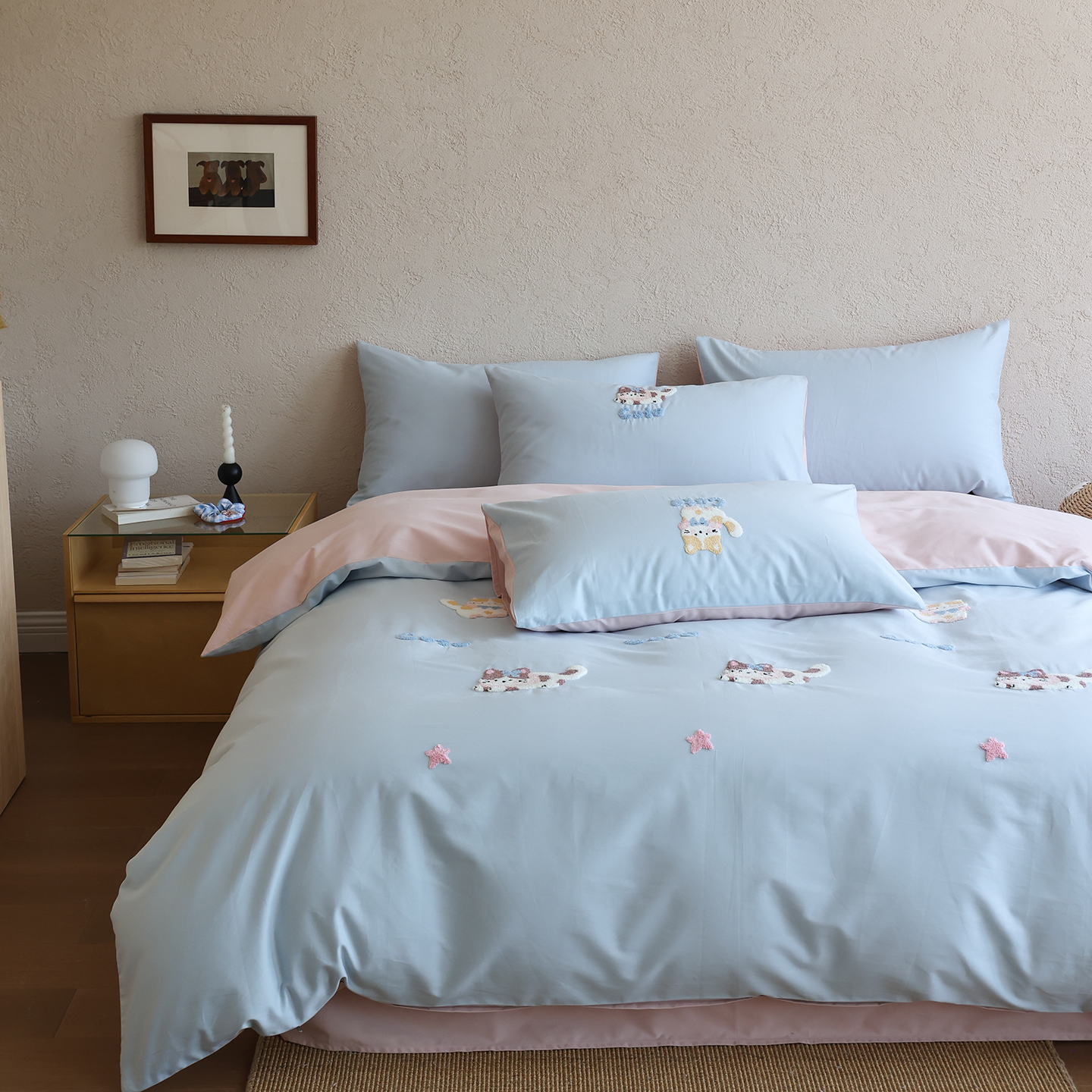 当前位置: 91家纺网 > 商品网购 > 床品套件 > 四件套 > 全棉普通四件套 > 时光里 2025新款全棉100S卡通风磨毛毛巾绣四件套 星愿小宝贝