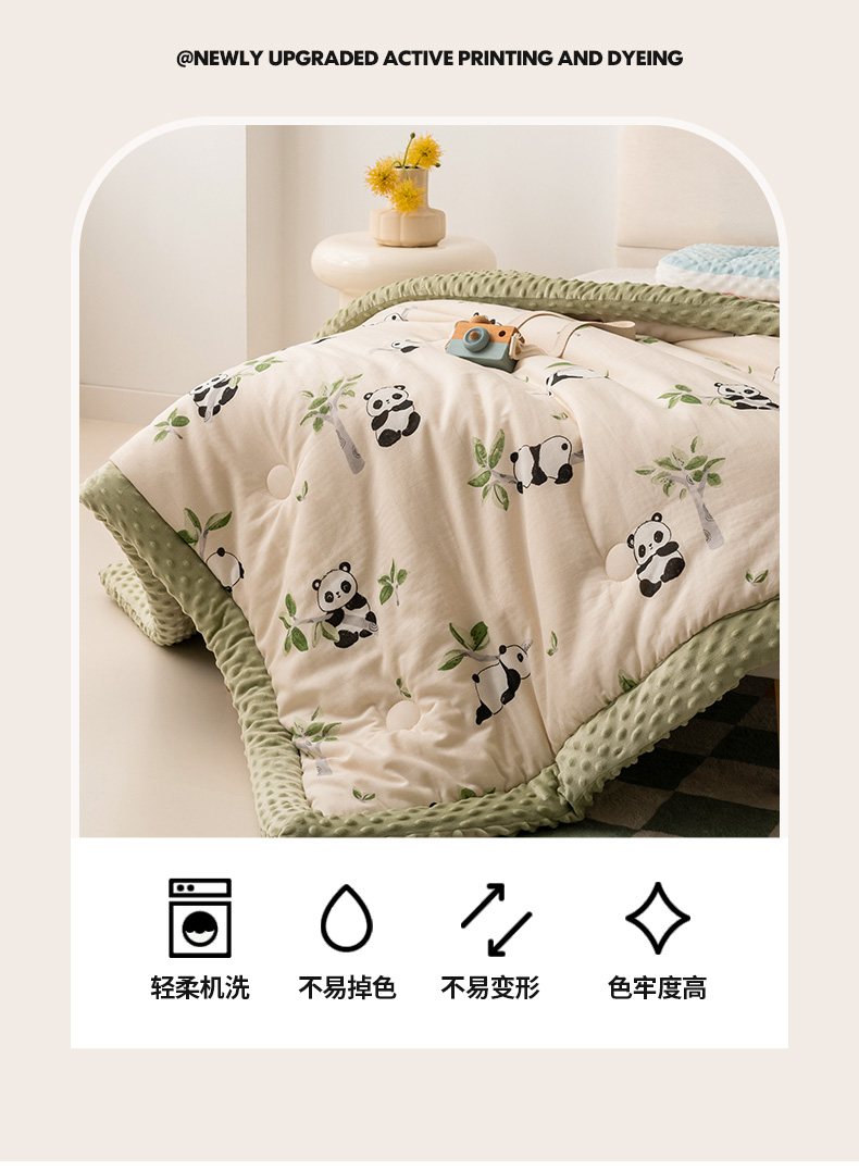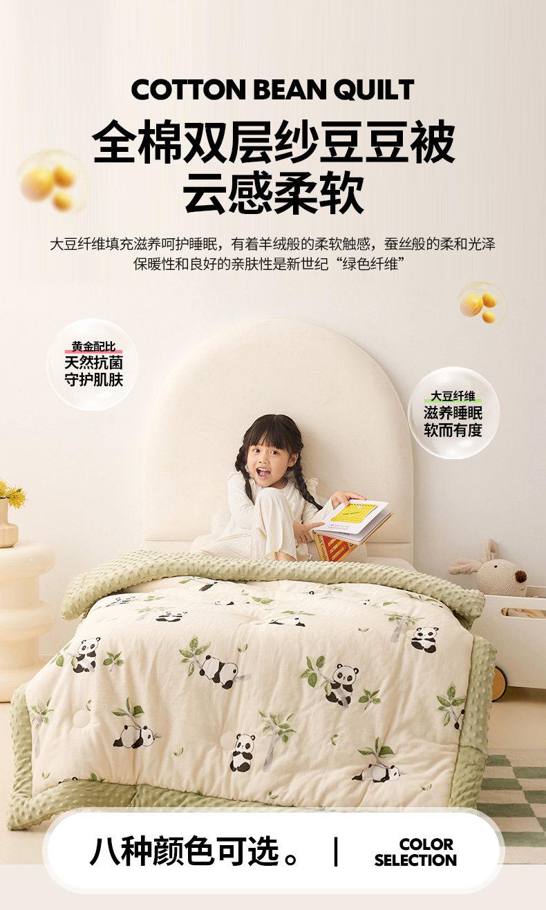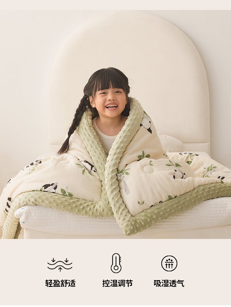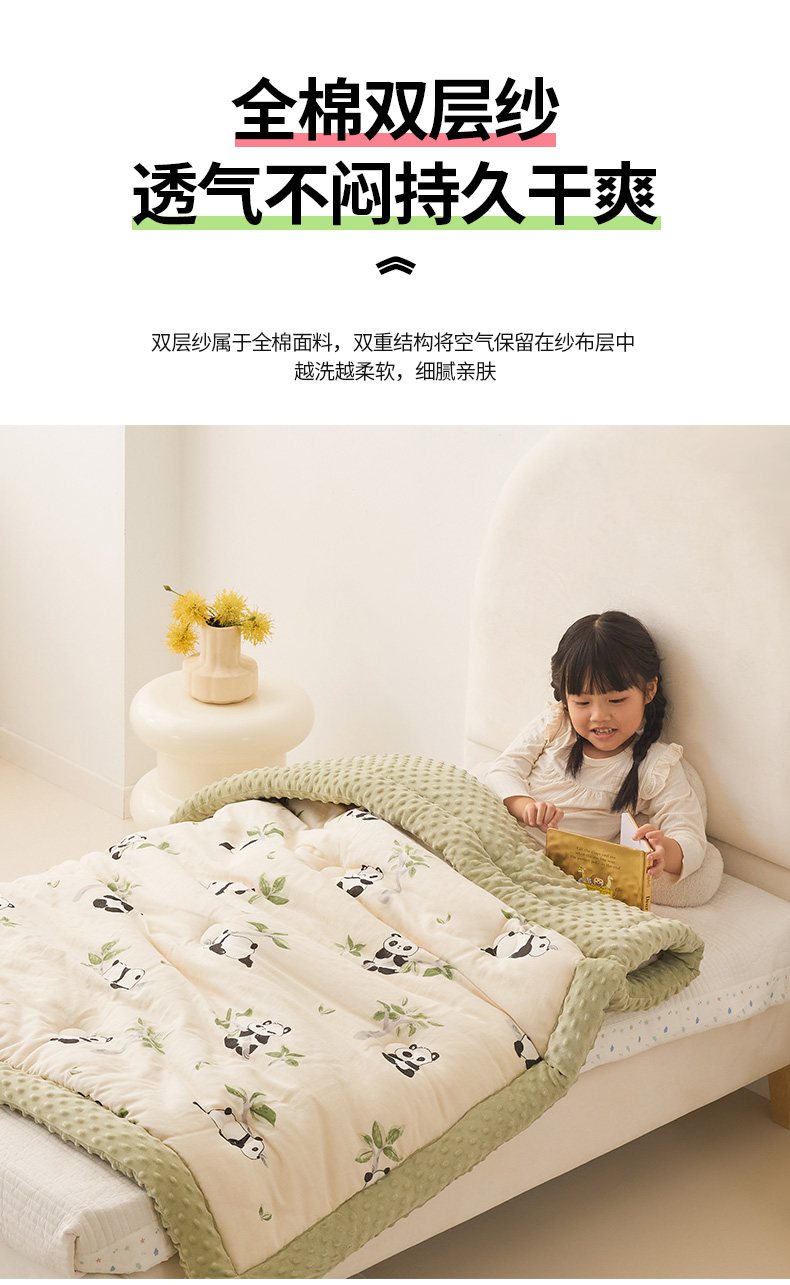 商品名称:嗨生活 2025新款全棉双层纱豆豆被儿童被春秋被冬被幼儿园被子系列 熊猫盼盼