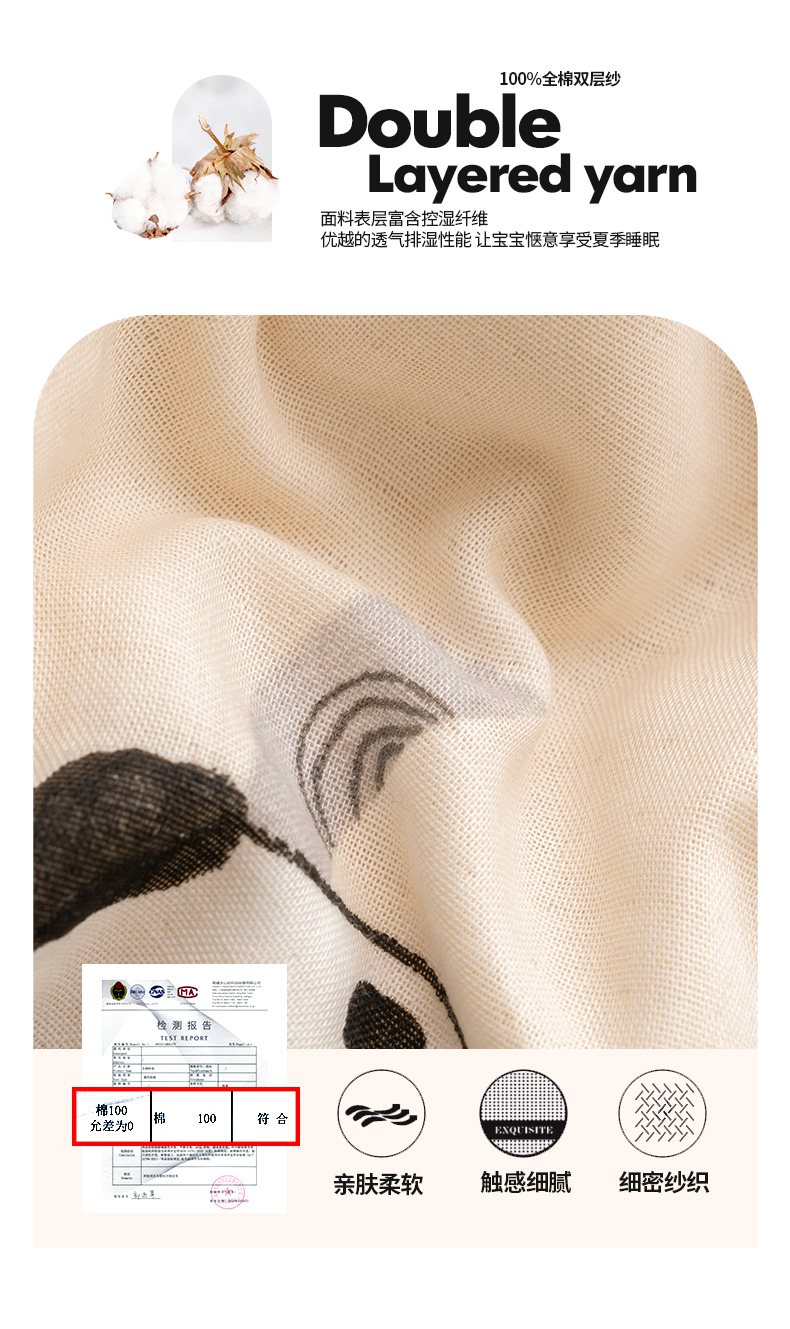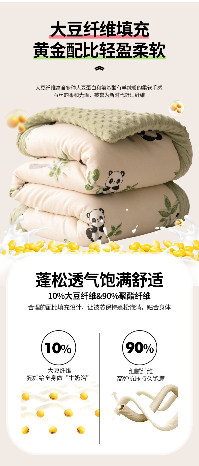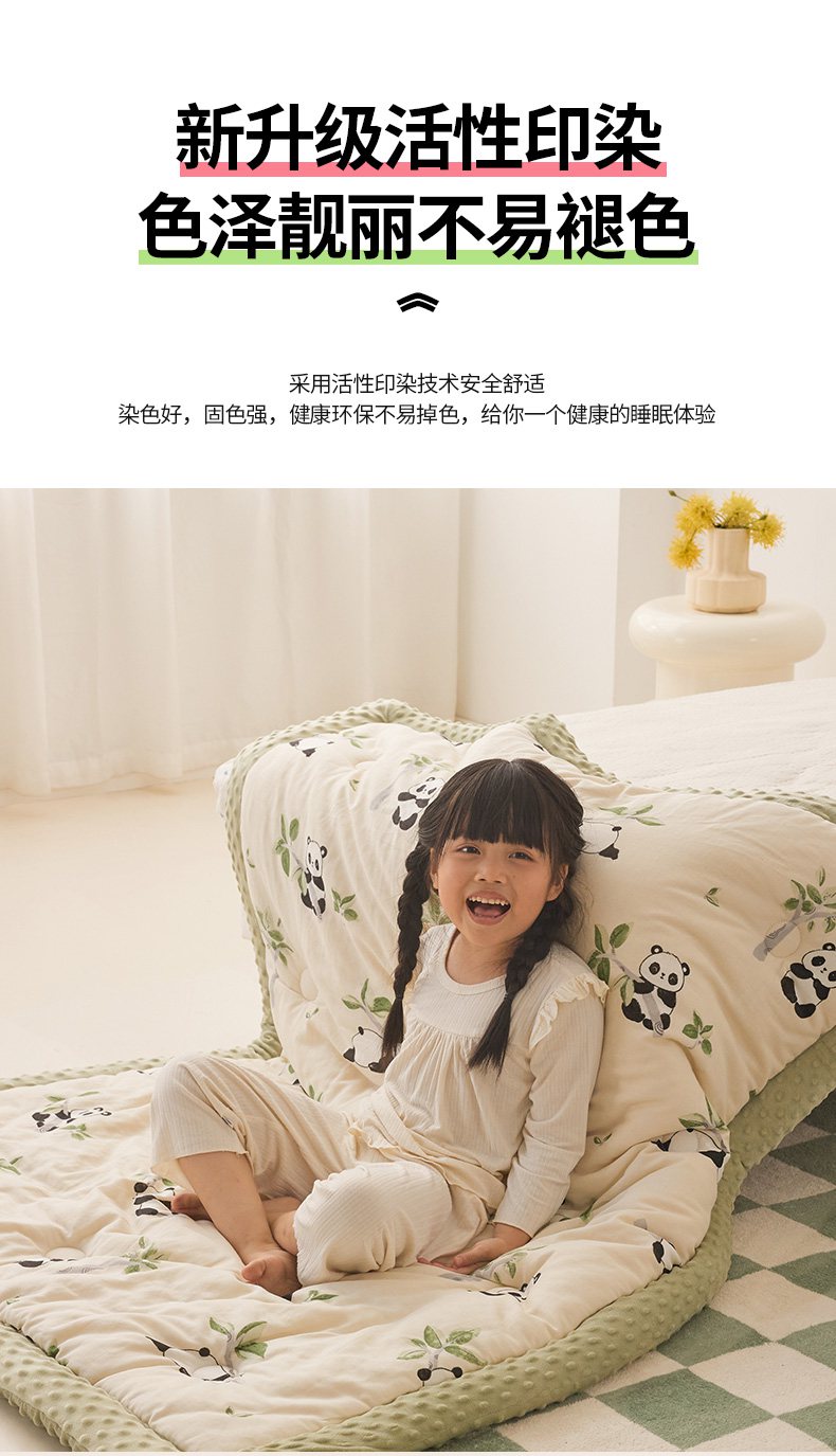 商品名称:嗨生活 2025新款全棉双层纱豆豆被儿童被春秋被冬被幼儿园被子系列 熊猫盼盼