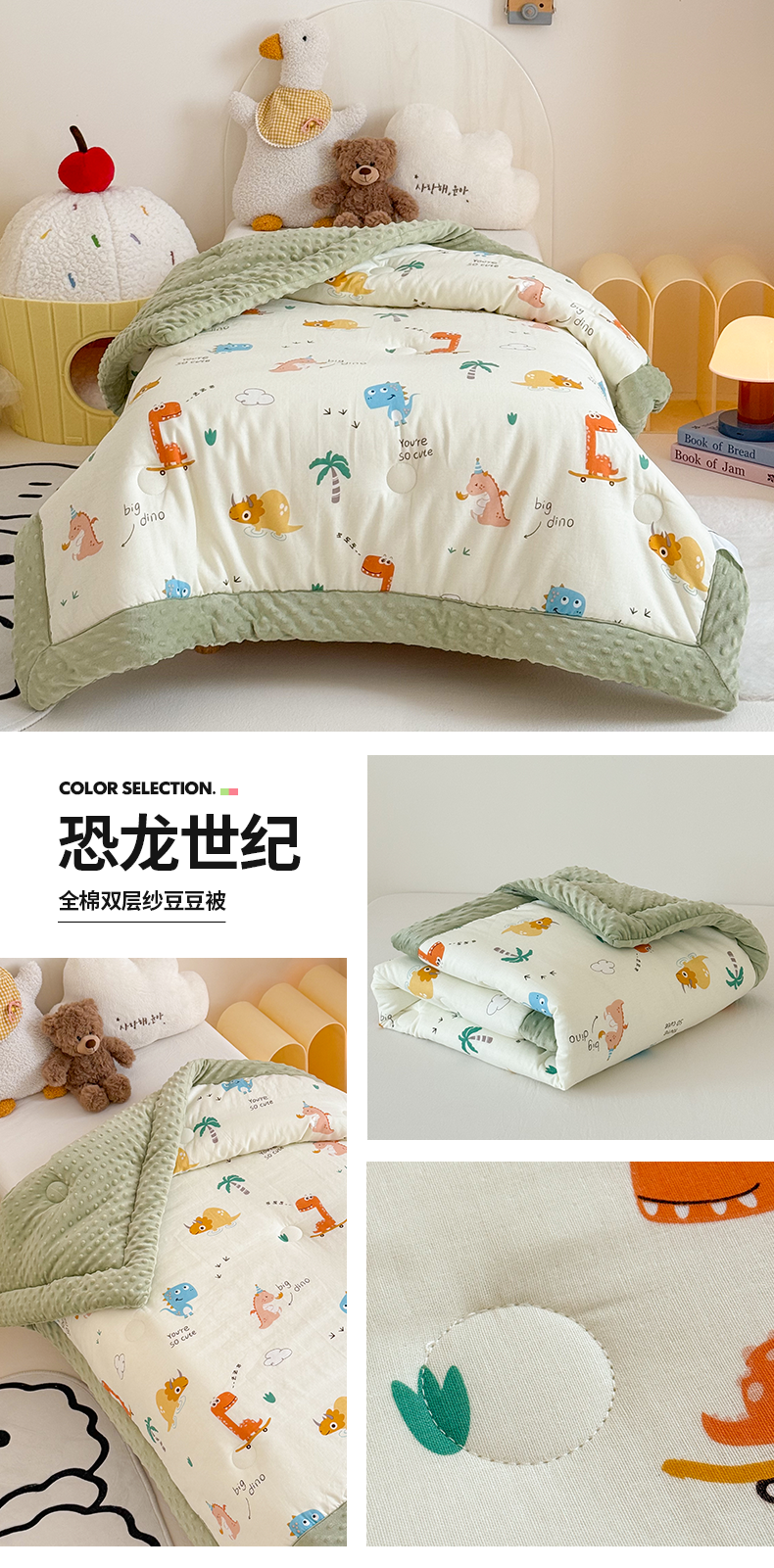 (总)嗨生活 2025新款3D触感全棉豆豆被儿童豆豆被春秋被冬被幼儿园一体款被子,安妮兔,宝宝巴士,彩色童趣,动物园,恐龙聚会,萌宠恐龙,奶味小兔,汽车滴滴,童话乐园,小恐龙,银河之旅,宇航漫步