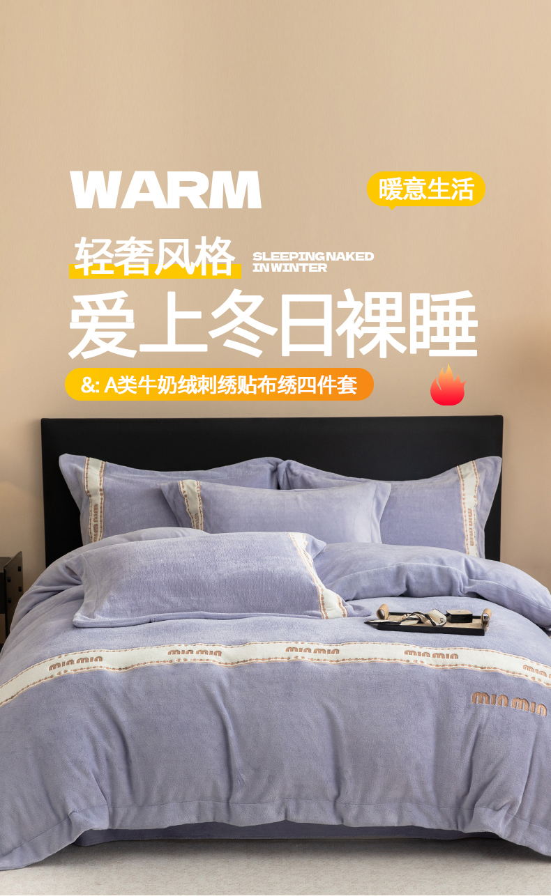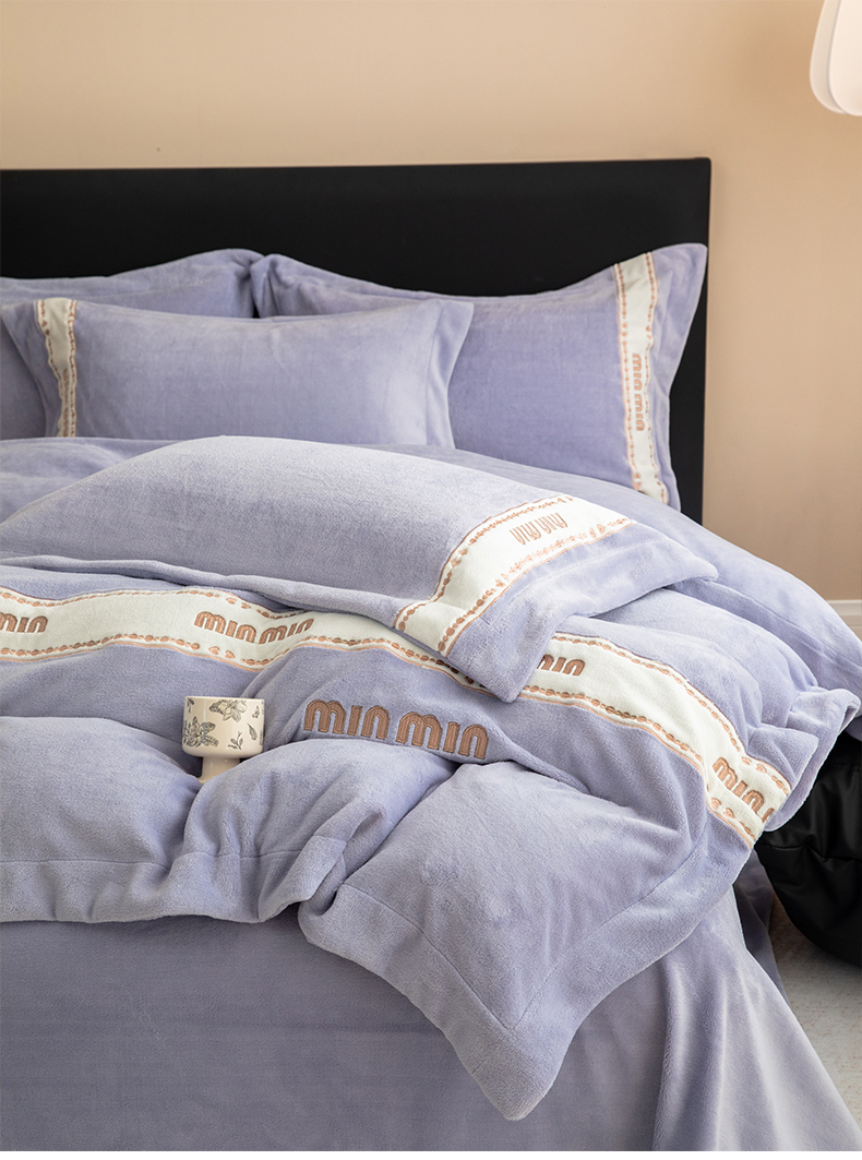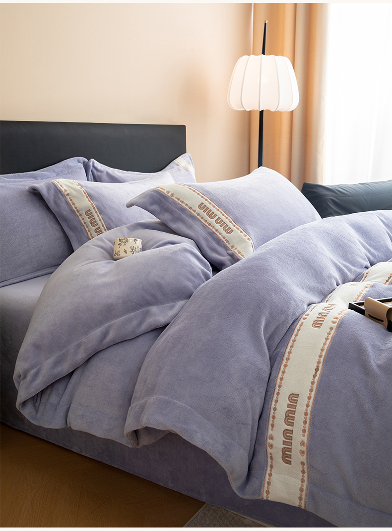 懒猫家纺 2025新款刺绣贴布绣牛奶绒四件套-珍妮 珍妮-巴黎紫