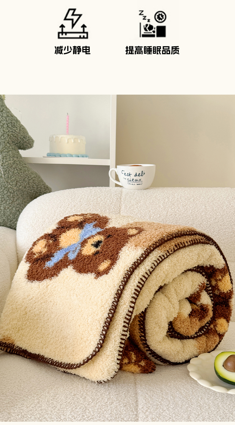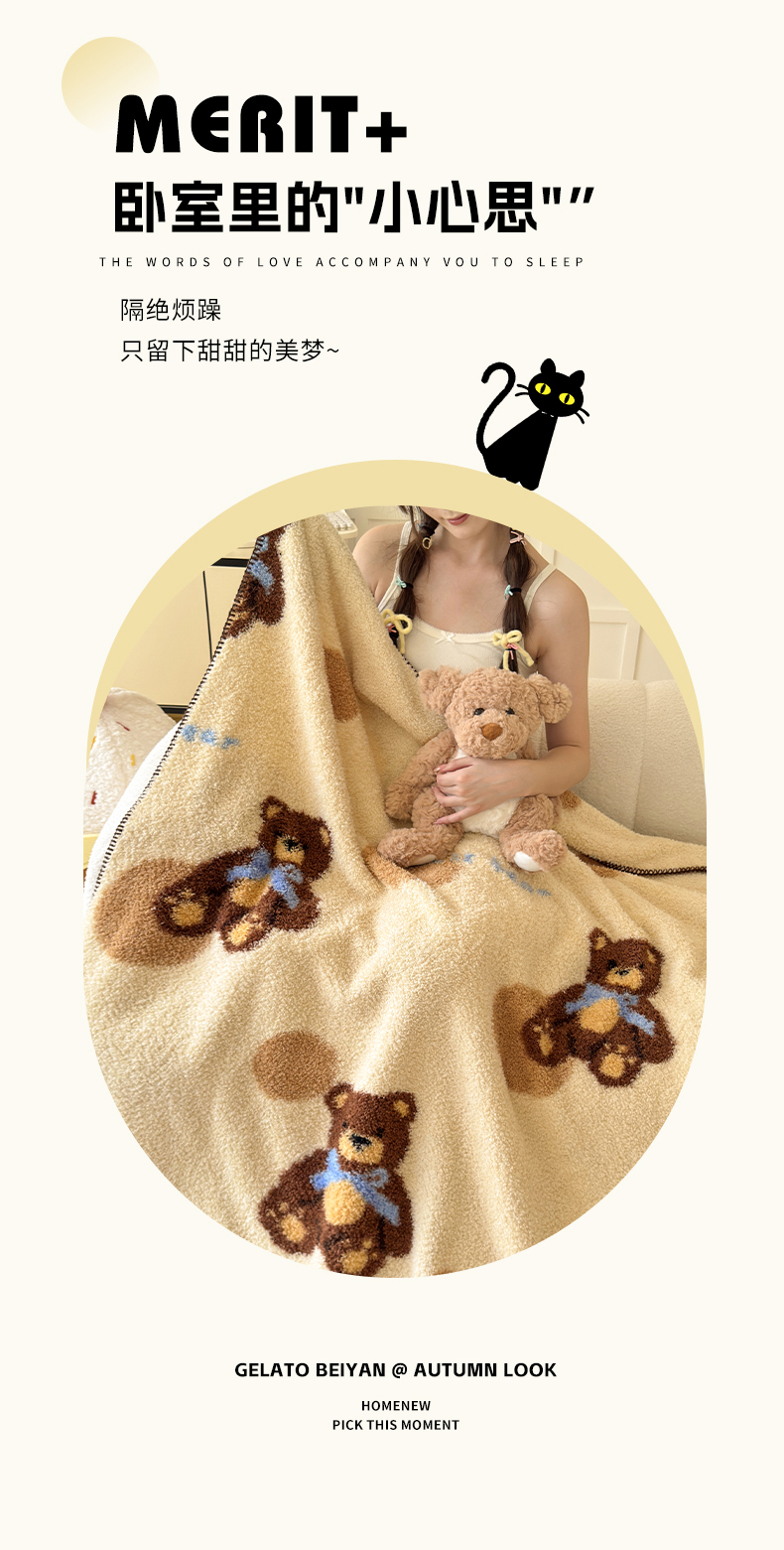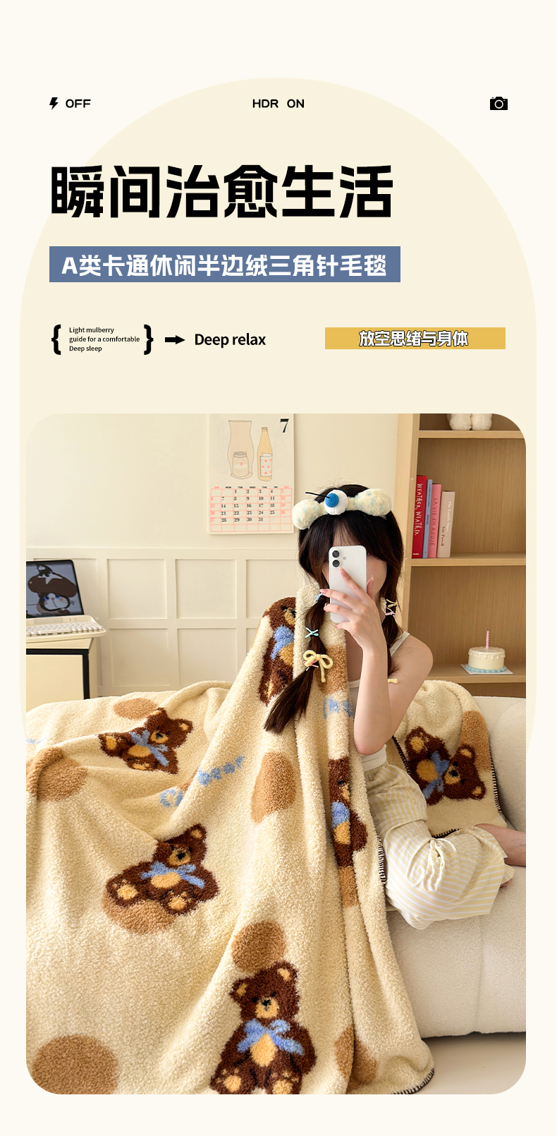 舒隅家纺 2025新款A类卡通休闲半边绒三角针毛毯 小熊软糖