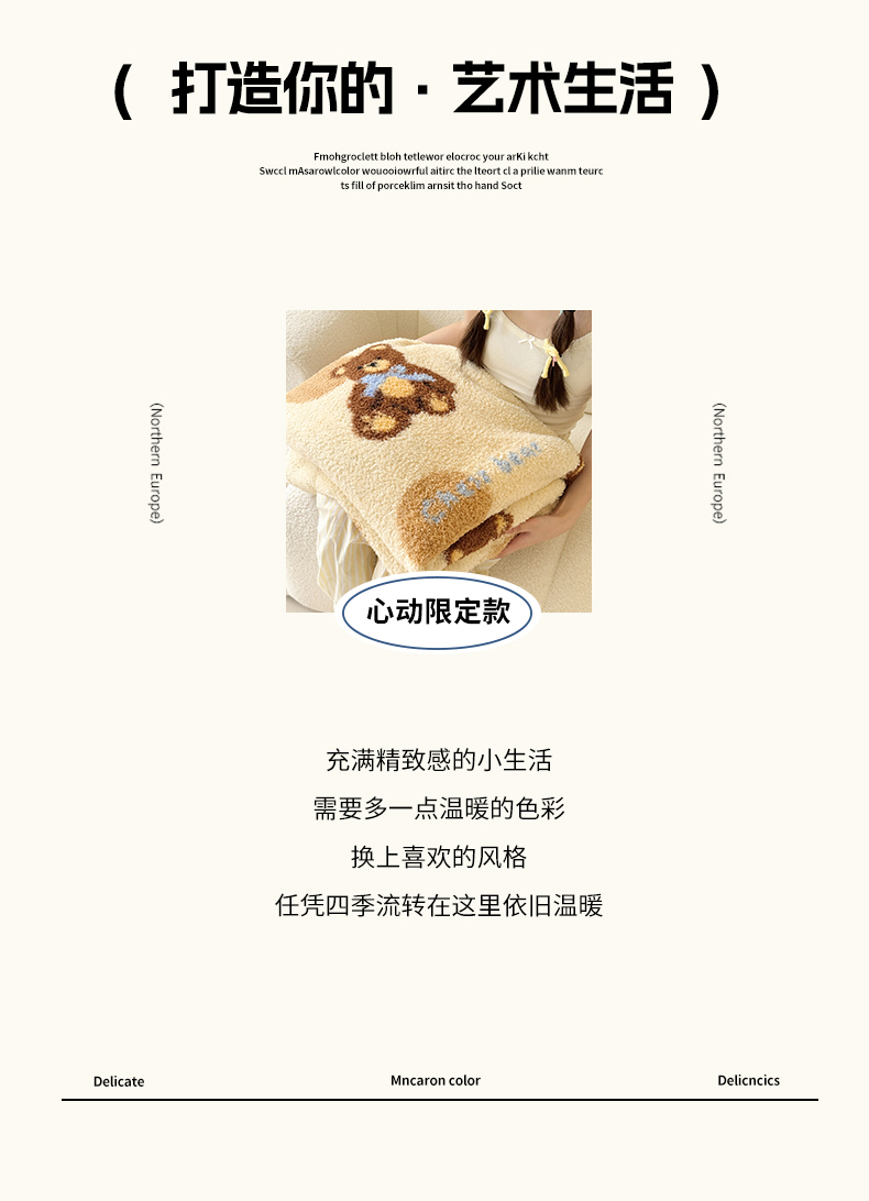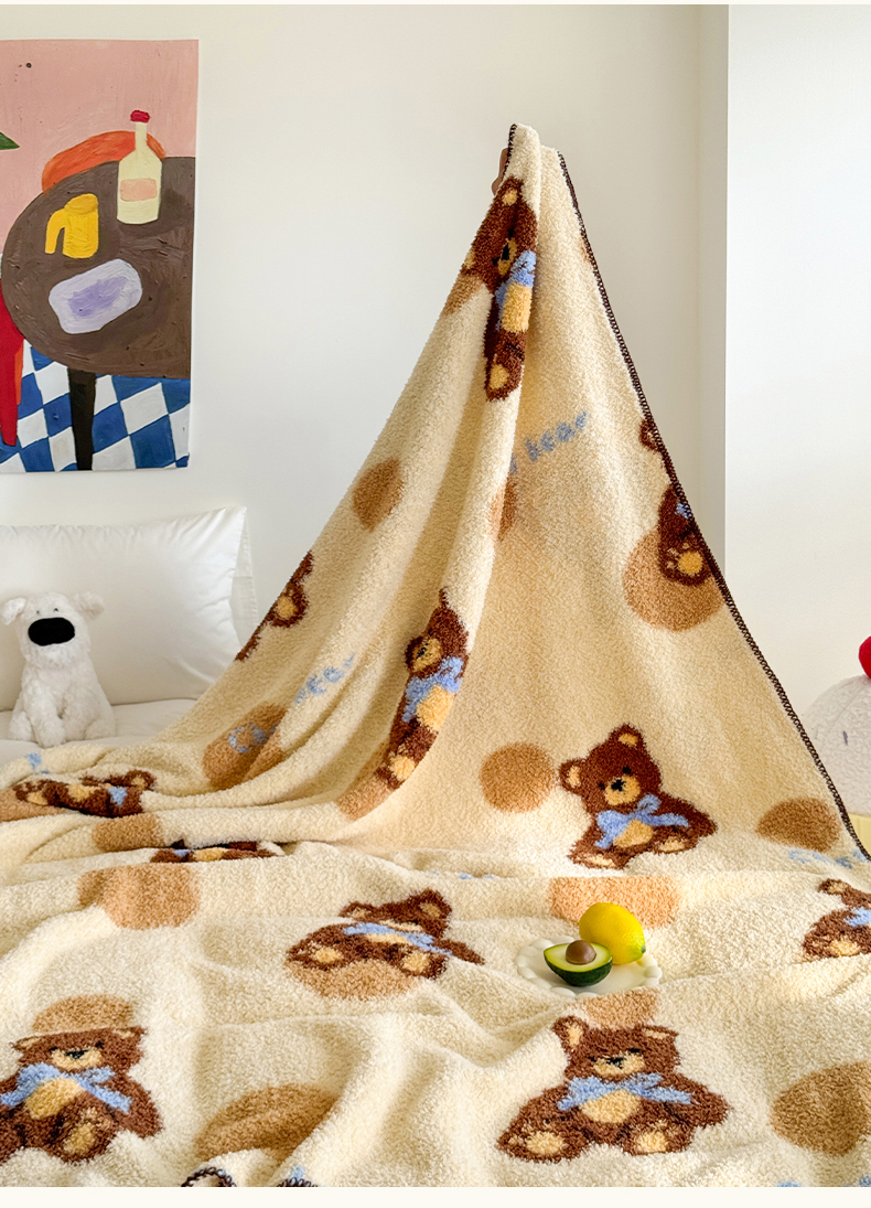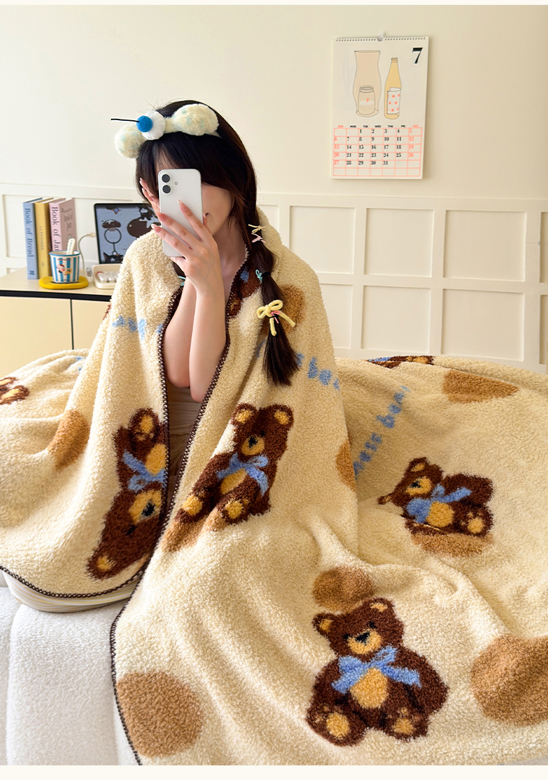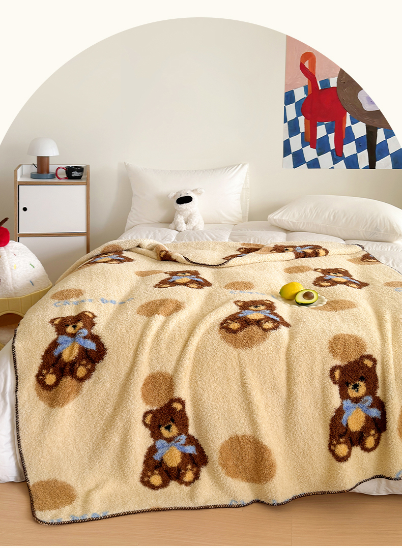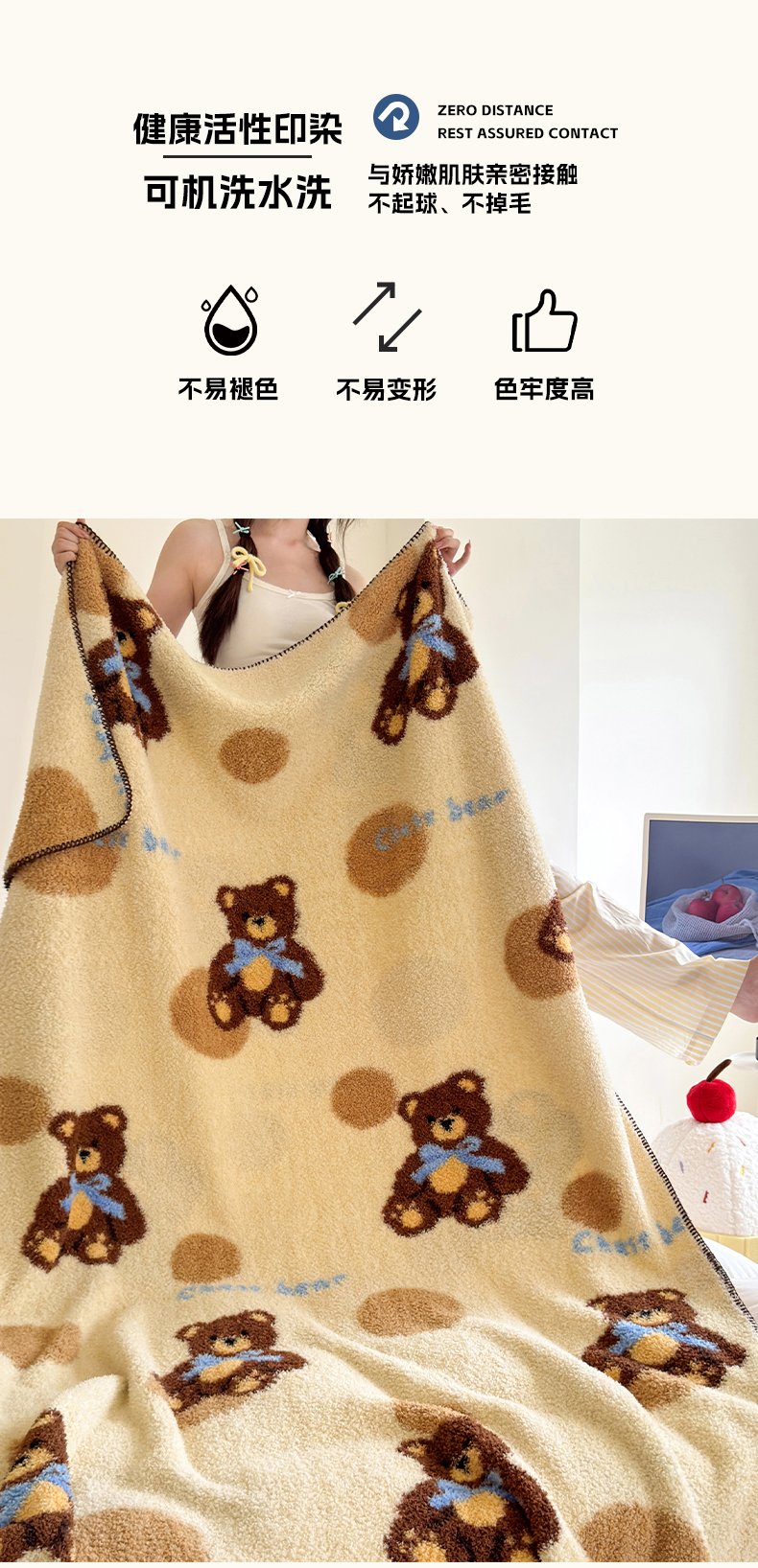 舒隅家纺 2025新款A类卡通休闲半边绒三角针毛毯 小熊软糖