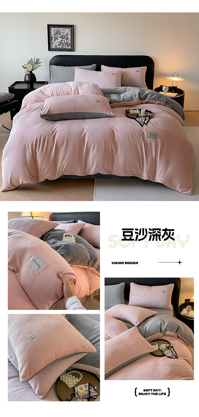 (总)ab家纺 2025新款保暖舒适纯色牛奶绒四件套,宾利蓝深灰,豆沙深灰,粉卡其,橄榄绿柠檬黄,米咖,米月白橄榄绿,米月白深灰,米月白香芋紫,深灰浅灰,天空蓝柠檬黄,香芋柴深灰