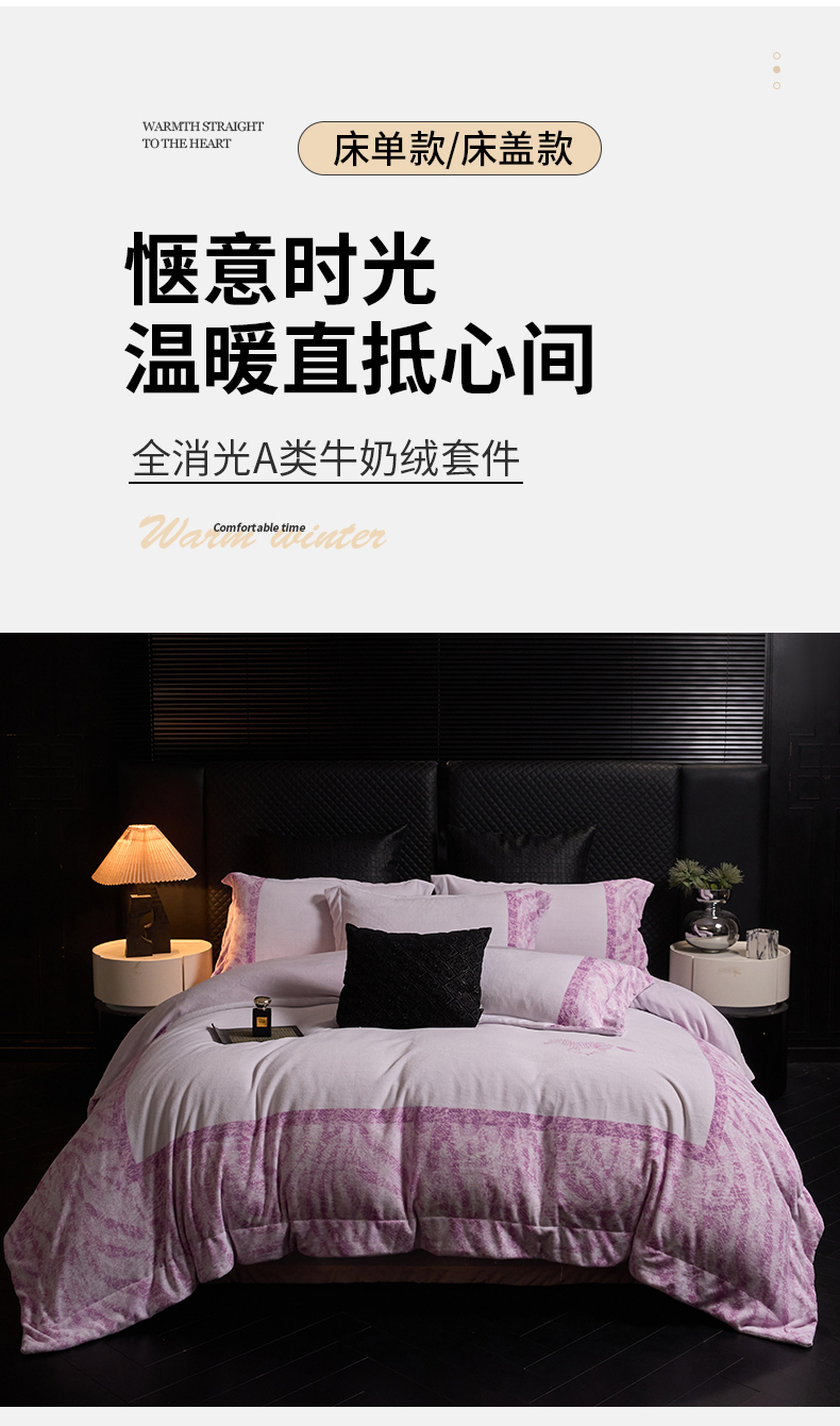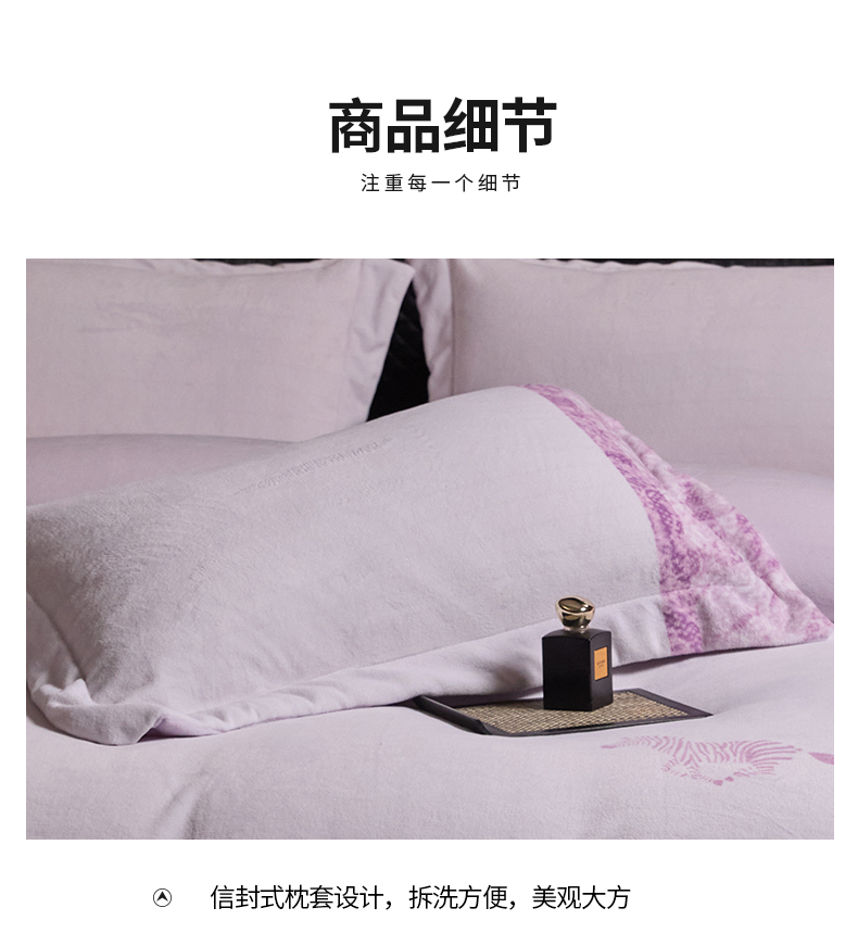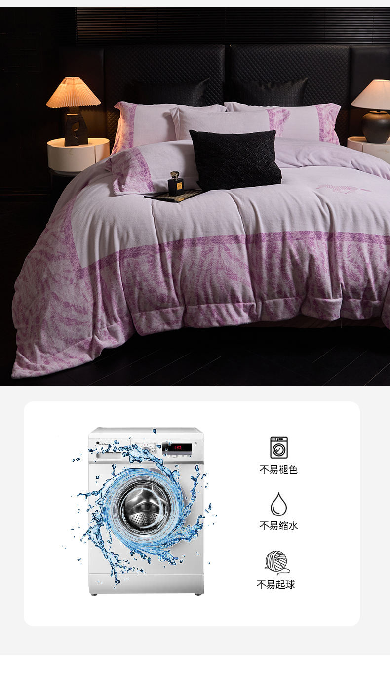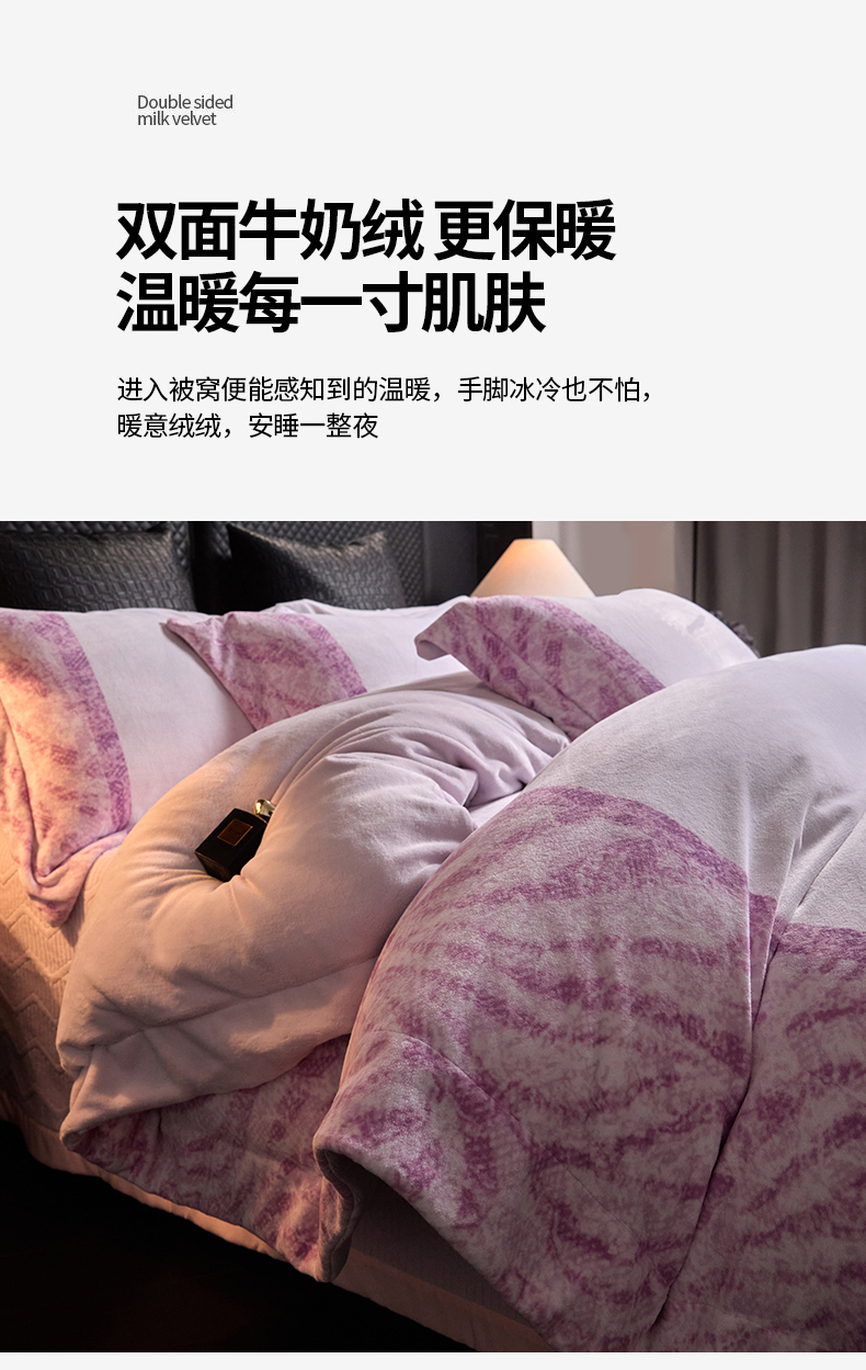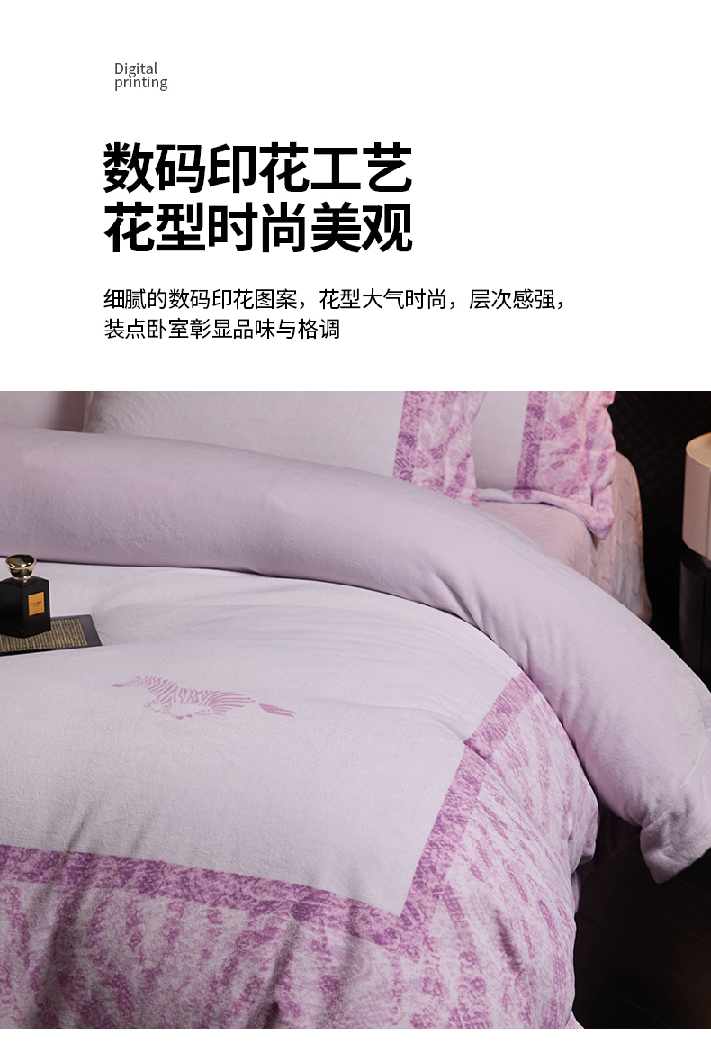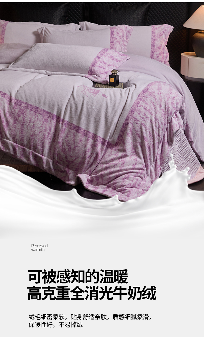 商品名称:新方向 2025新款240克全消光A类数码印花牛奶绒四件套床盖款-卡仑 卡仑-魅紫