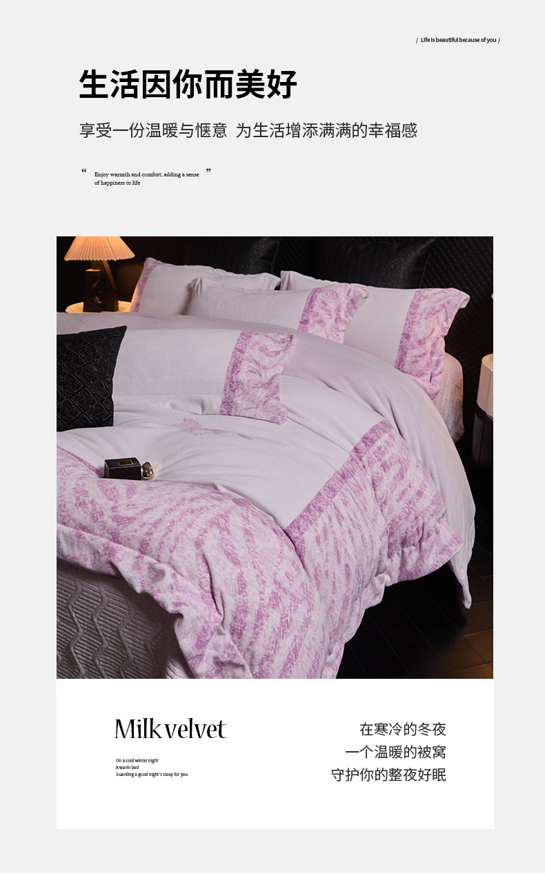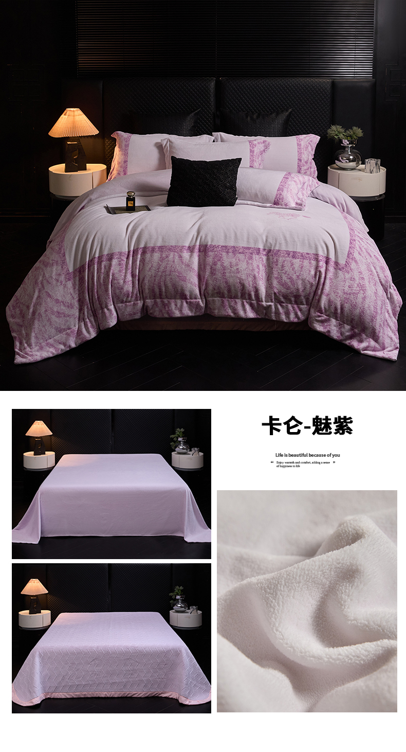 新方向 2025新款240克全消光A类数码印花牛奶绒四件套床盖款-卡仑 卡仑-魅紫
