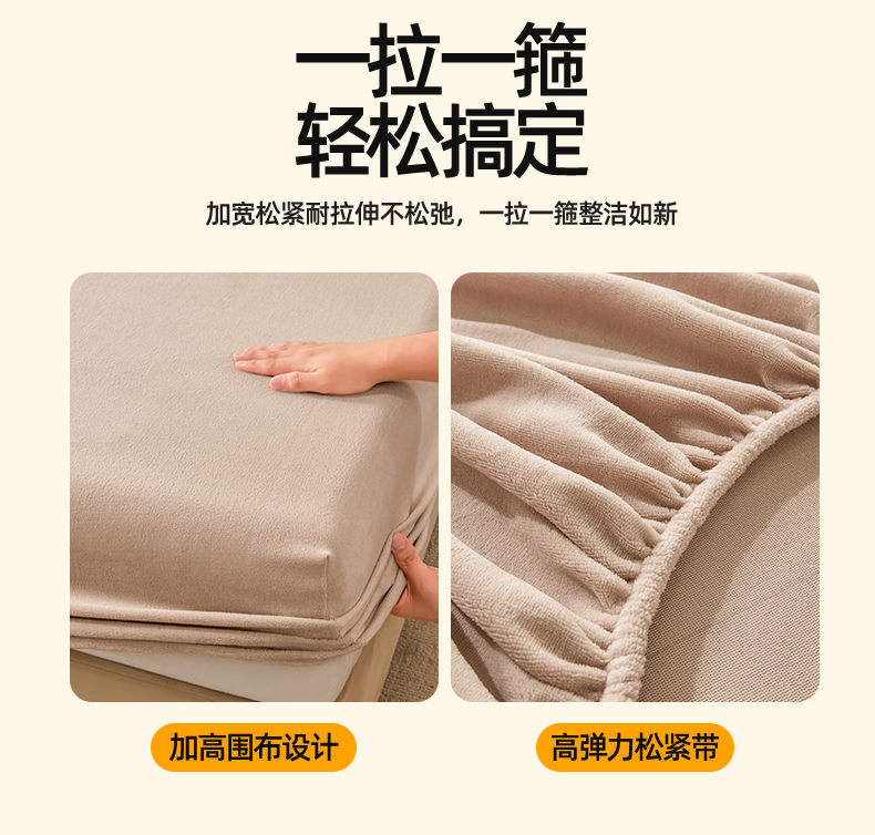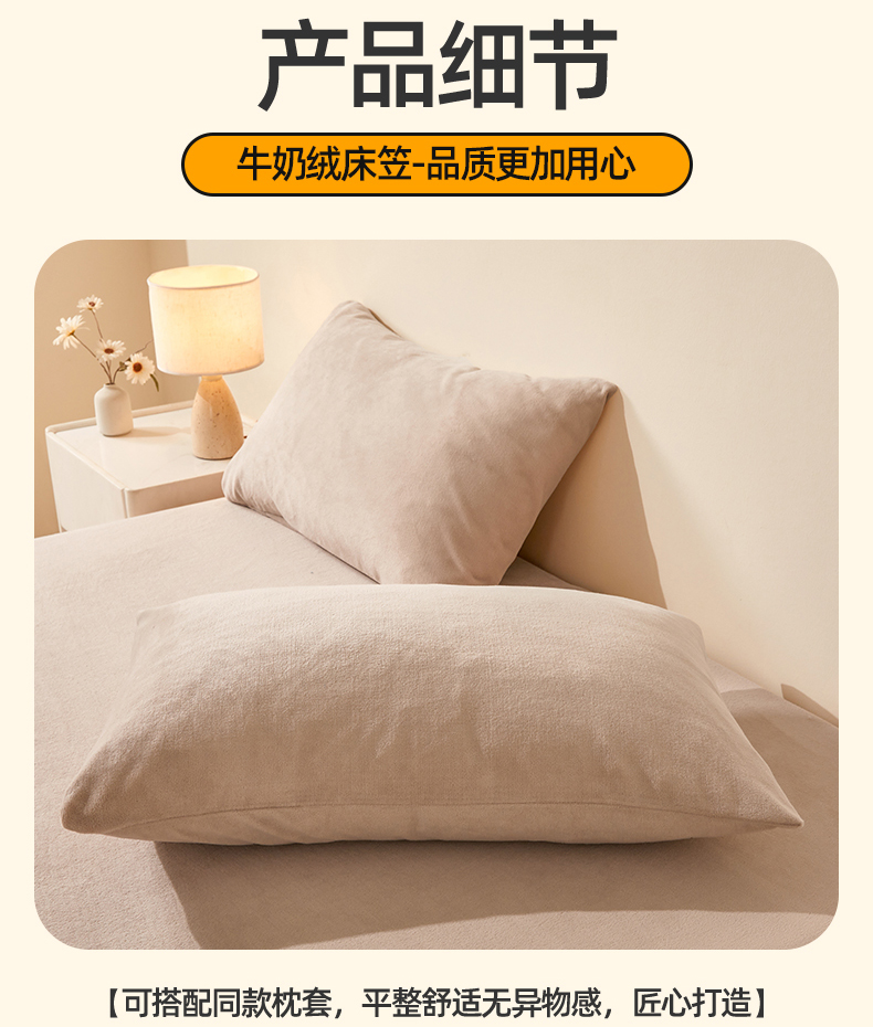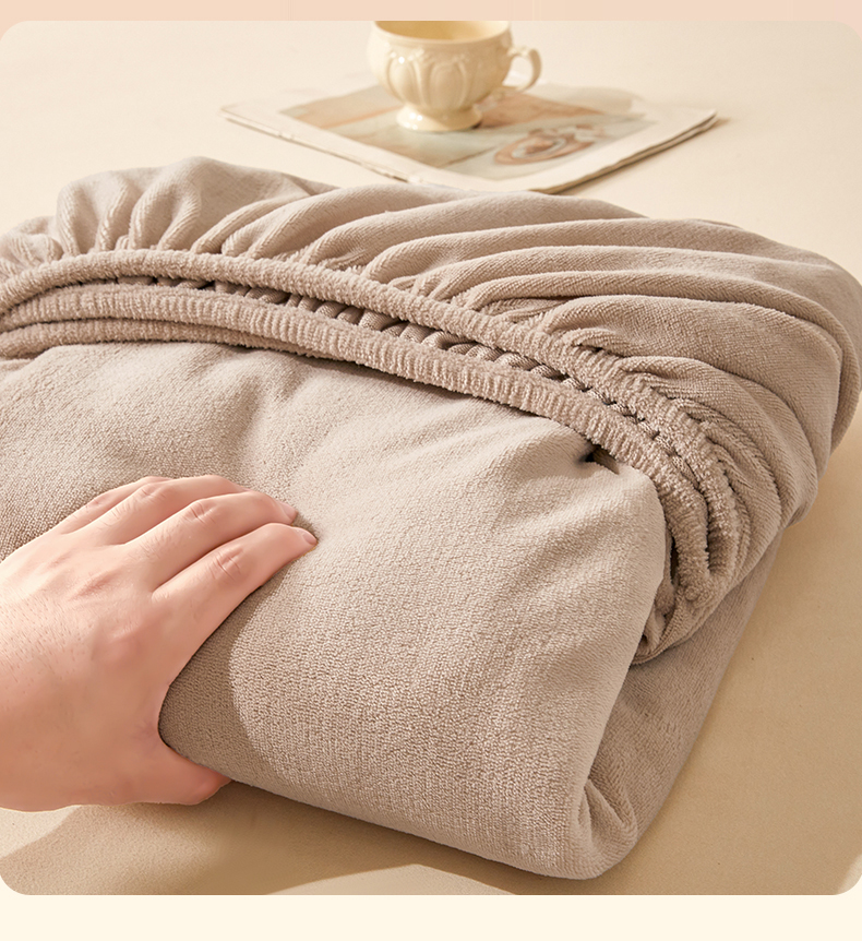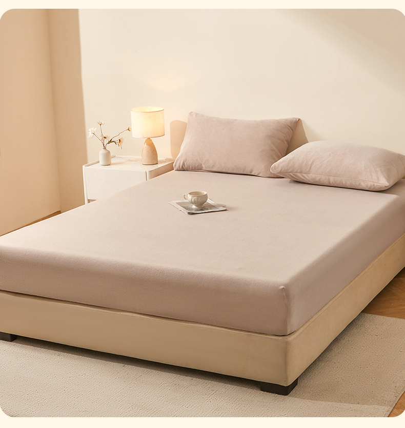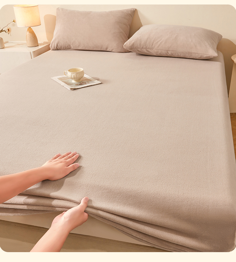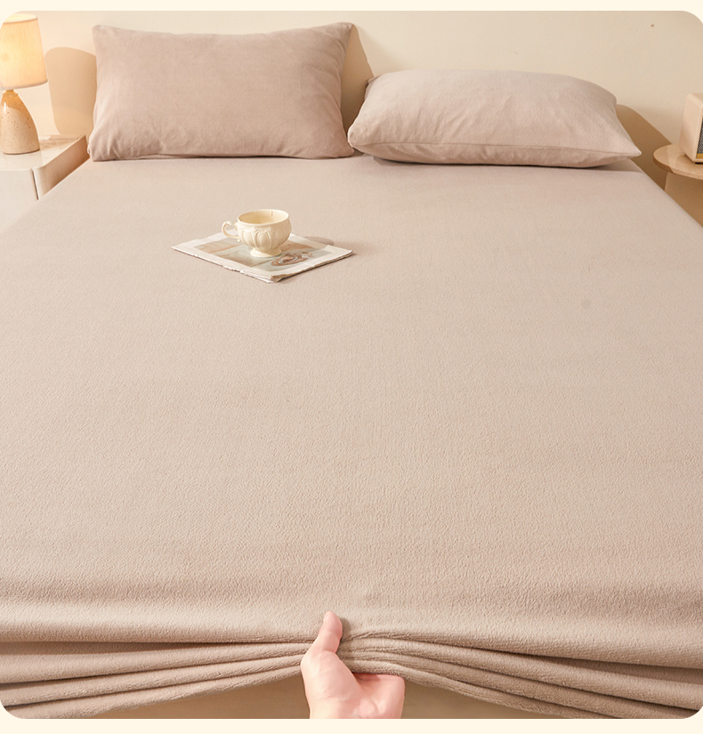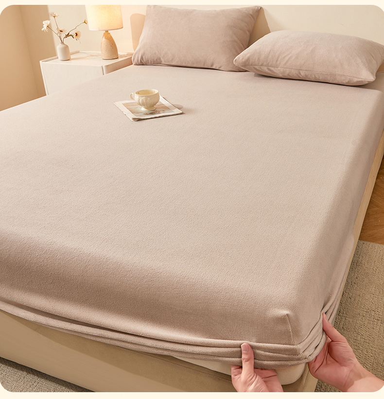 商品名称:优眠坊 2025新款单层高克重牛奶绒纯色床笠 岩石棕